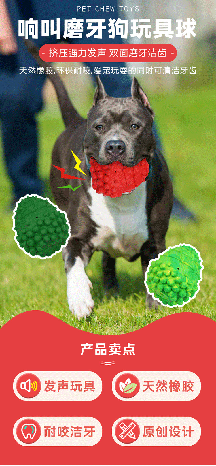 아마존의 인기 있는 솔방울 소리 장난감 공, 물림 방지 및 어금니 개 용품, 고무 애완 동물 장난감 공, 국경 간스토어 가기