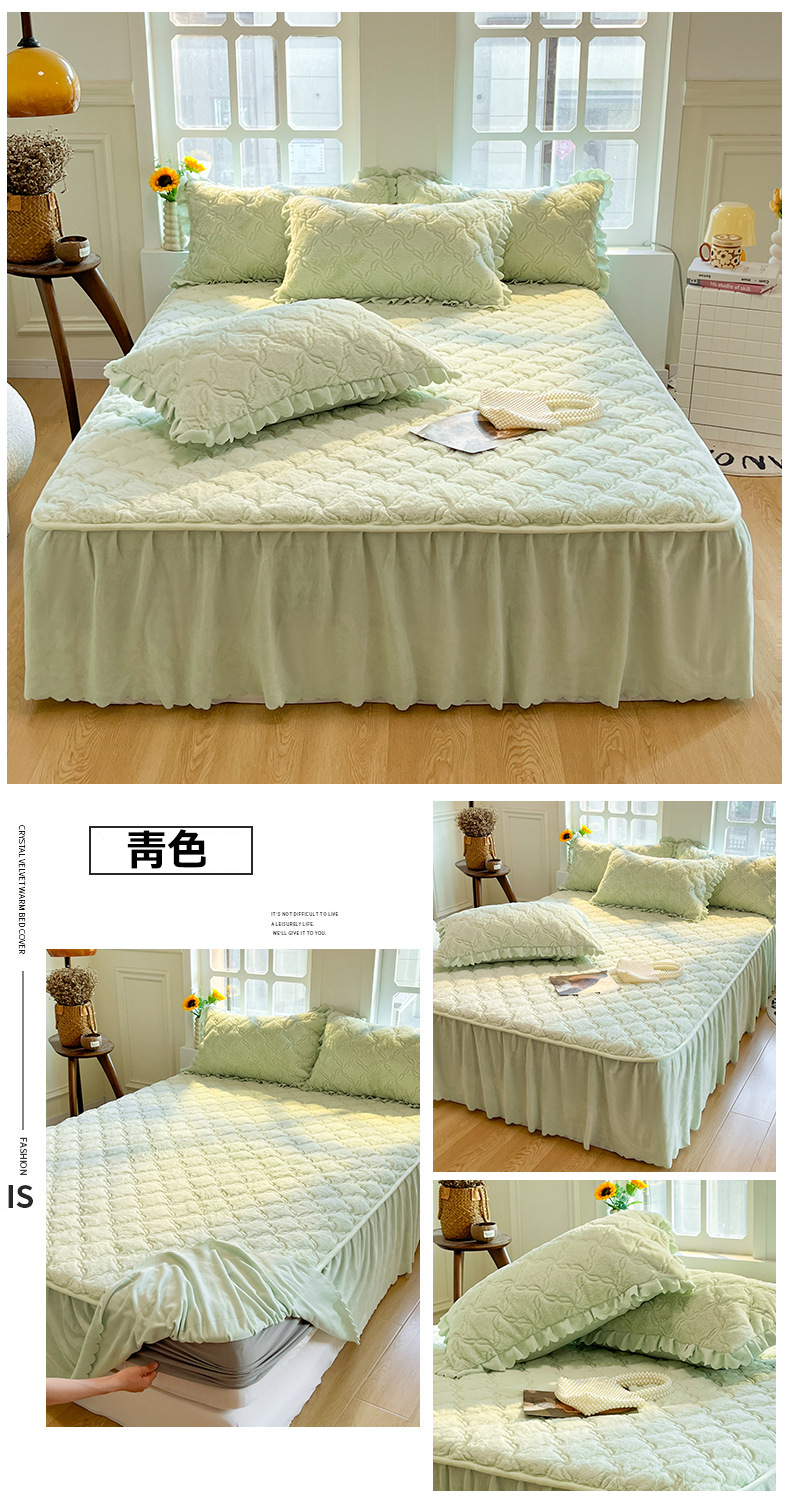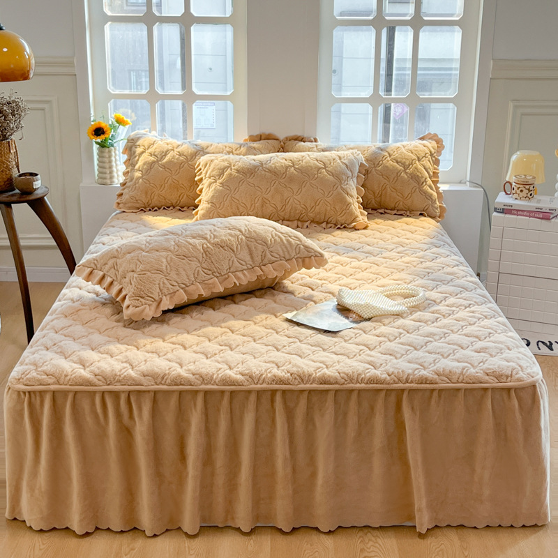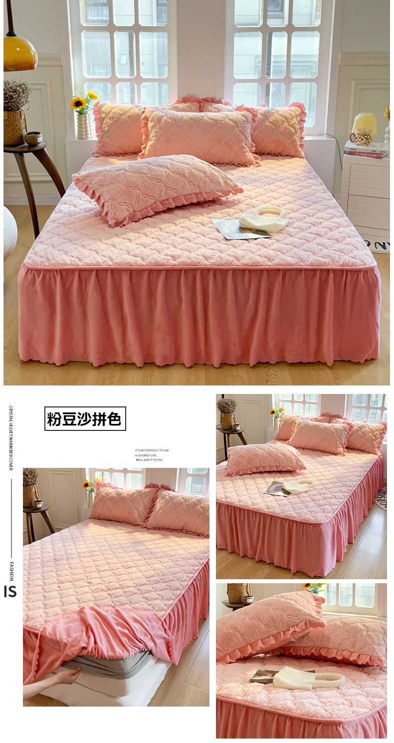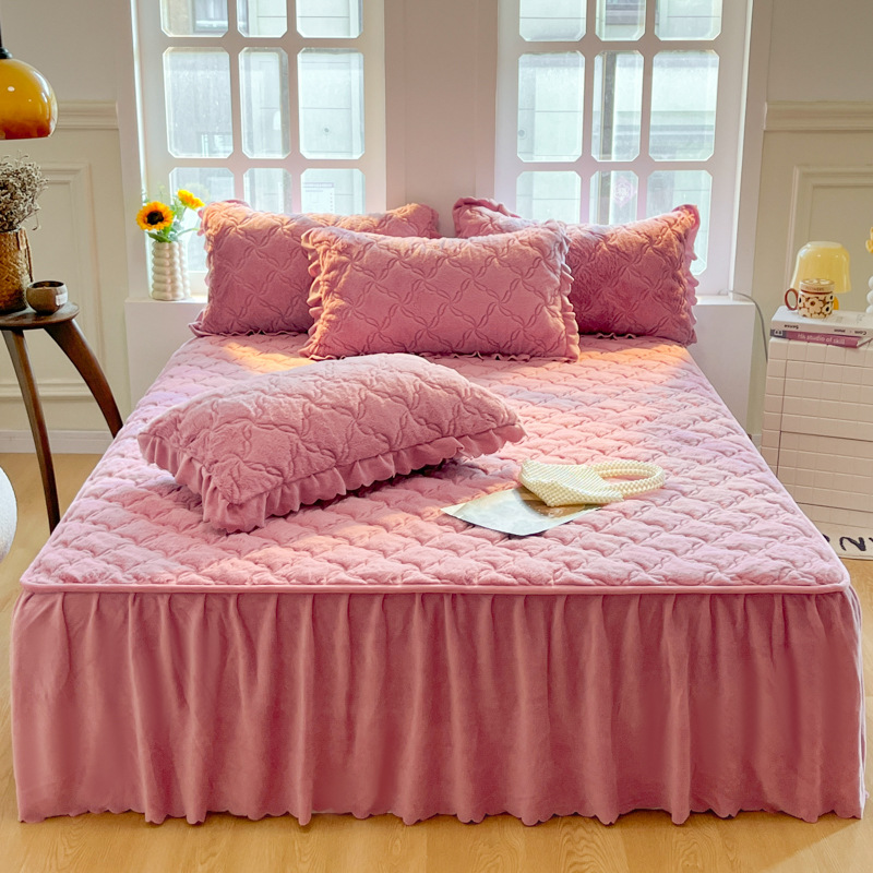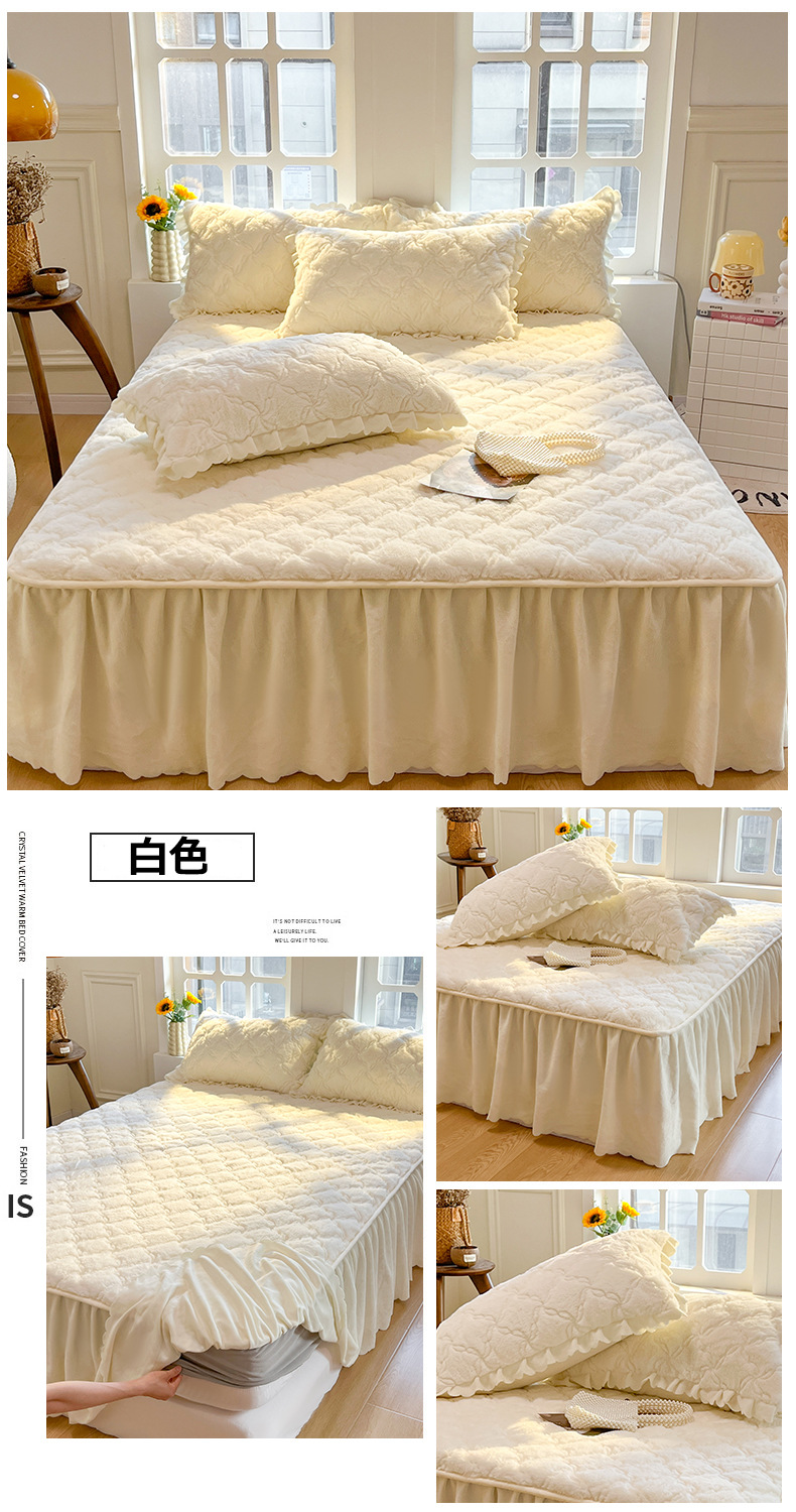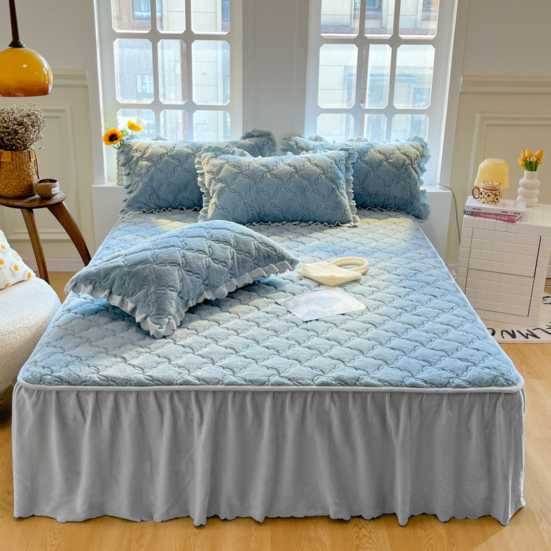 단색 침대 치마 단일 조각 간단한 세척 코튼 레이스 침대 커버 스커트 침대 모자 토끼 벨벳 패딩 면화 침대 스커트 기모 침대 모자