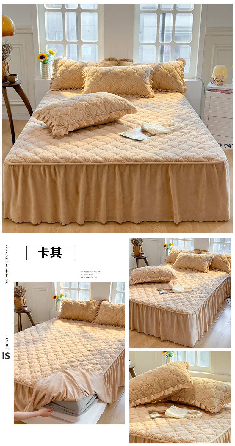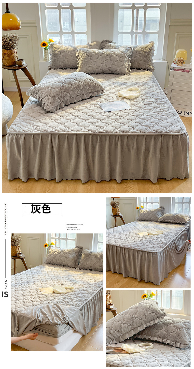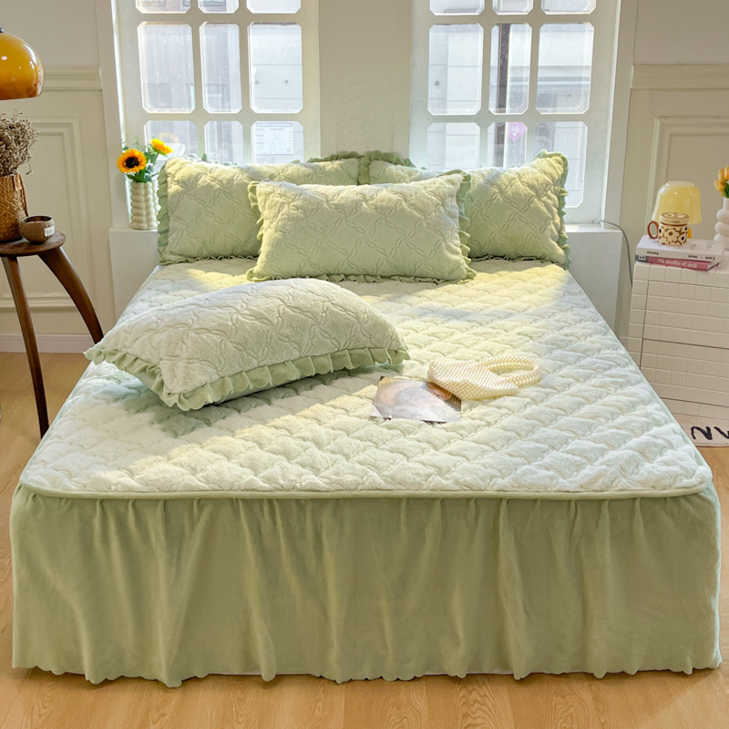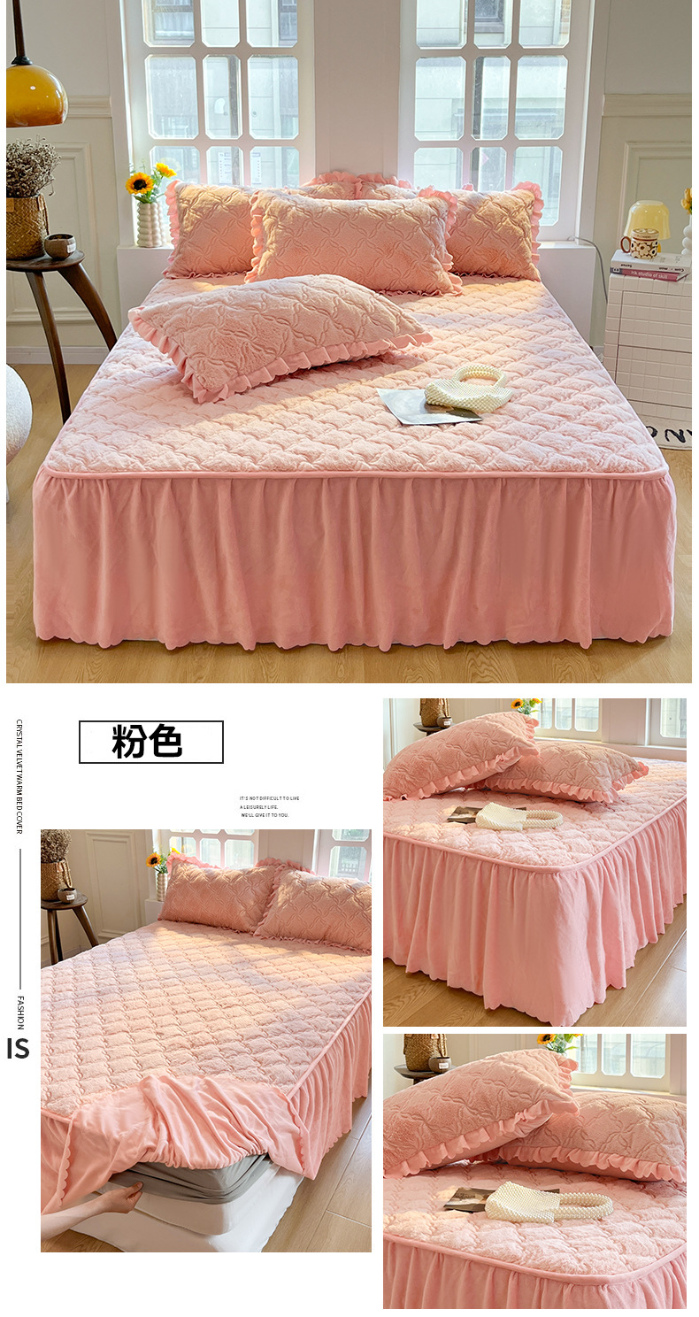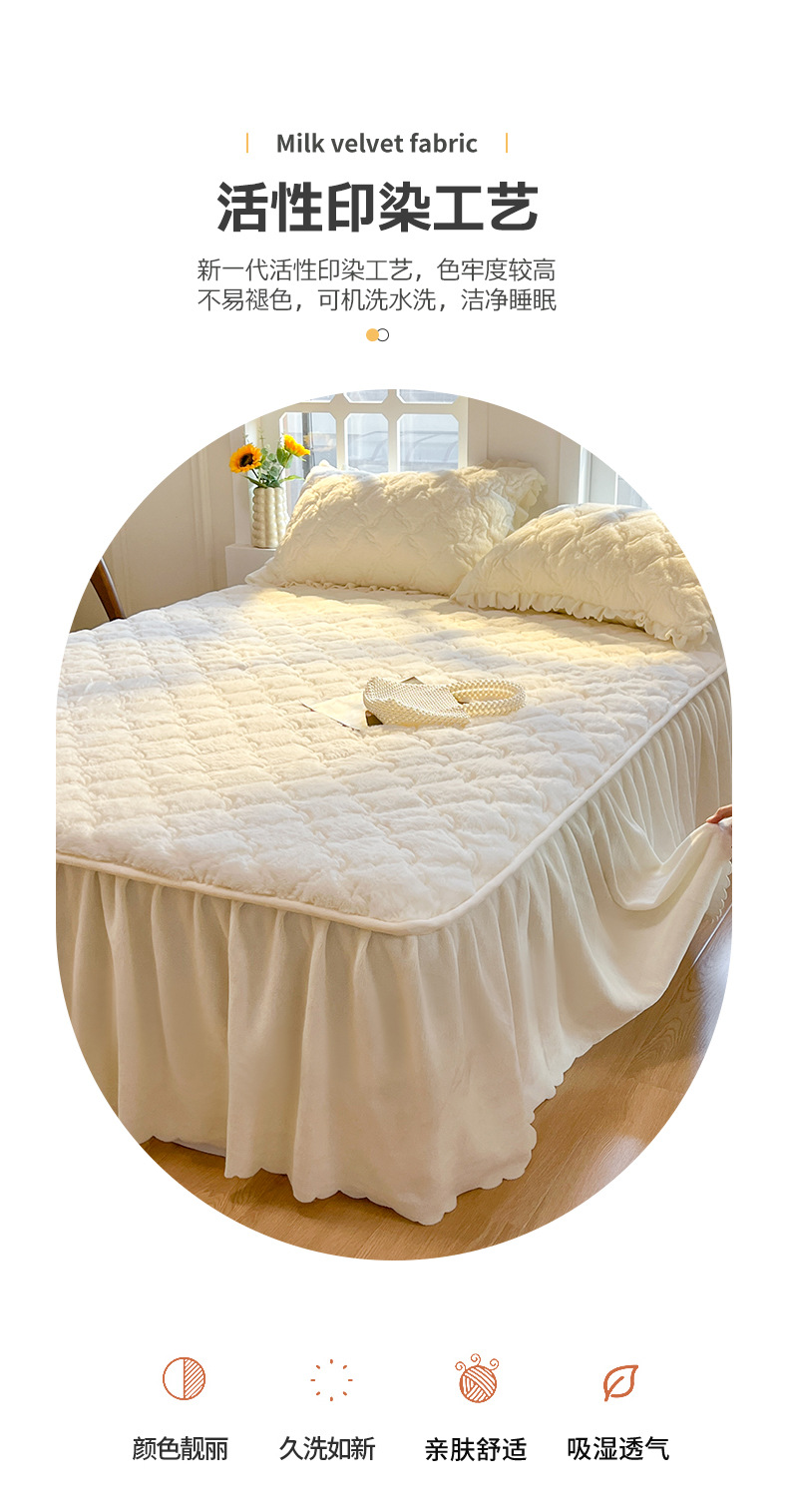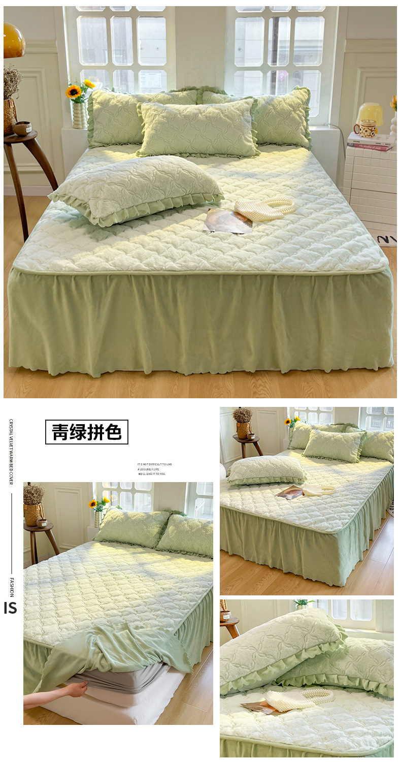 단색 침대 치마 단일 조각 간단한 세척 코튼 레이스 침대 커버 스커트 침대 모자 토끼 벨벳 패딩 면화 침대 스커트 기모 침대 모자