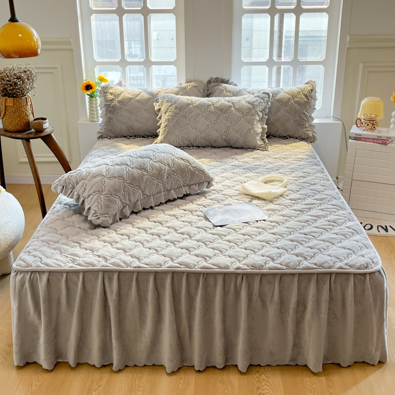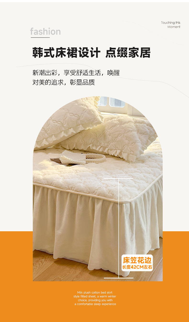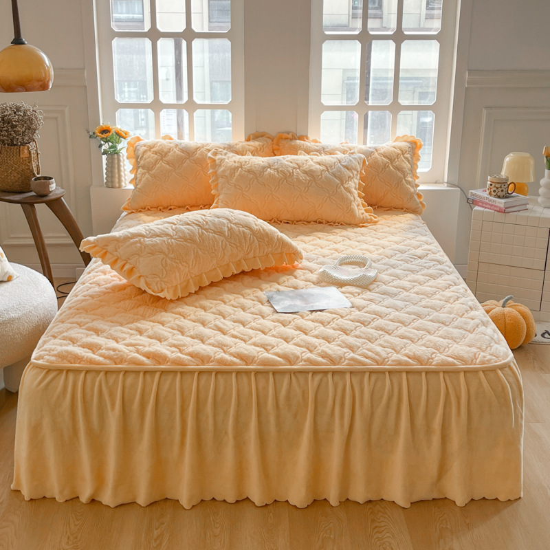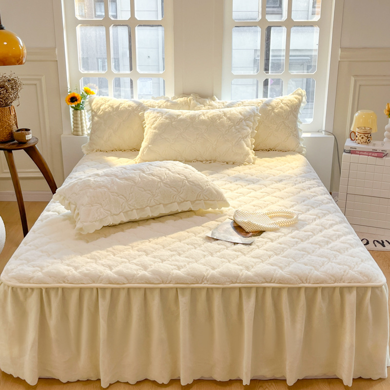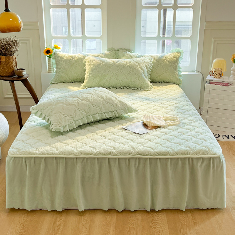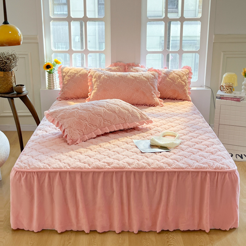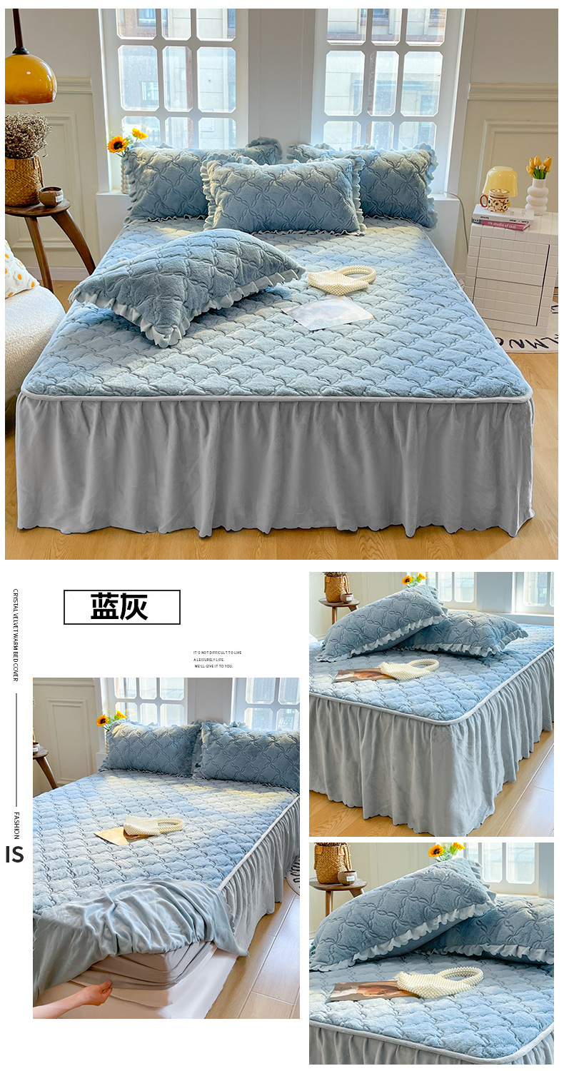 단색 침대 치마 단일 조각 간단한 세척 코튼 레이스 침대 커버 스커트 침대 모자 토끼 벨벳 패딩 면화 침대 스커트 기모 침대 모자