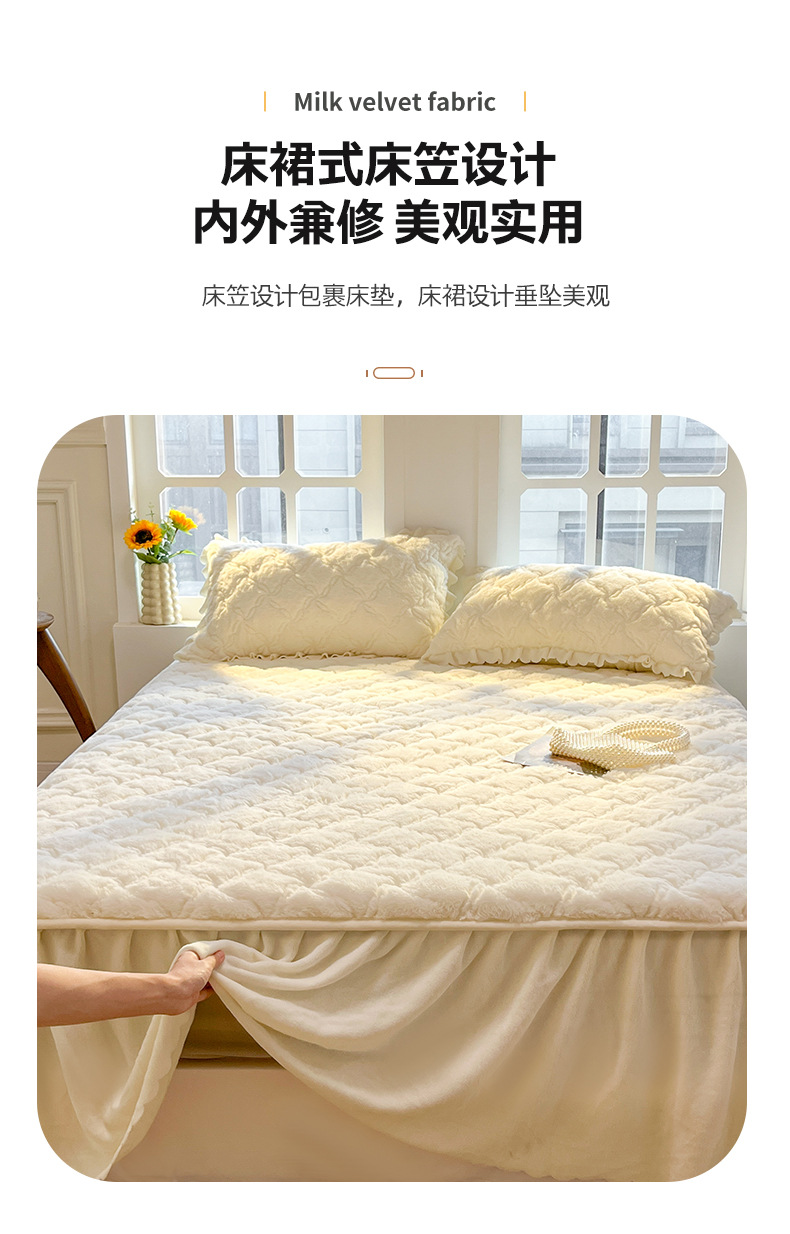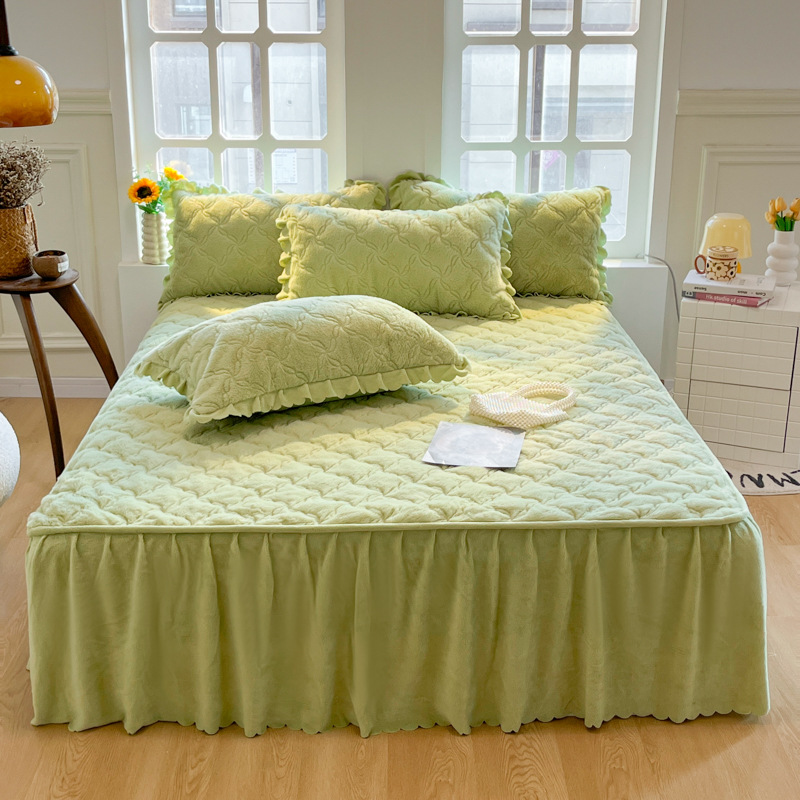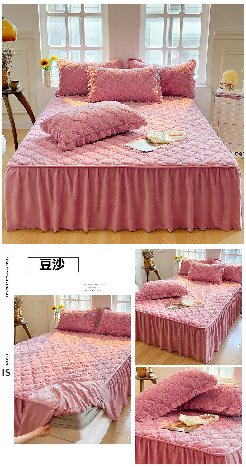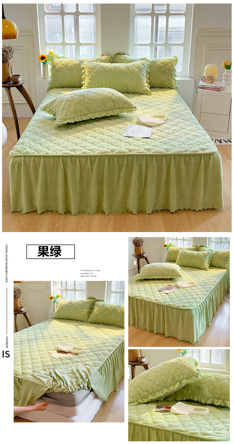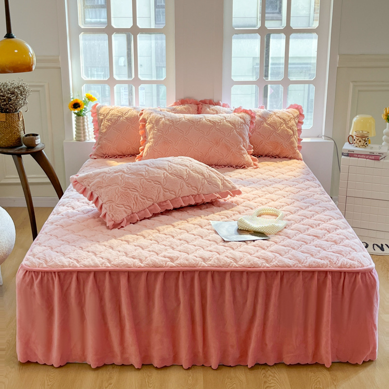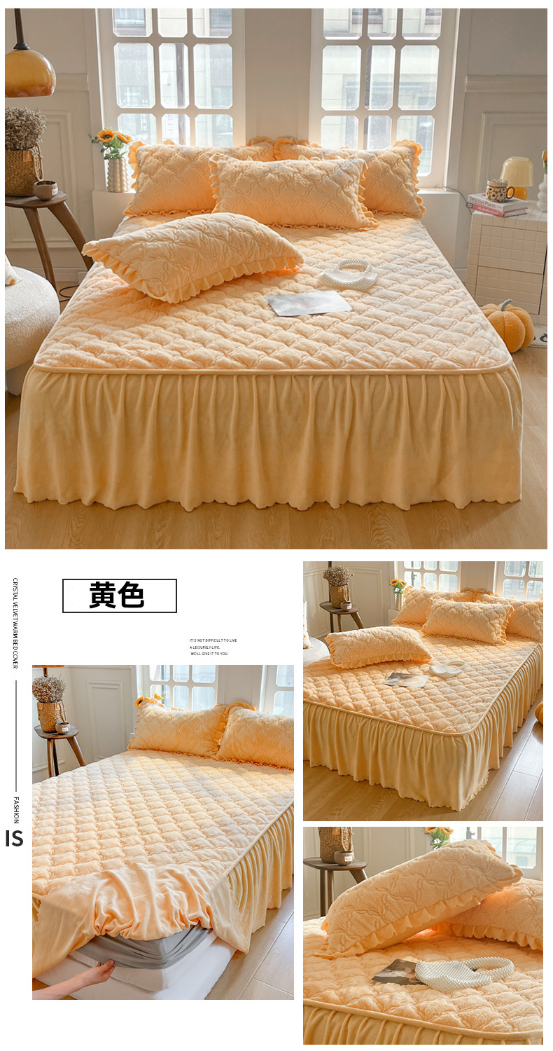 단색 침대 치마 단일 조각 간단한 세척 코튼 레이스 침대 커버 스커트 침대 모자 토끼 벨벳 패딩 면화 침대 스커트 기모 침대 모자