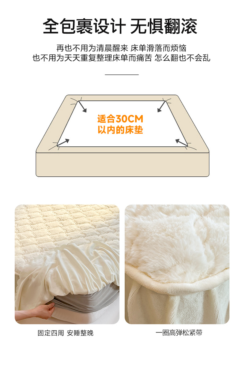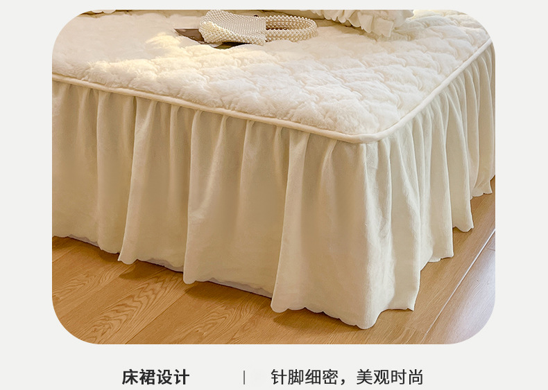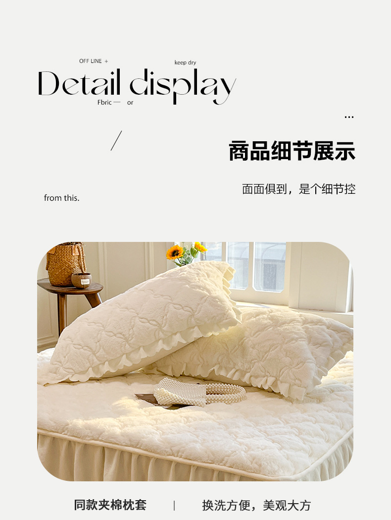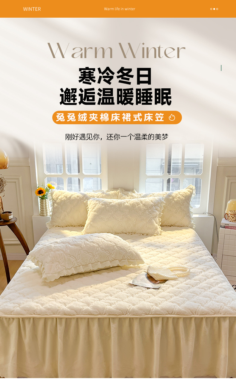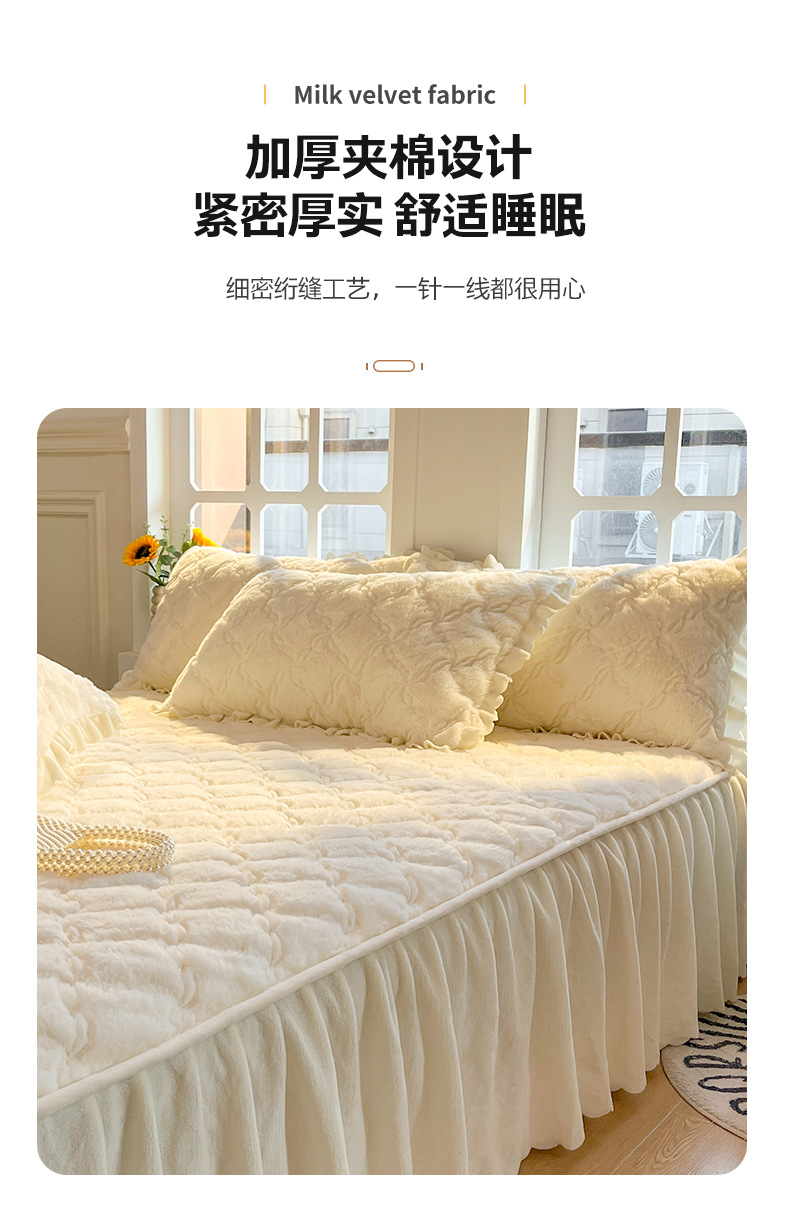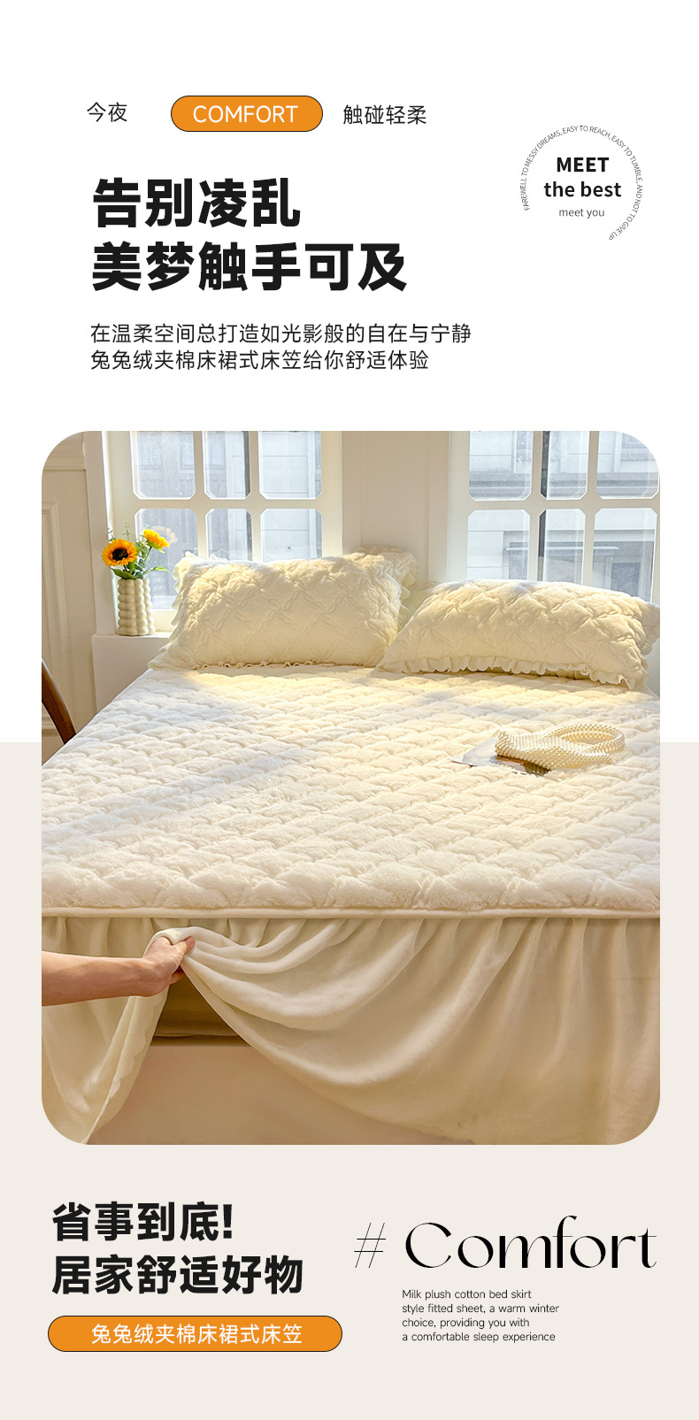 단색 침대 치마 단일 조각 간단한 세척 코튼 레이스 침대 커버 스커트 침대 모자 토끼 벨벳 패딩 면화 침대 스커트 기모 침대 모자