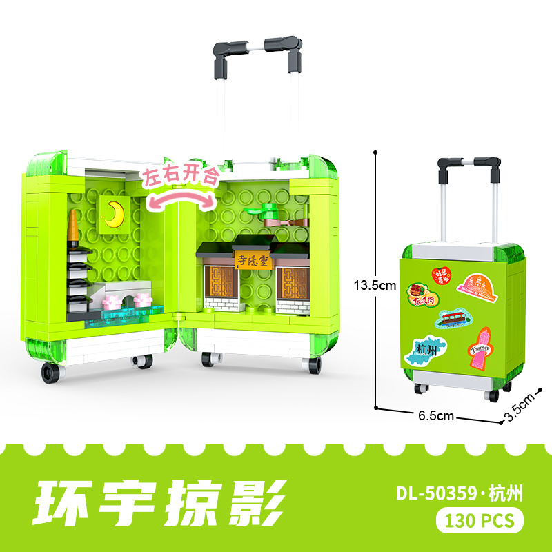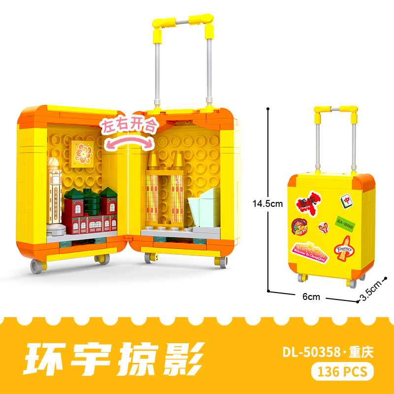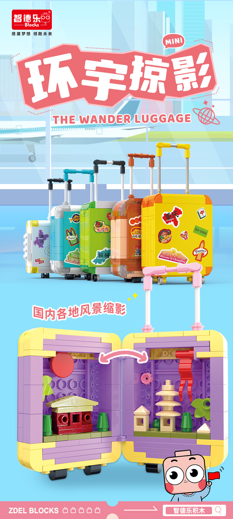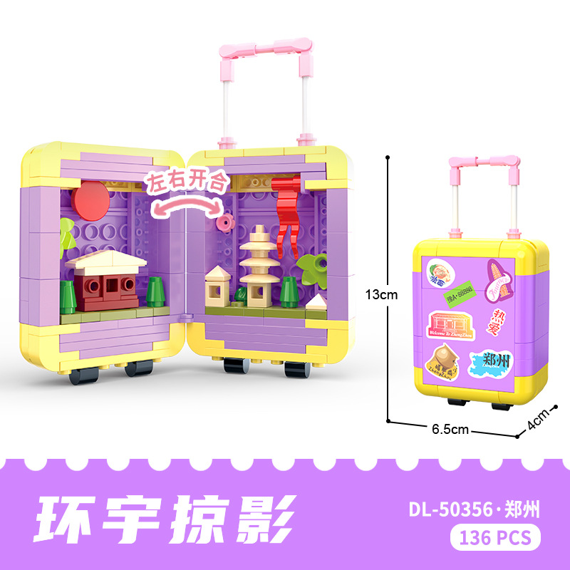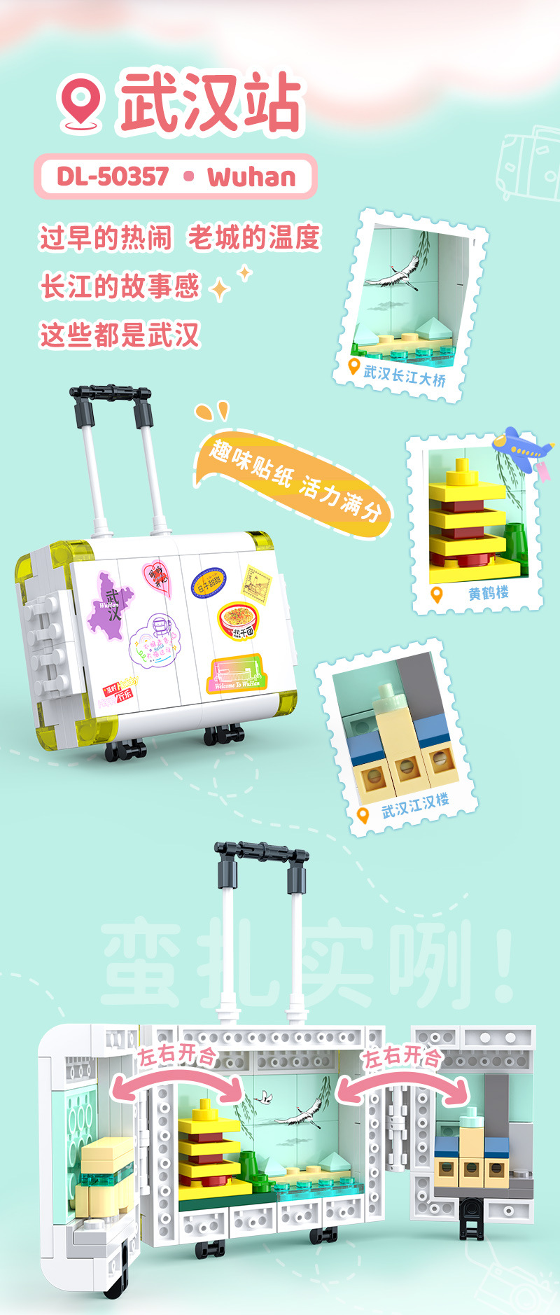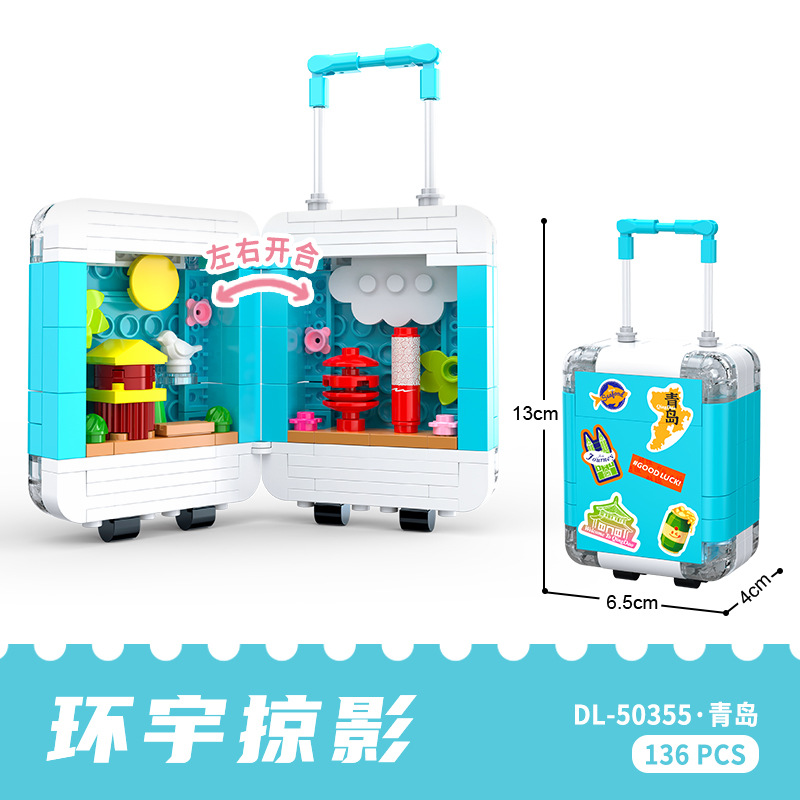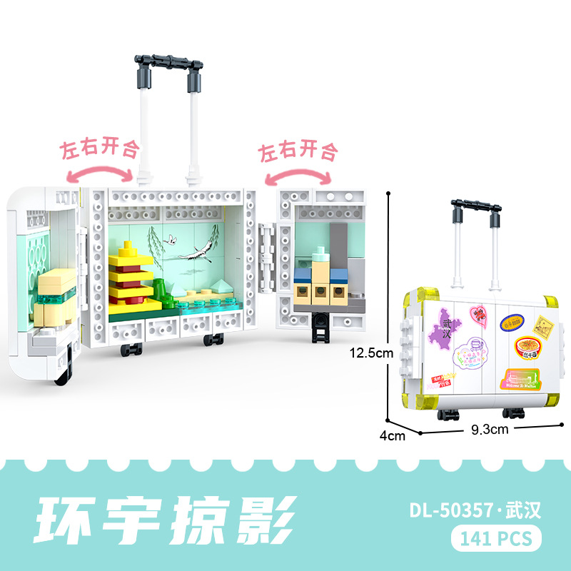 미니 수하물 어린이 인터넷 유명 장난감 퍼즐 빌딩 블록 Wenchuang Suitcase City Building Skyline Gift스토어 가기