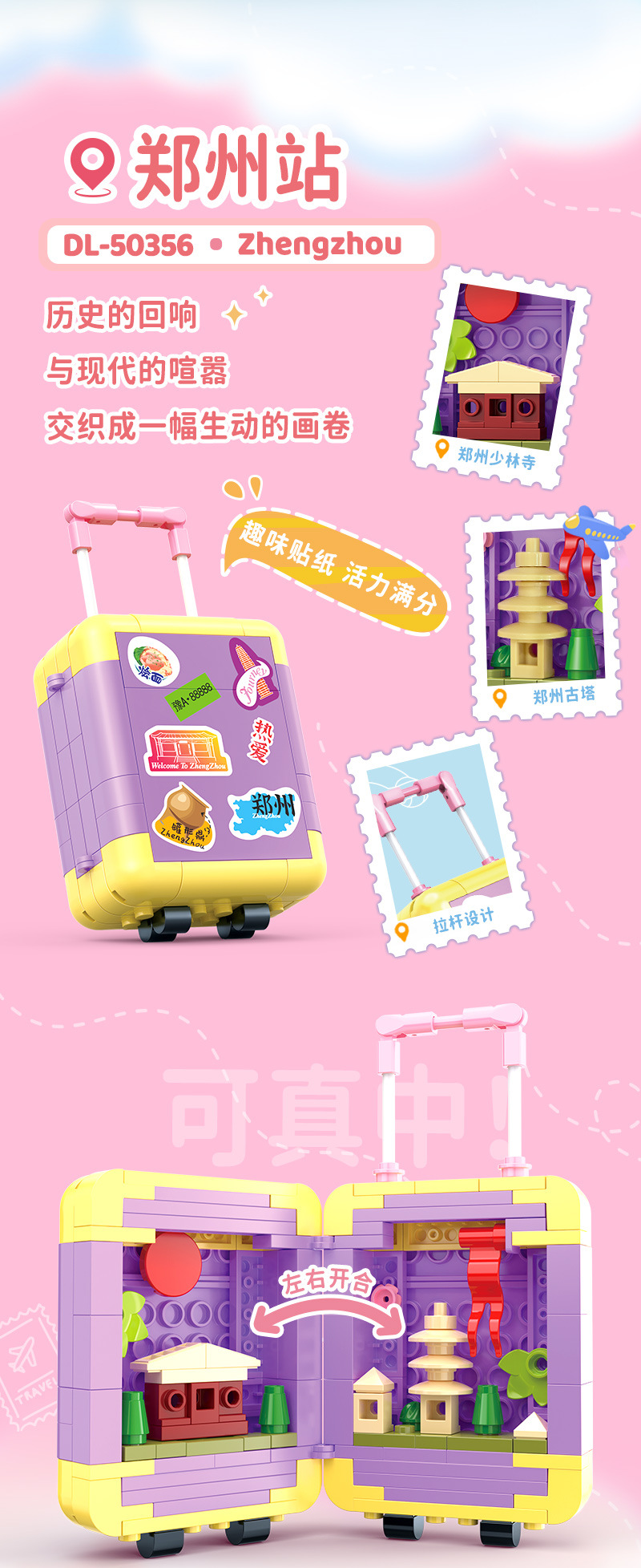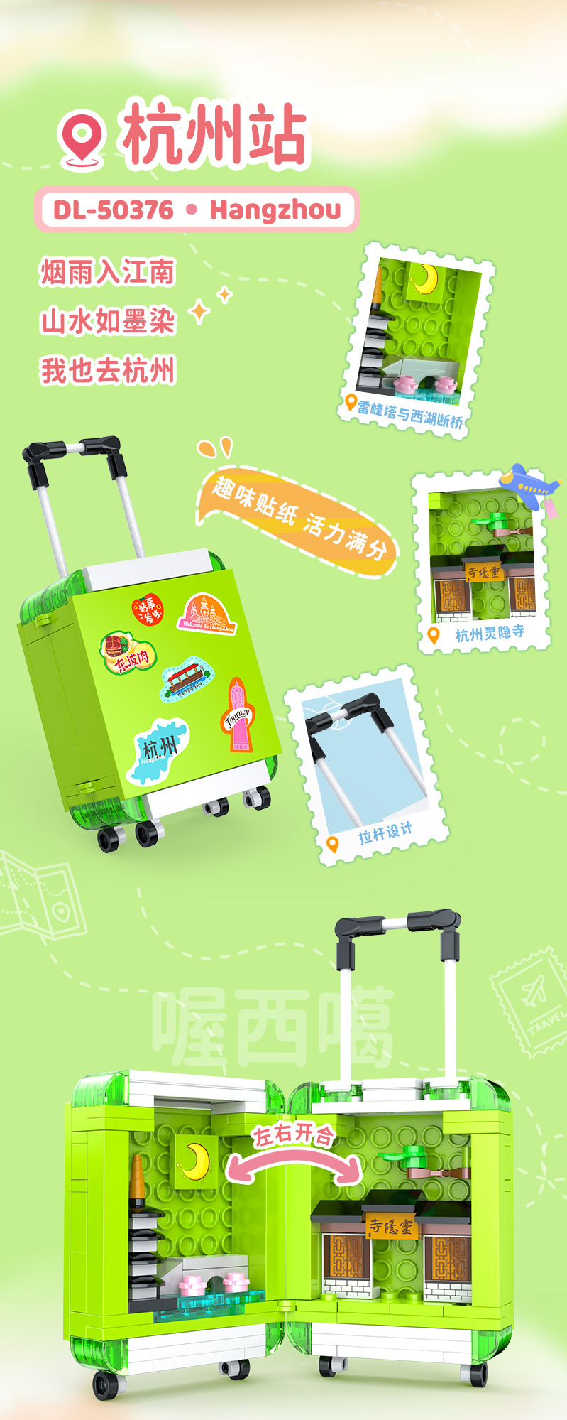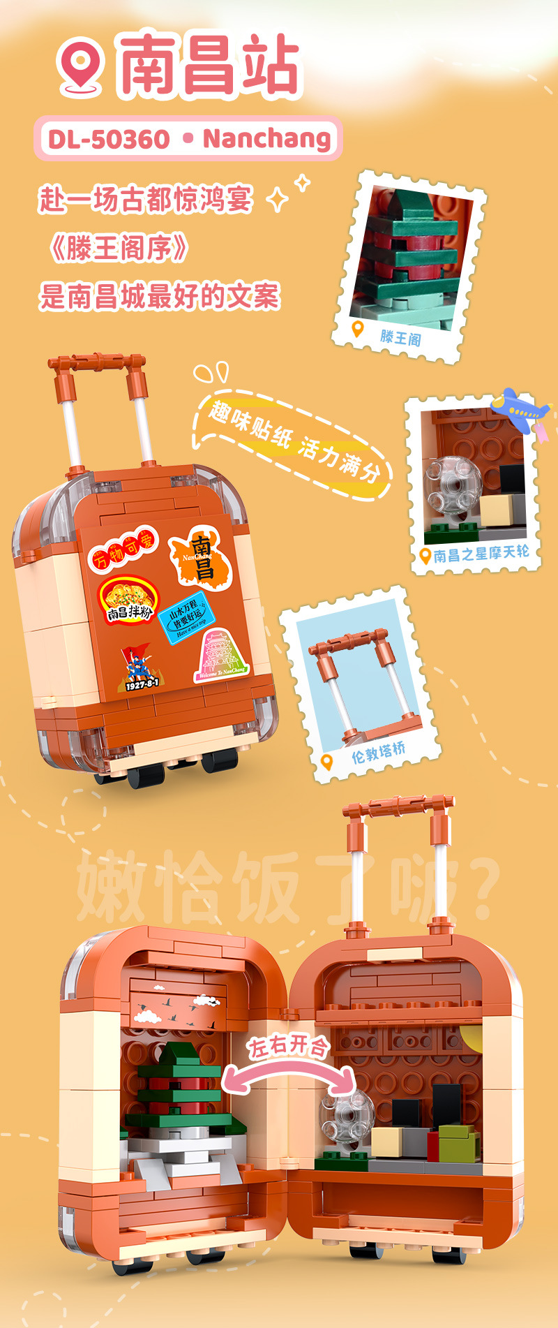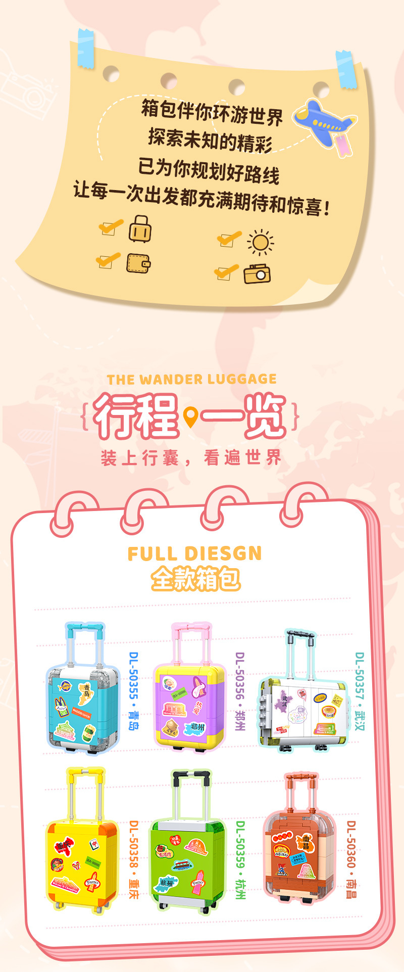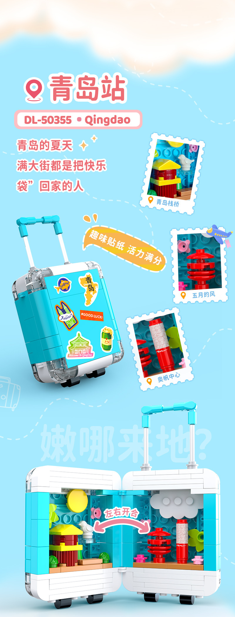 미니 수하물 어린이 인터넷 유명 장난감 퍼즐 빌딩 블록 Wenchuang Suitcase City Building Skyline Gift스토어 가기