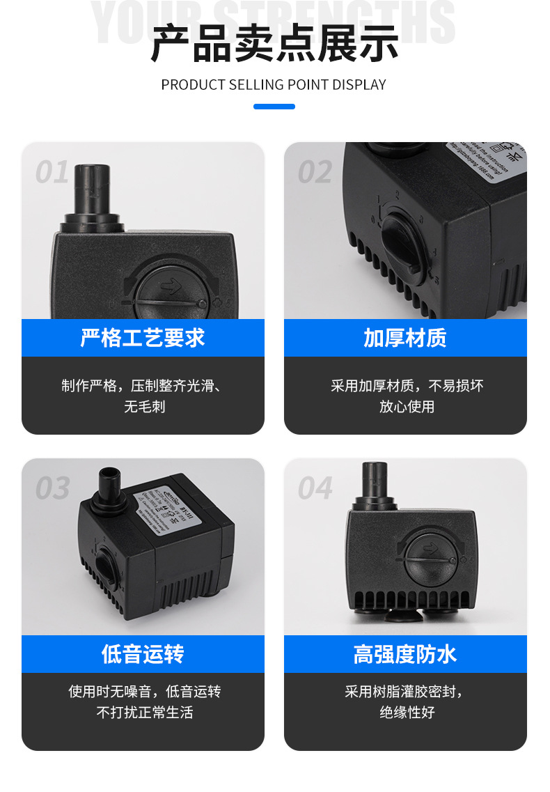 创品鱼缸潜水泵底吸泵小功率黑色喷泉水泵冷风机抽水泵跨境批发