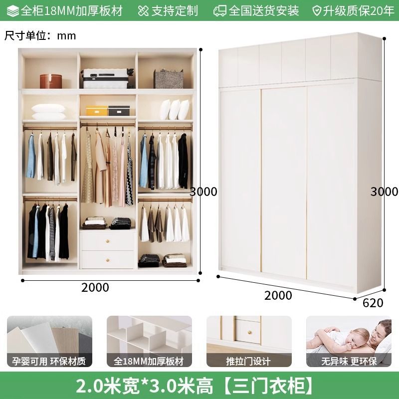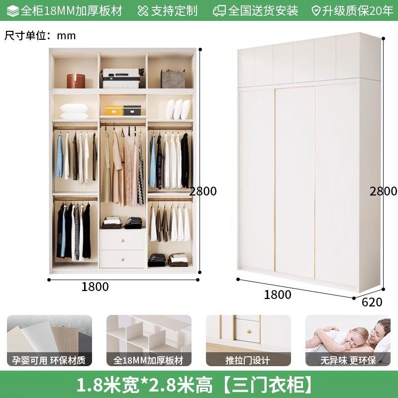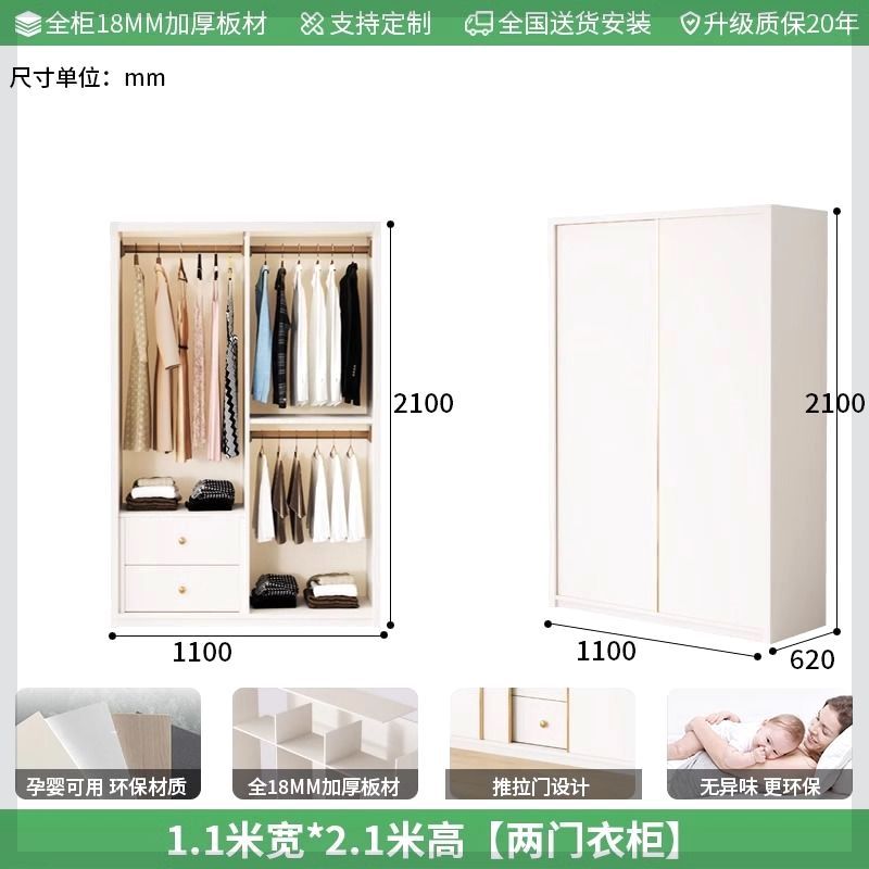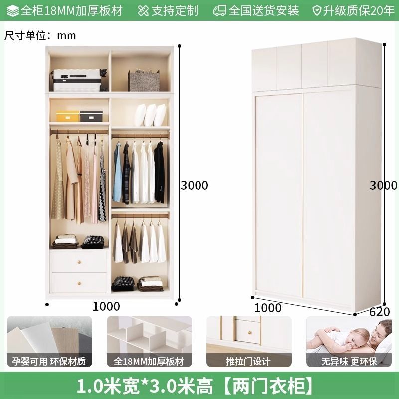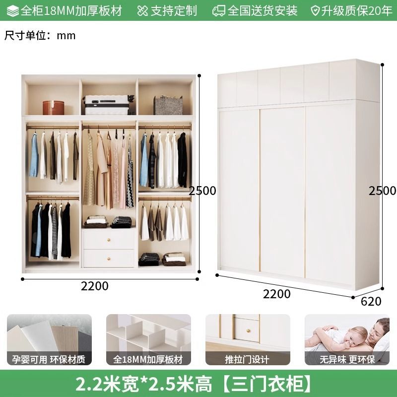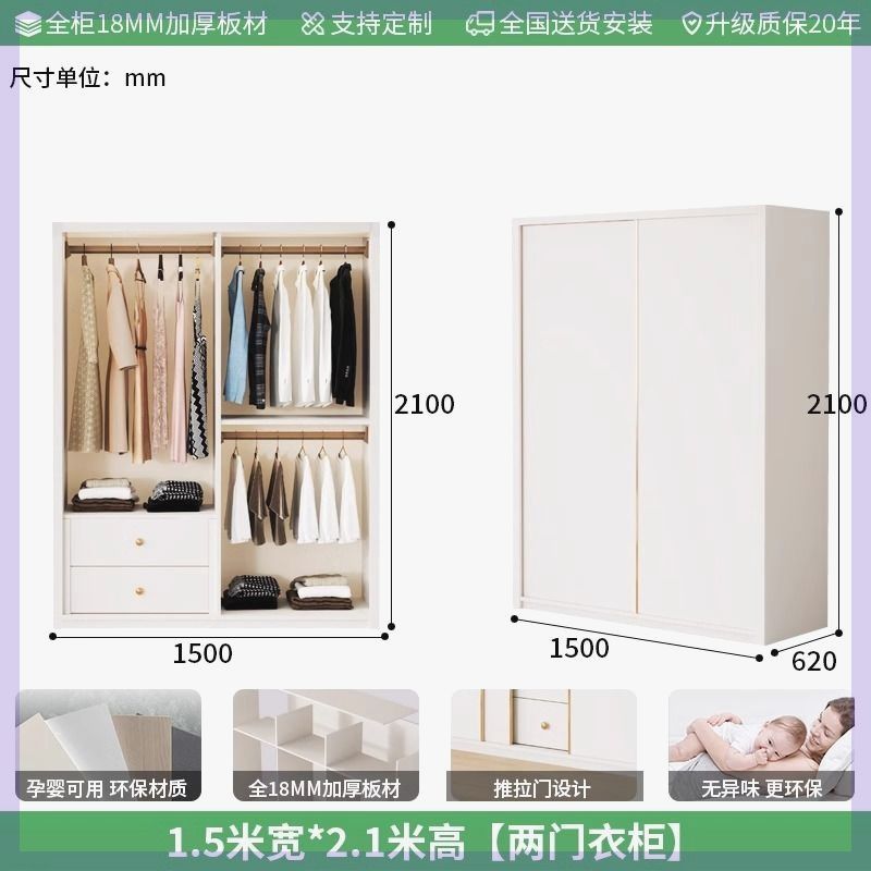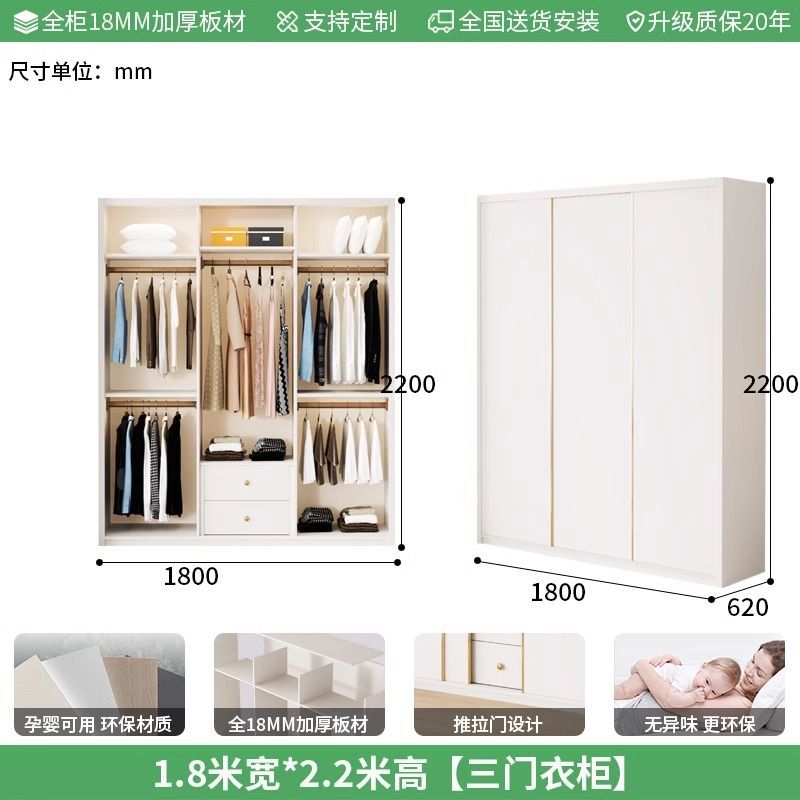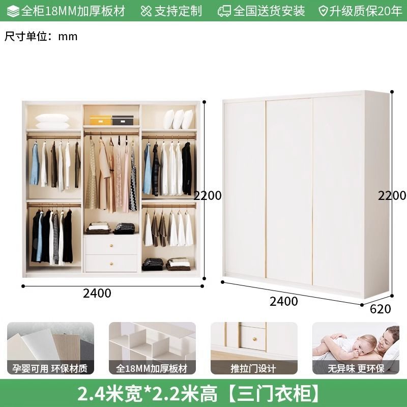 Enf 등급 유럽 소나무 보드 슬라이딩 도어 옷장 가정용 침실 크림 스타일 작은 아파트 슬라이딩 도어 대형 옷장 주문 슈퍼 두께스토어 가기