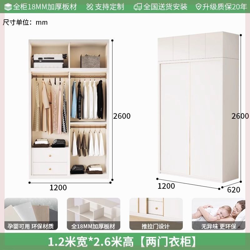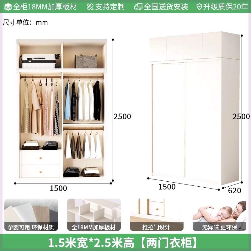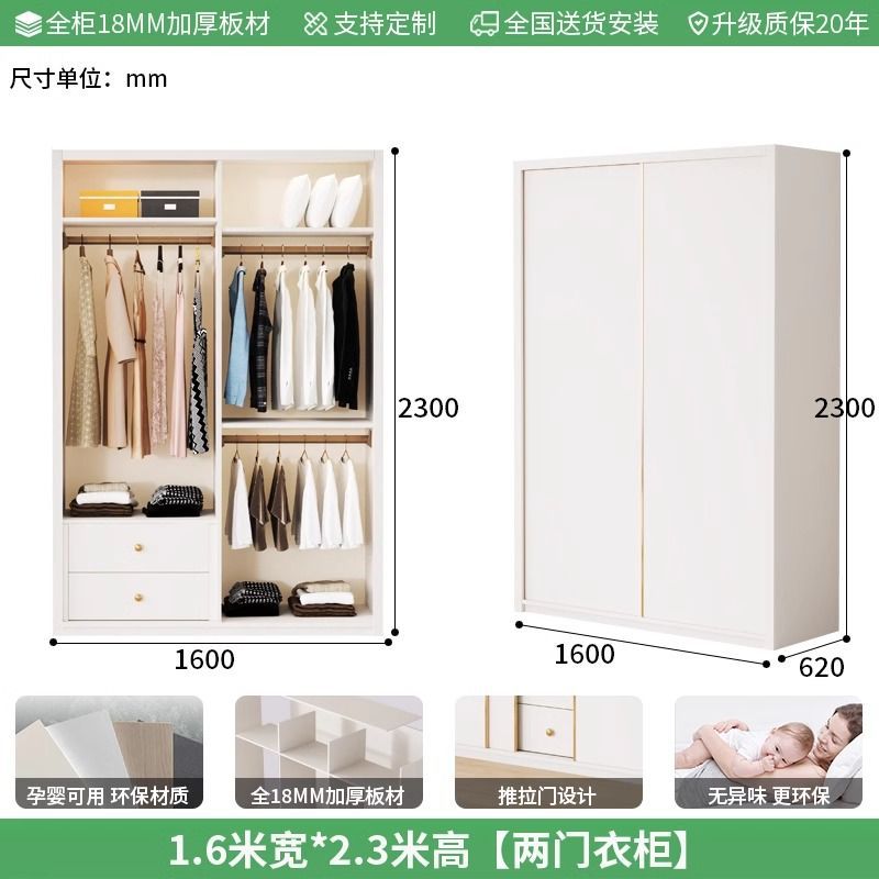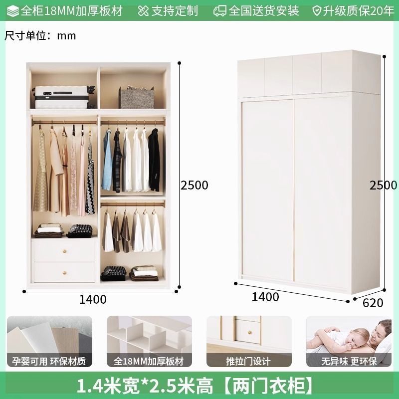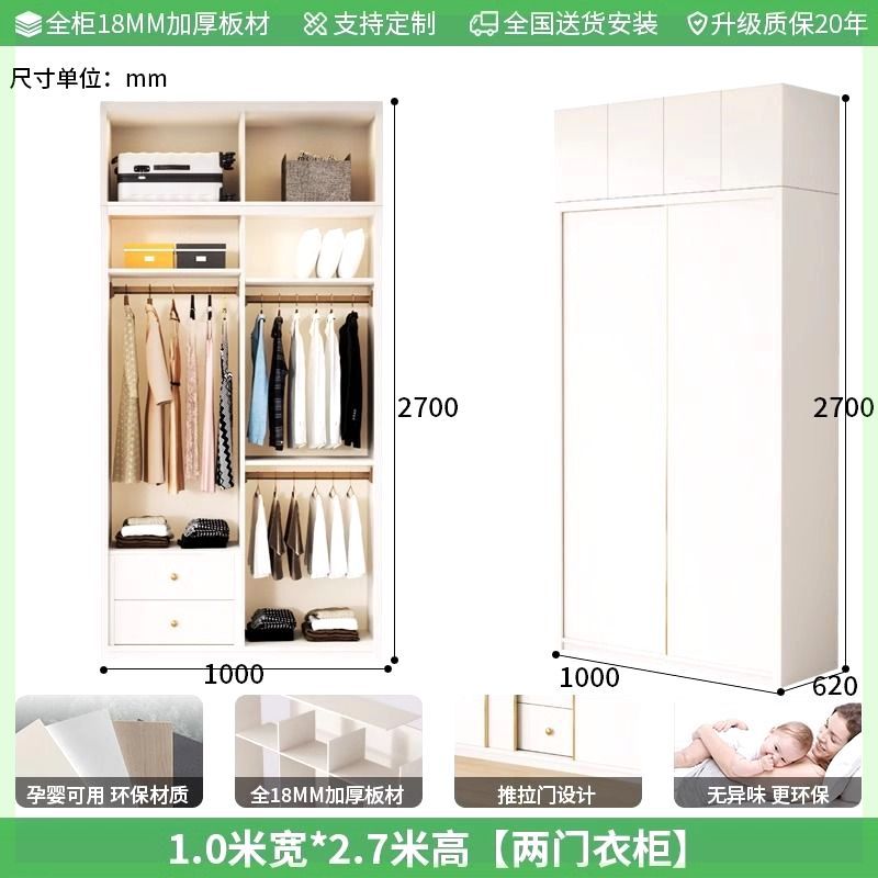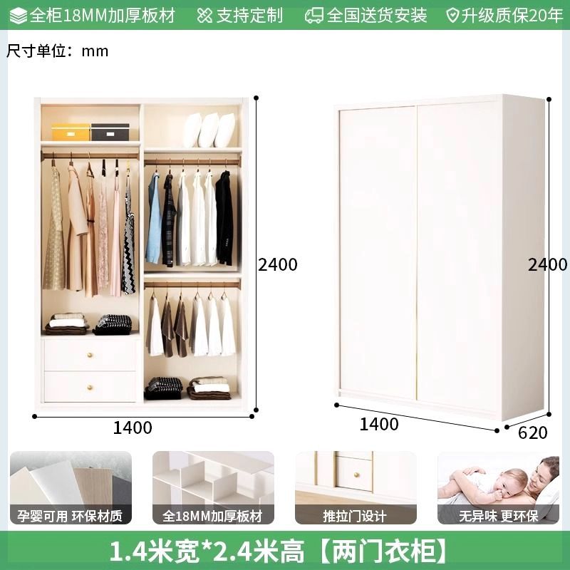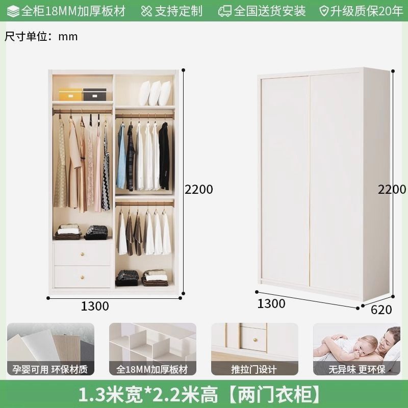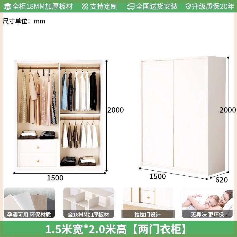 Enf 등급 유럽 소나무 보드 슬라이딩 도어 옷장 가정용 침실 크림 스타일 작은 아파트 슬라이딩 도어 대형 옷장 주문 슈퍼 두께스토어 가기
