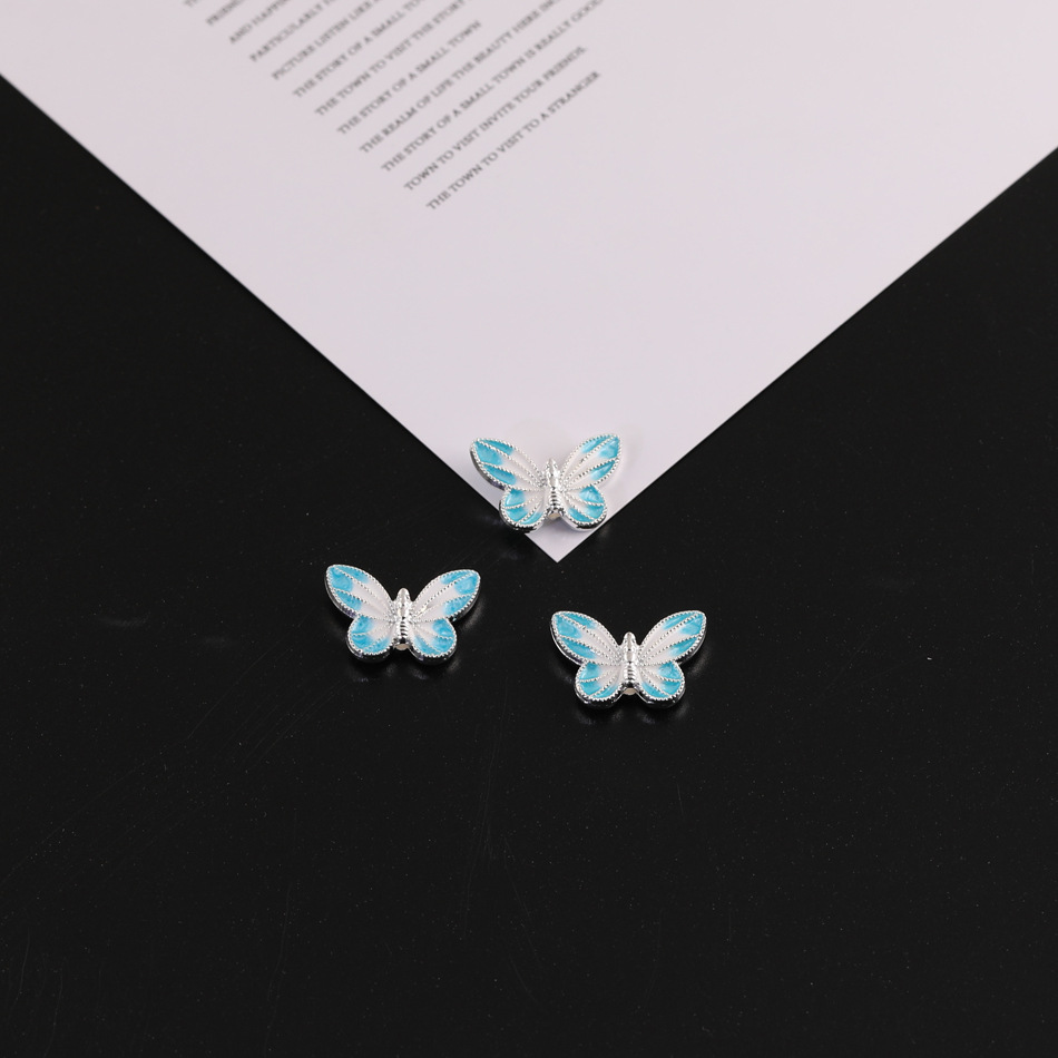 모조 불타는 블루 양면 그라디언트 나비 오일 드롭 작은 합금 DIY 수제 팔찌 목걸이 펜던트 쥬얼리 액세서리