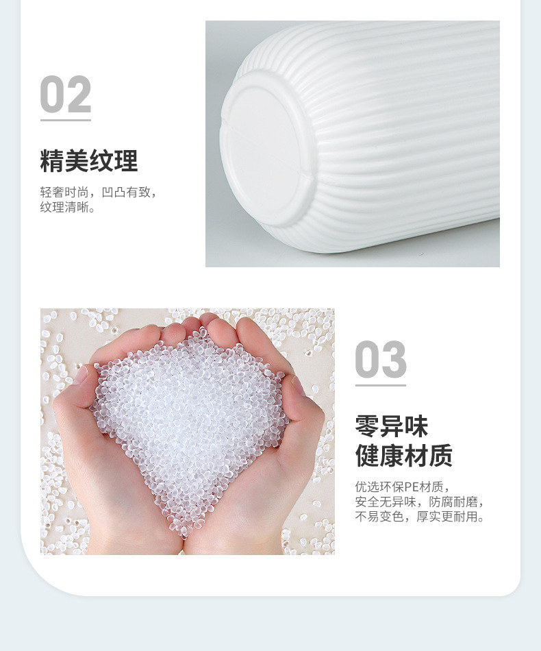 공장 도매 흰색 모조 세라믹 꽃병 고급 고급 줄무늬 거실 장식품은 물 플라스틱 꽃병을 저장할 수 있습니다스토어 가기
