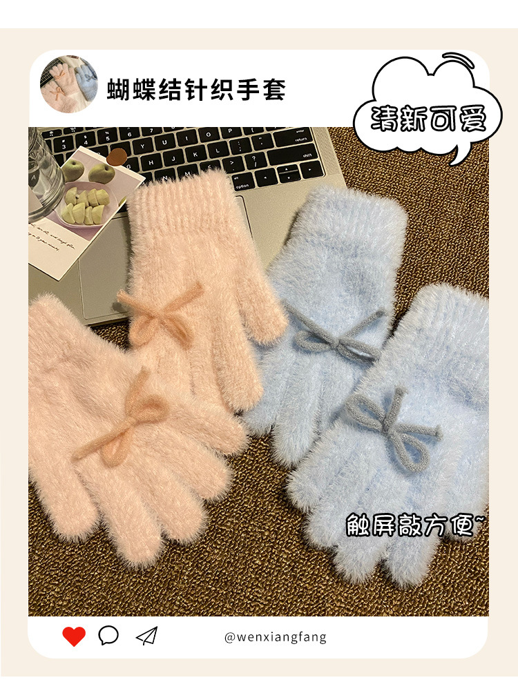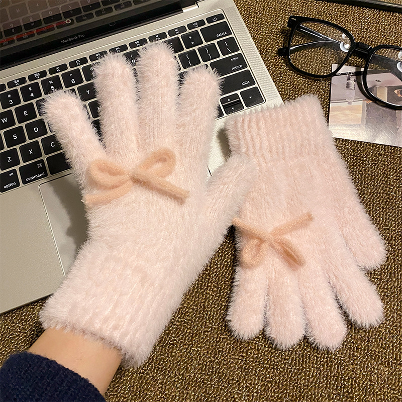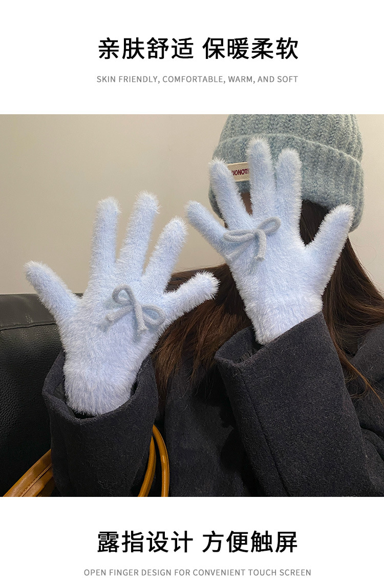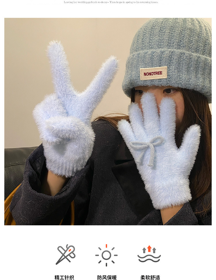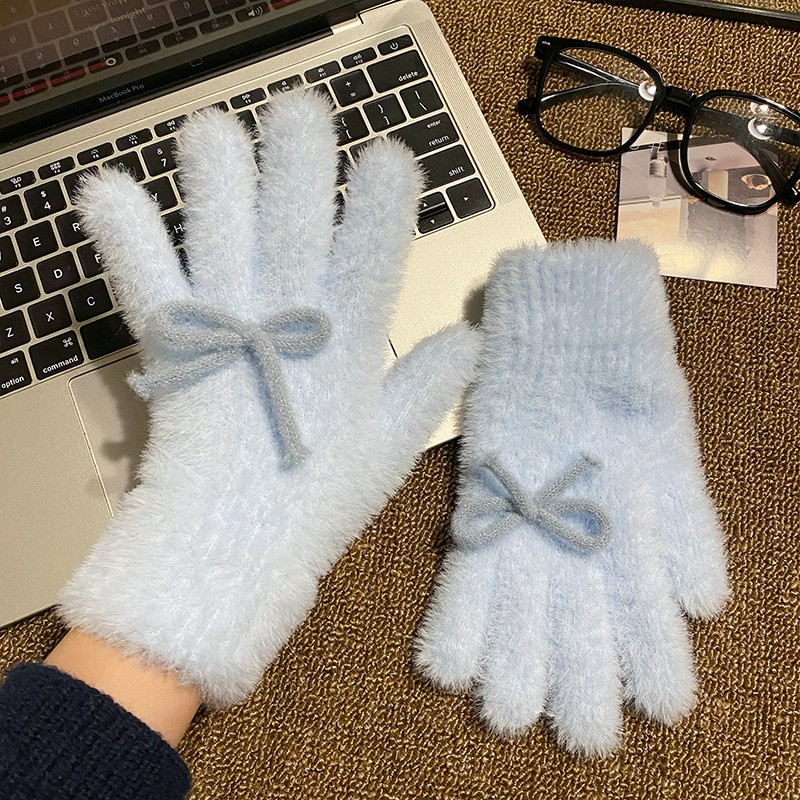 가을과 겨울에 여성을위한 활 파란색 니트 울 장갑 2024 두껍고 따뜻하고 방한 학생 야외 승마스토어 가기