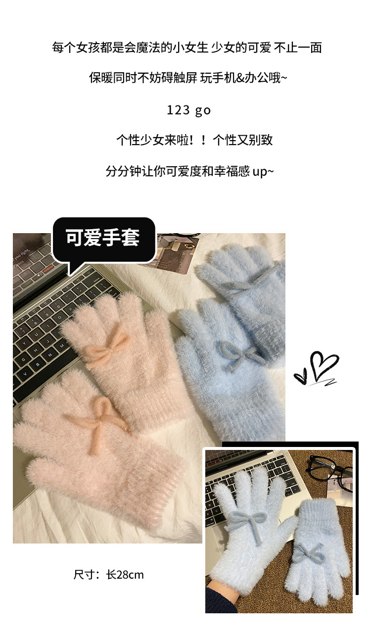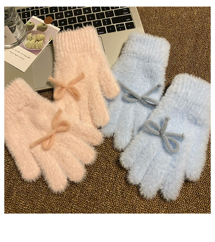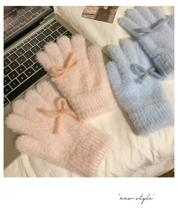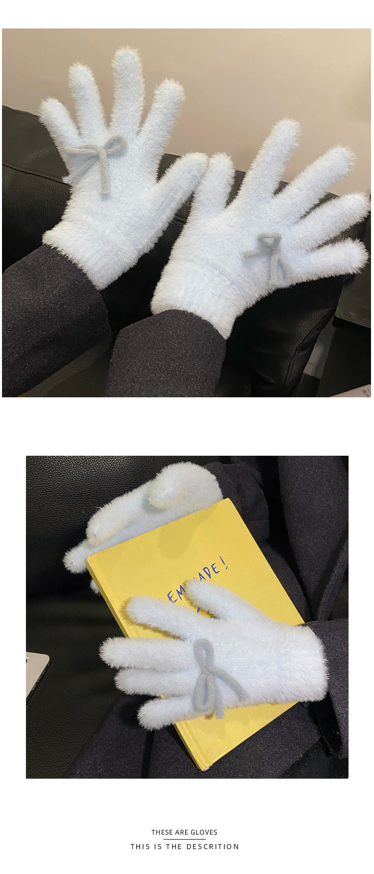 가을과 겨울에 여성을위한 활 파란색 니트 울 장갑 2024 두껍고 따뜻하고 방한 학생 야외 승마스토어 가기