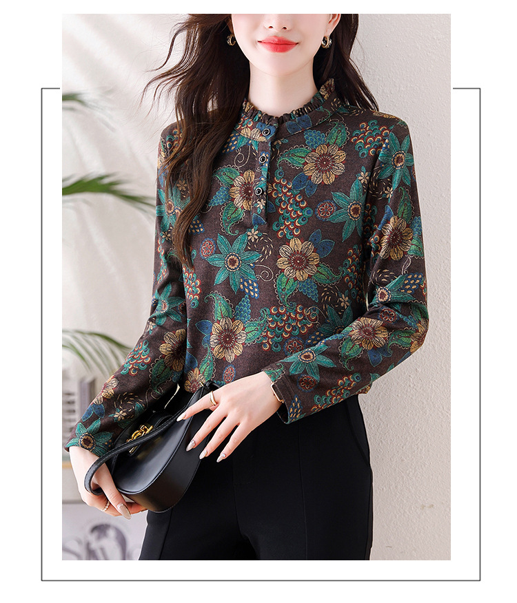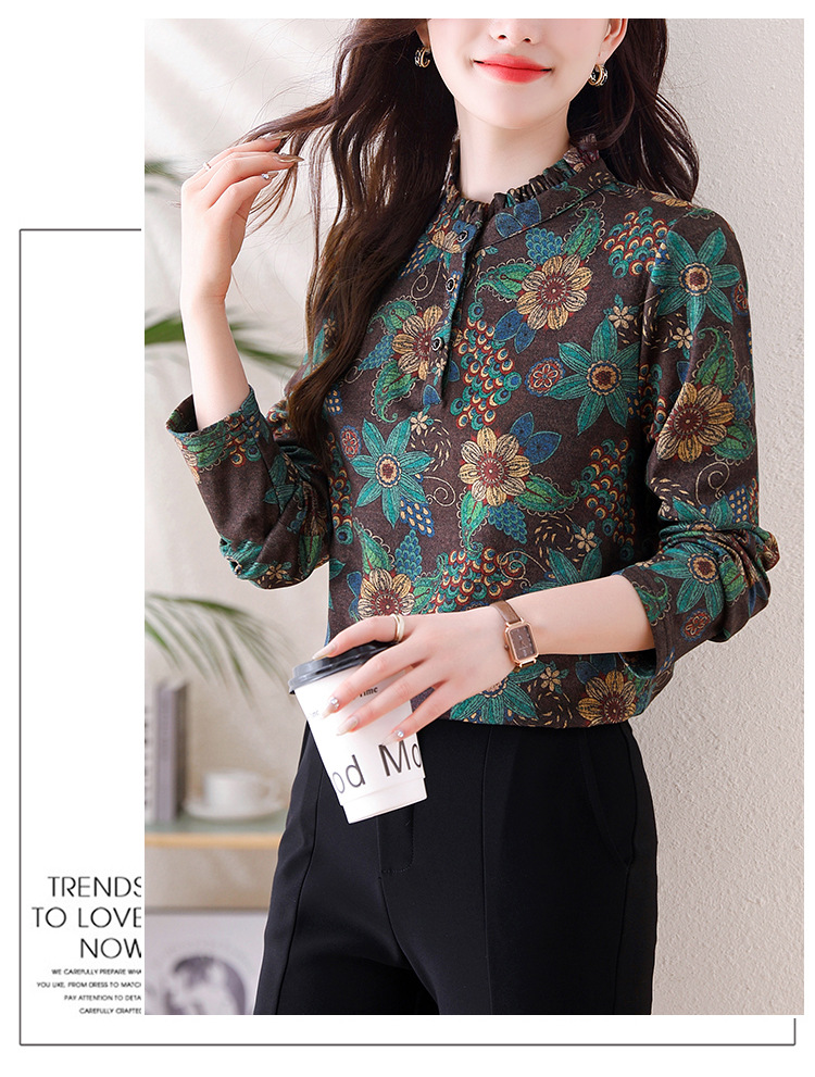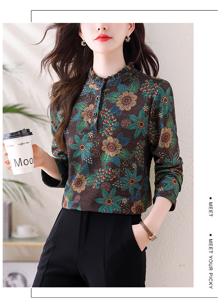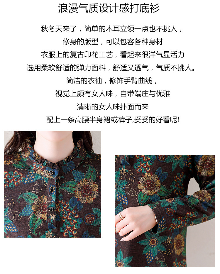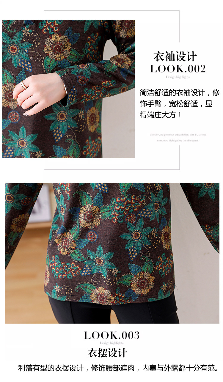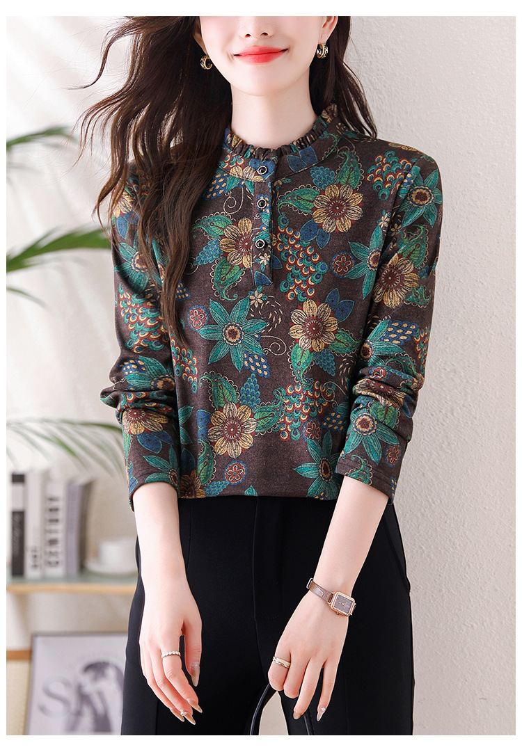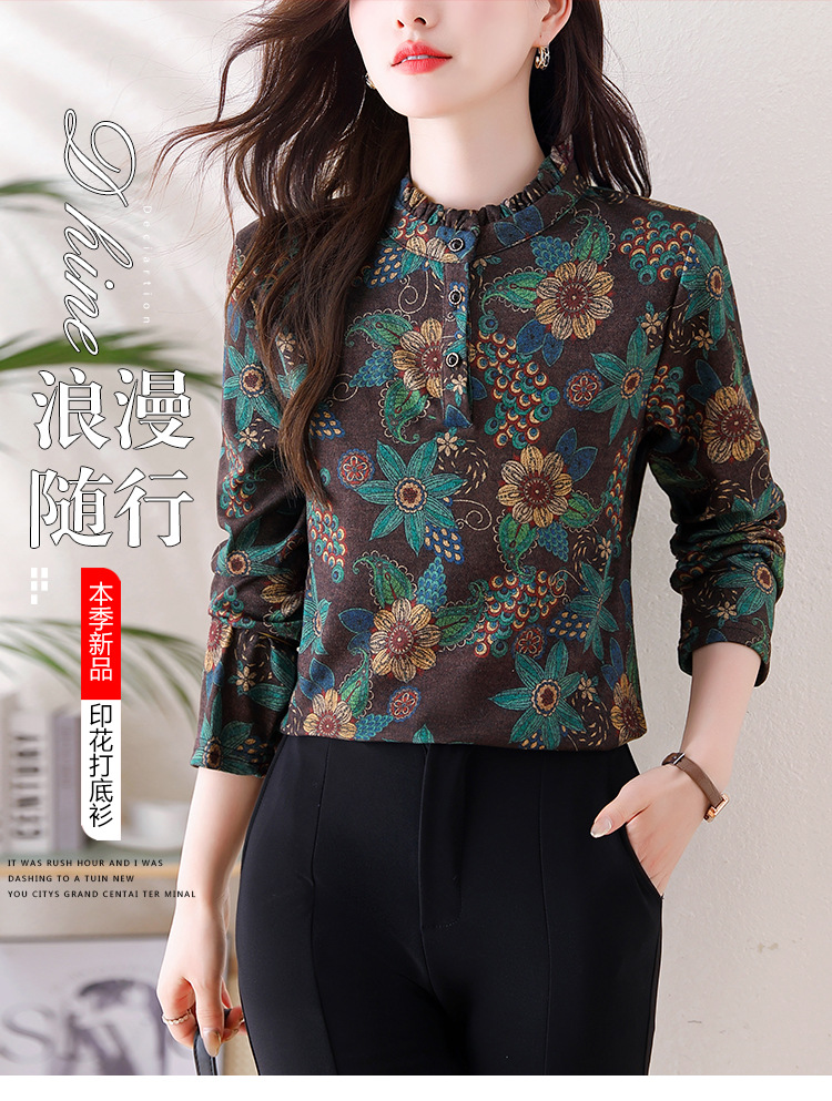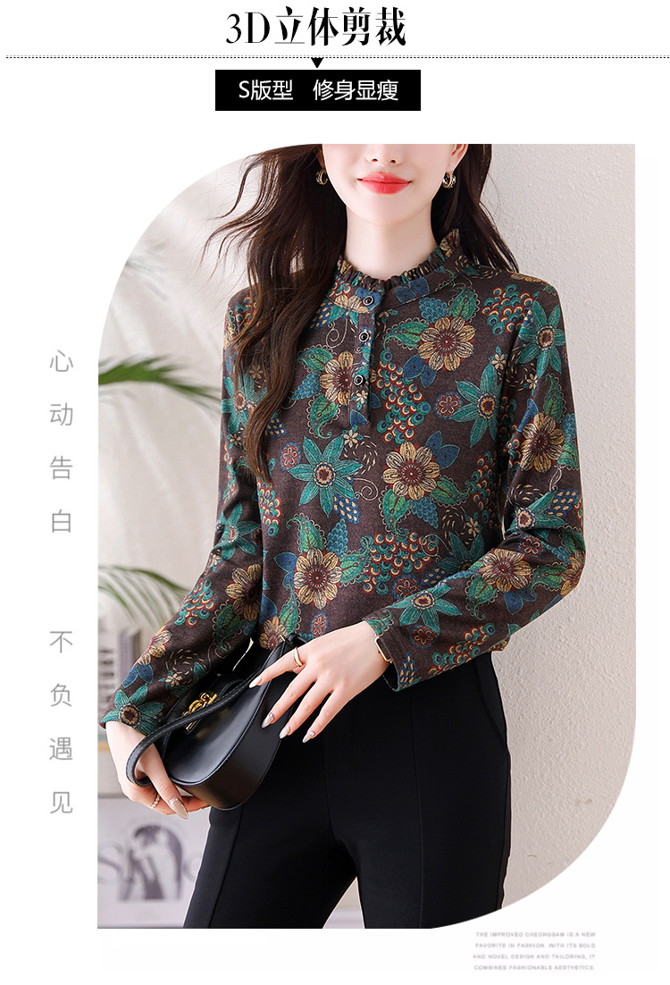 2024 년 가을과 겨울 새로운 긴팔 인쇄 모든 경기 어머니의 나이 감소 칼라 아오 벨벳 따뜻한 백킹 셔츠 여성용 탑