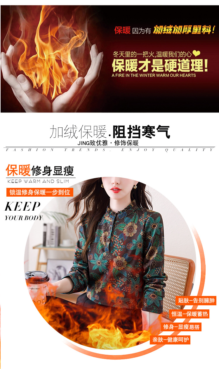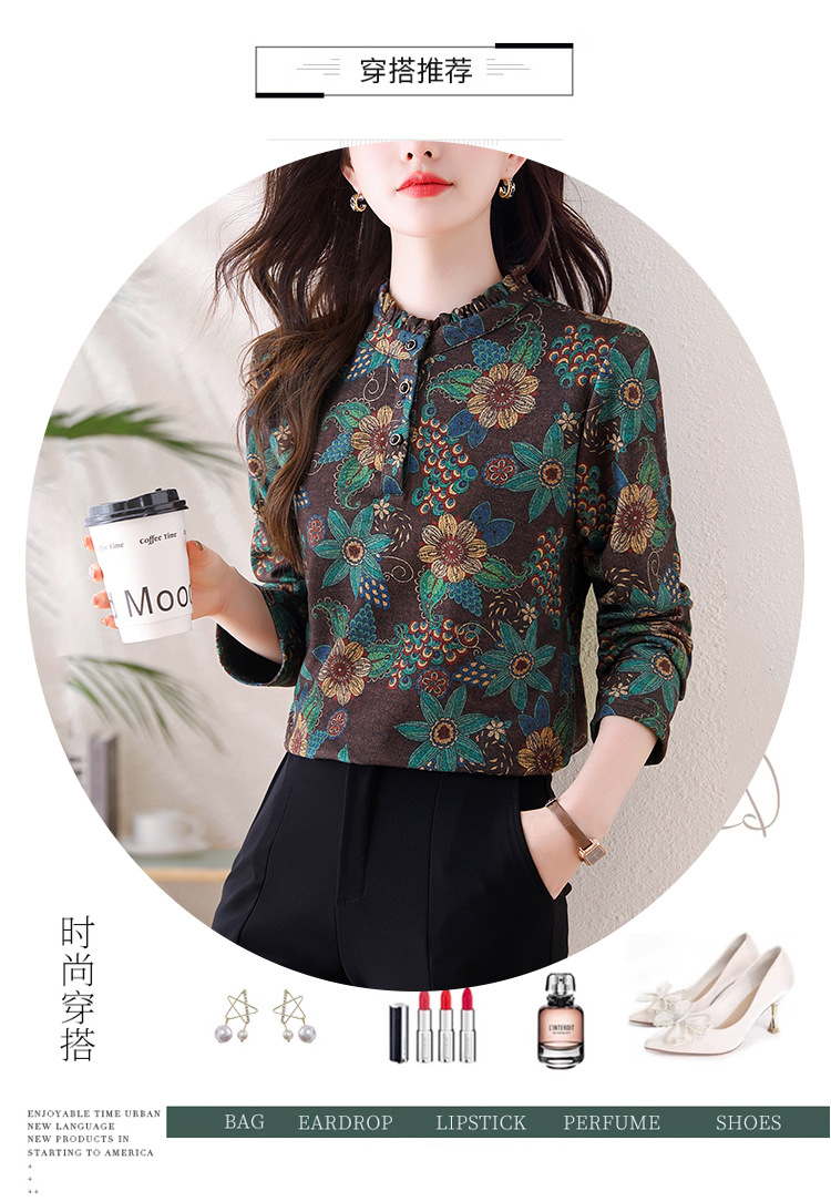 2024 년 가을과 겨울 새로운 긴팔 인쇄 모든 경기 어머니의 나이 감소 칼라 아오 벨벳 따뜻한 백킹 셔츠 여성용 탑스토어 가기