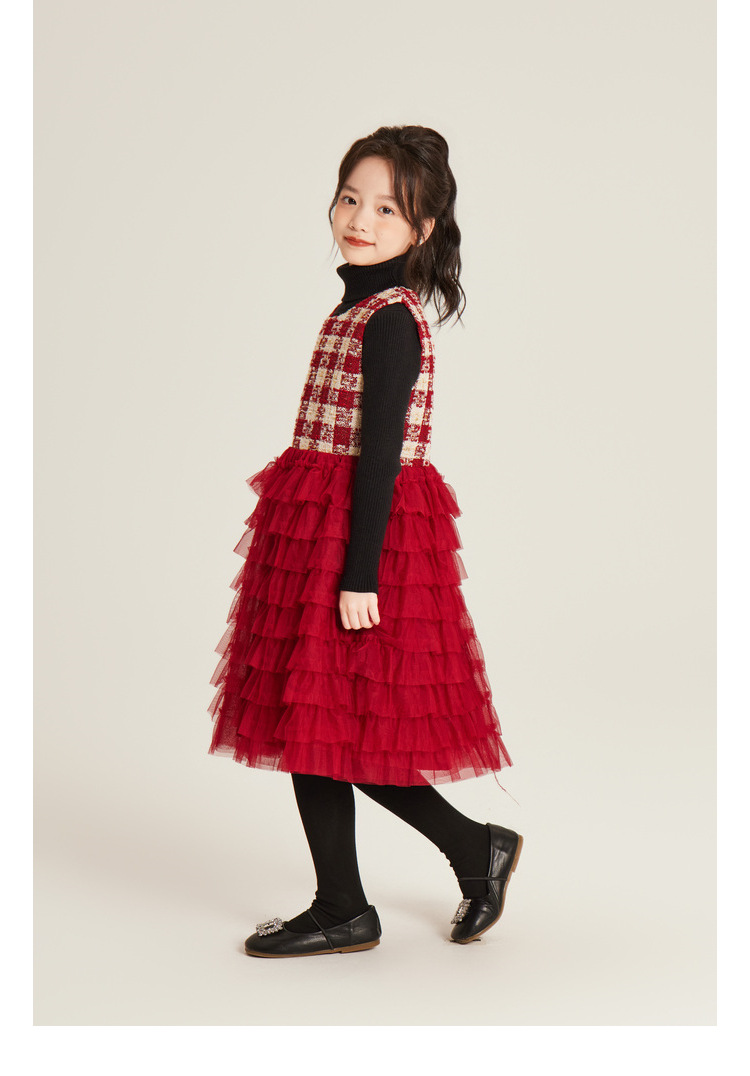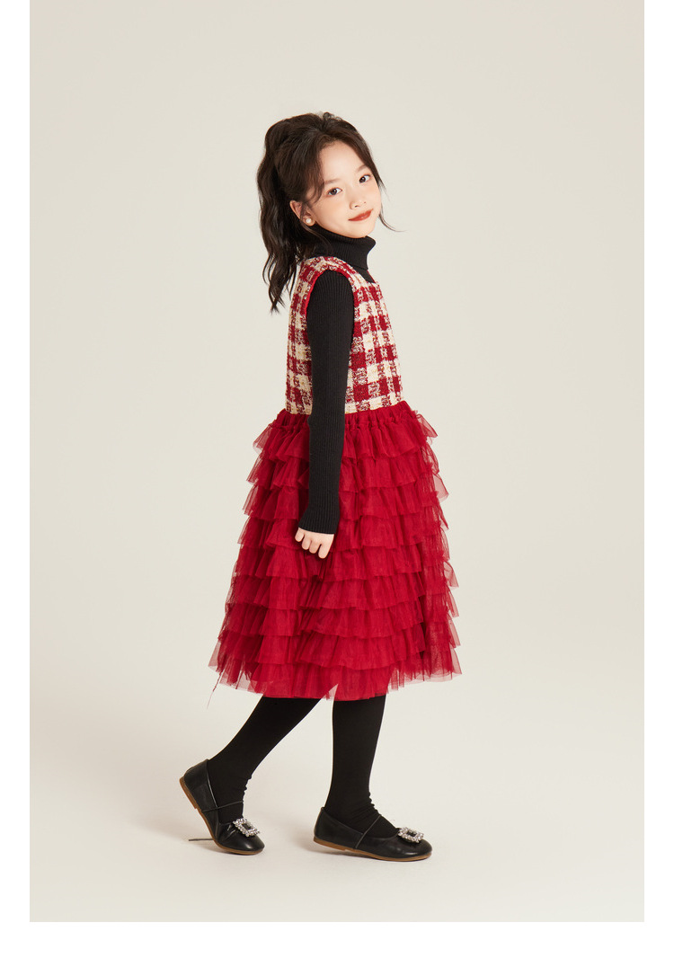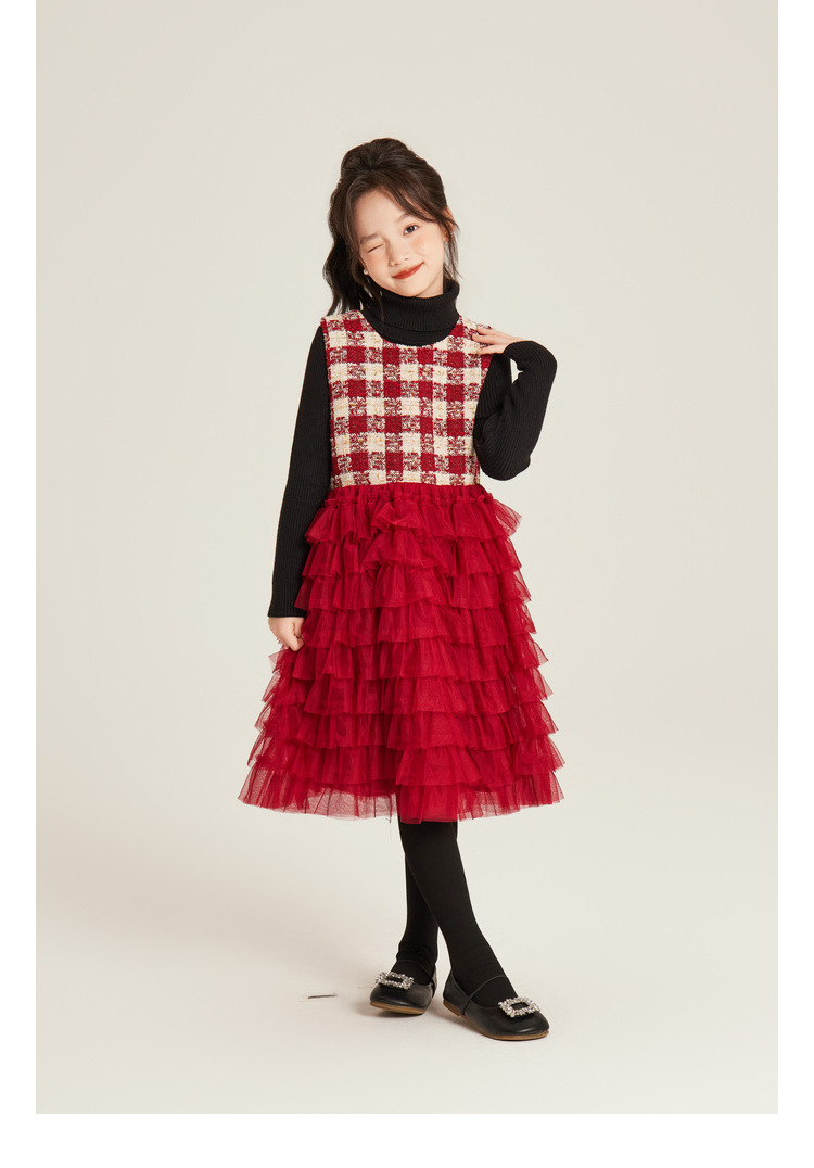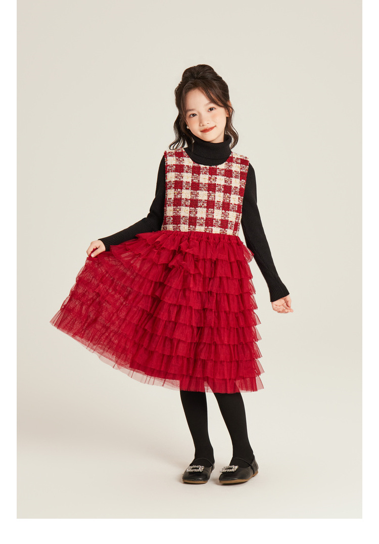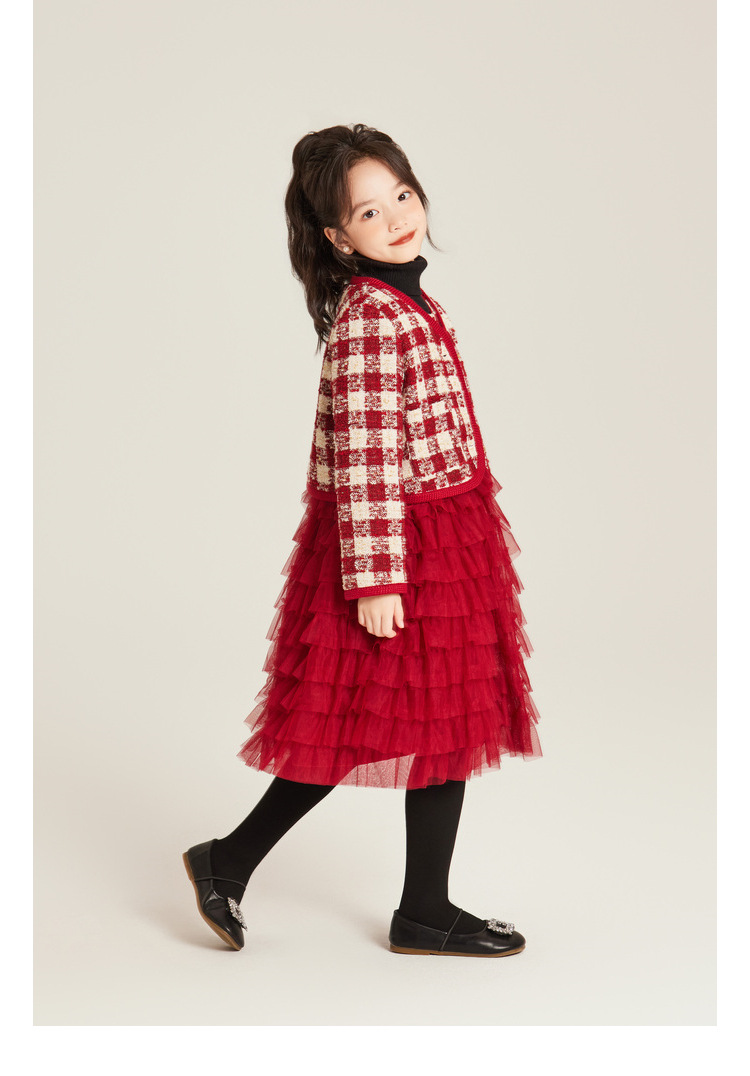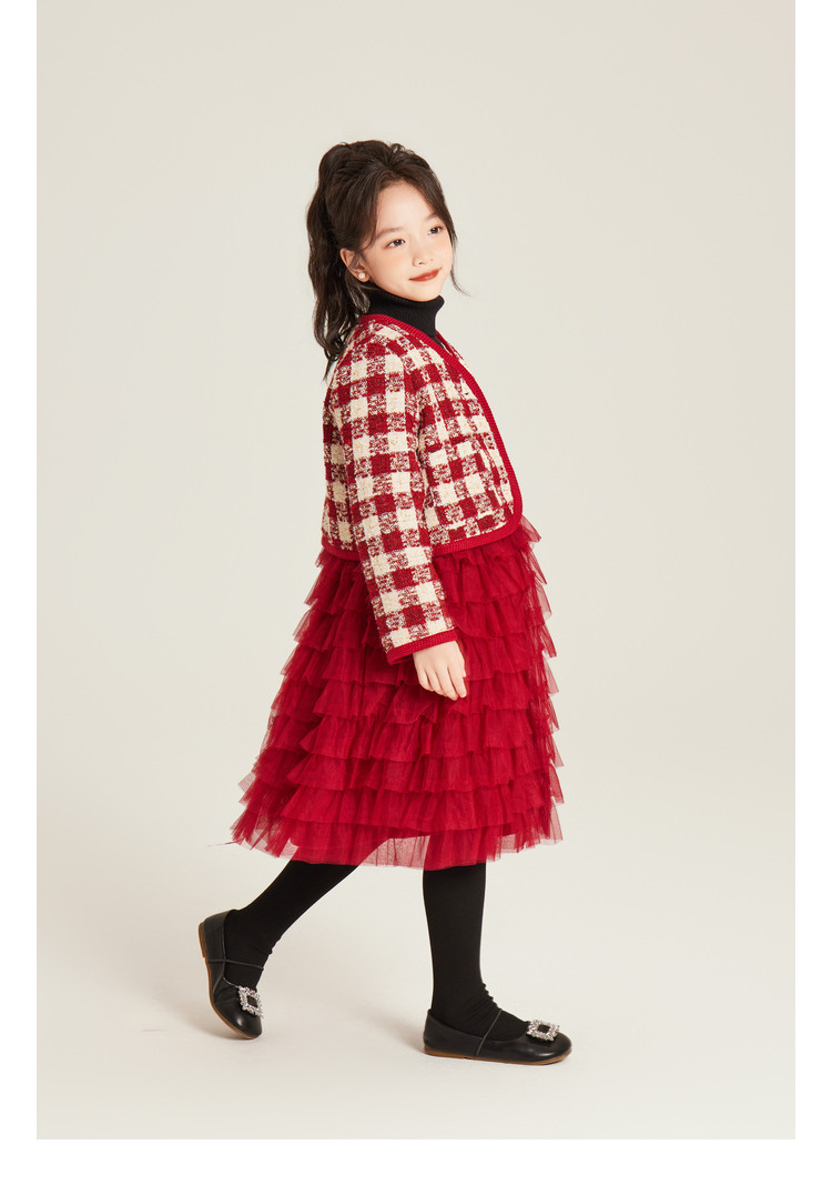 Amybaby 여자 세트 겨울 2024 새로운 스타일 샤넬 스타일 겨울 공주 원피스 Houndstooth 모직 코트