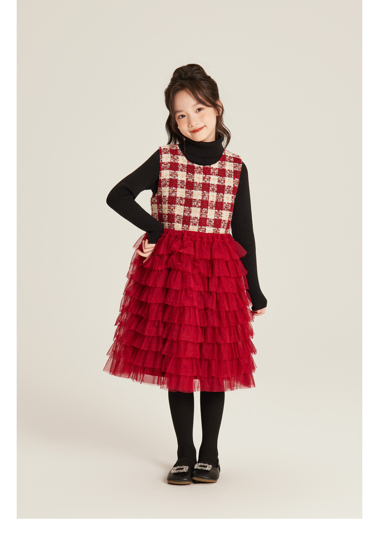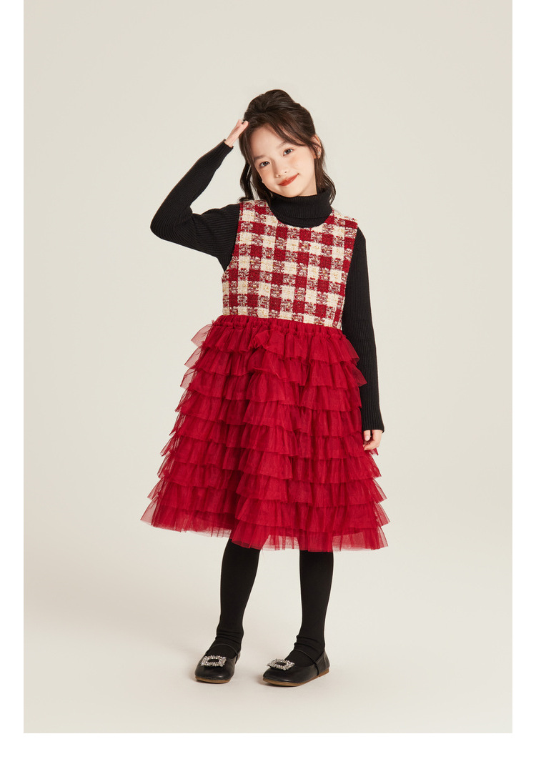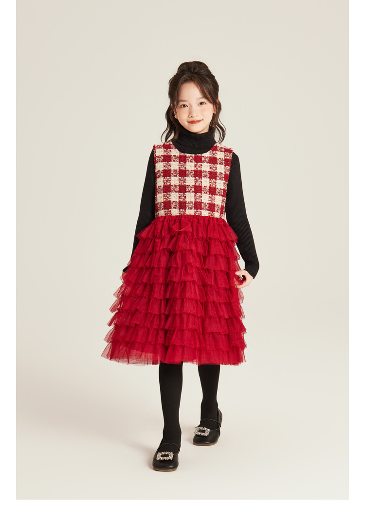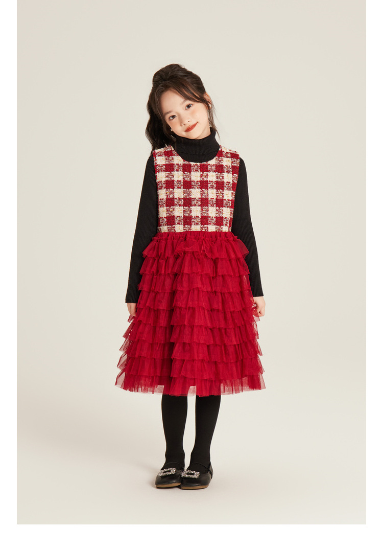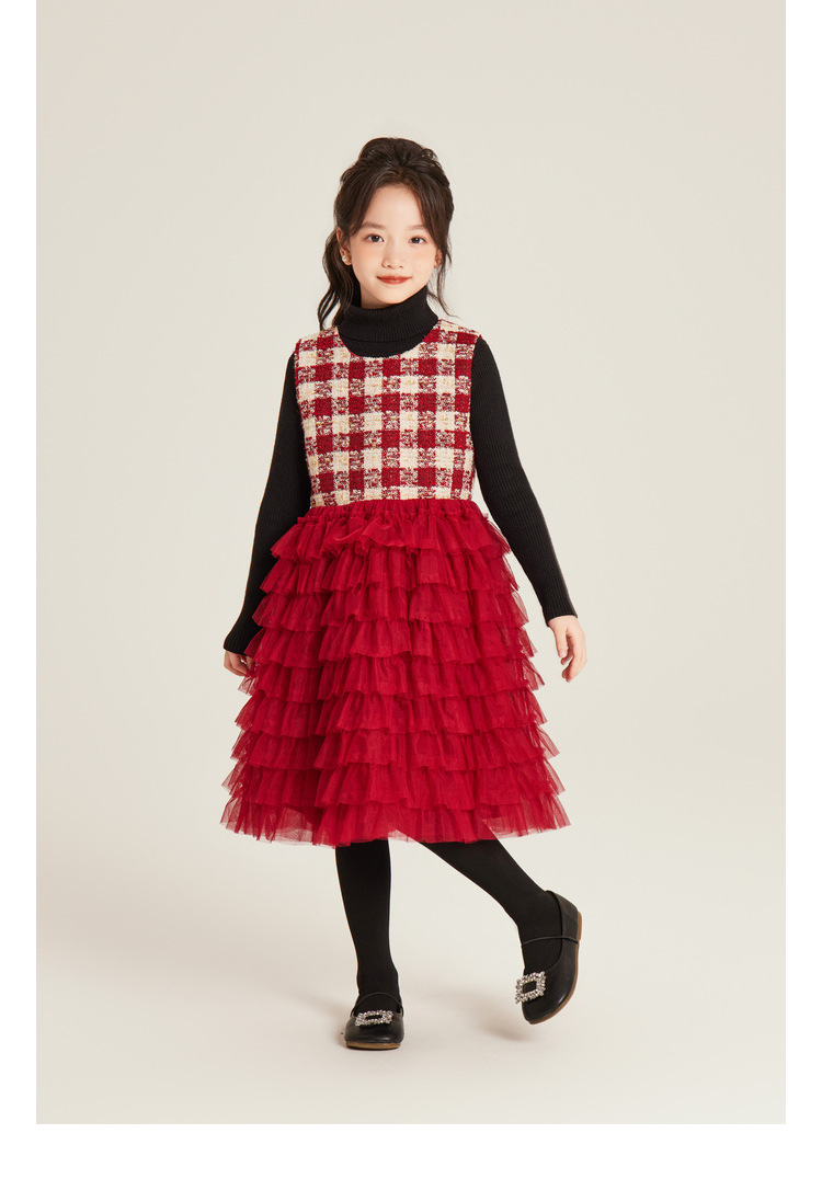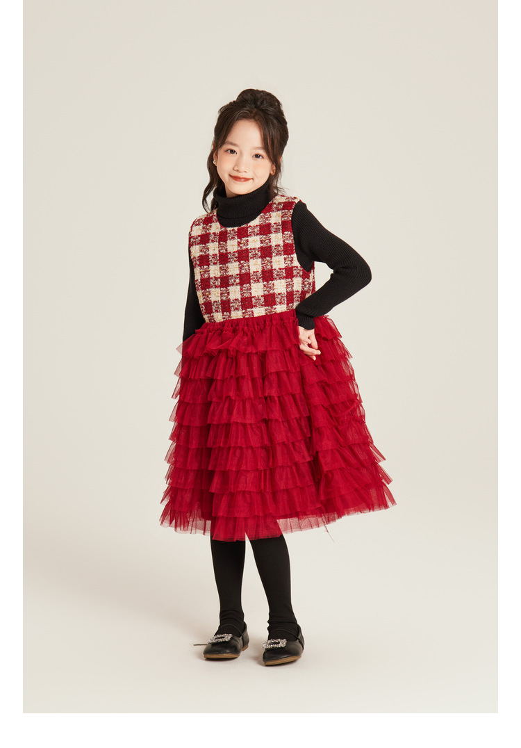 Amybaby 여자 세트 겨울 2024 새로운 스타일 샤넬 스타일 겨울 공주 원피스 Houndstooth 모직 코트