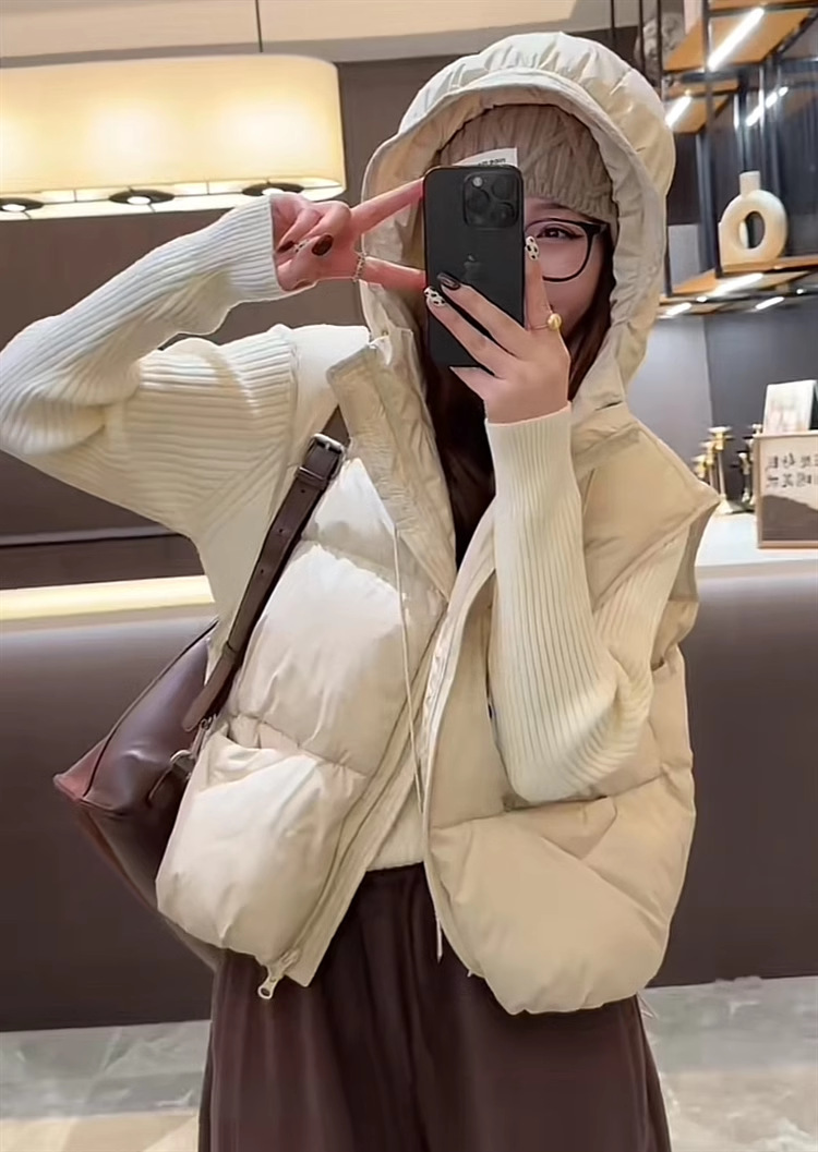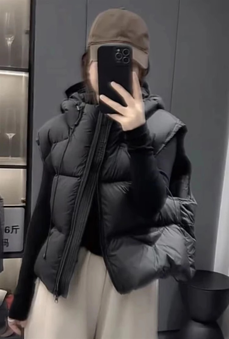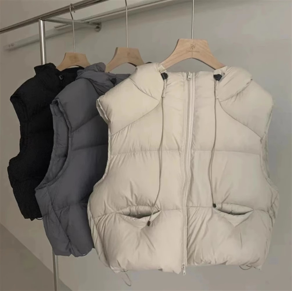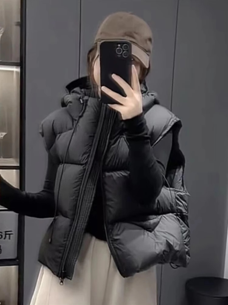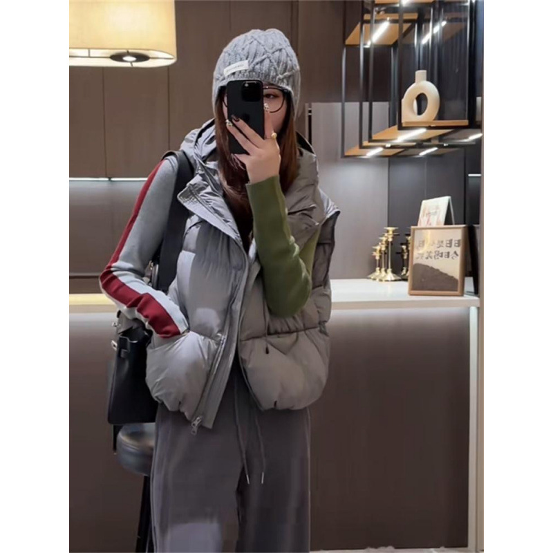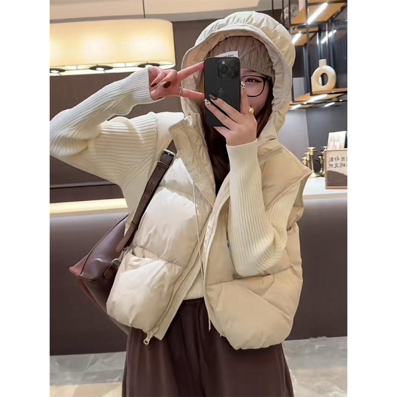 유럽산 여성용 다운 조끼 2025 가을 겨울 한국 스타일 후드 다운 조끼 짧은 스타일 루즈핏 캐주얼 조끼스토어 가기