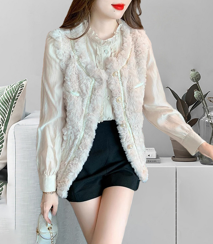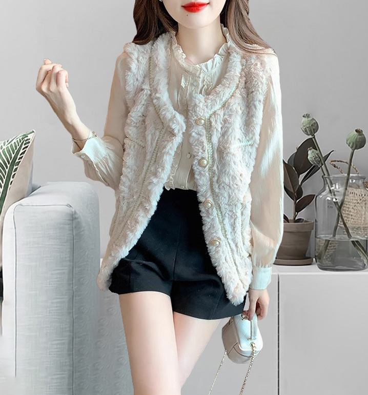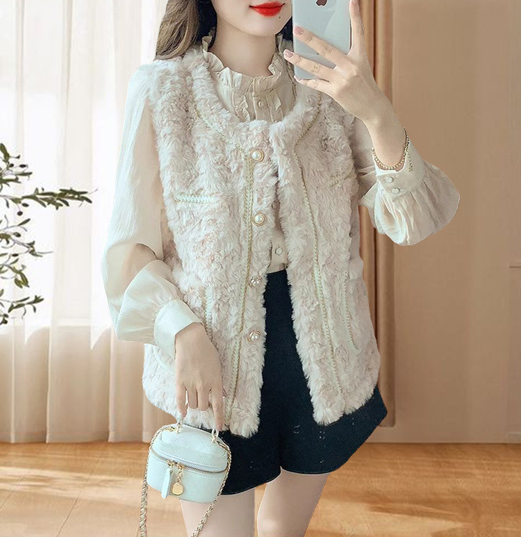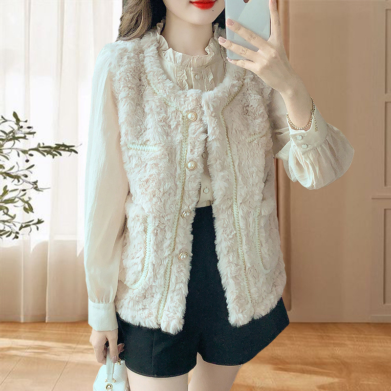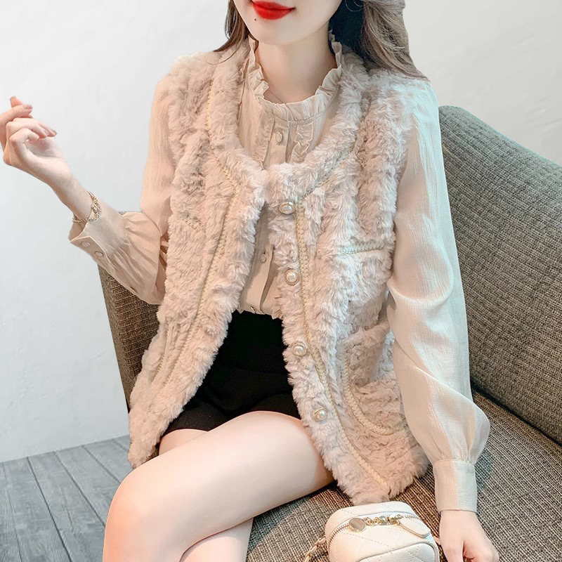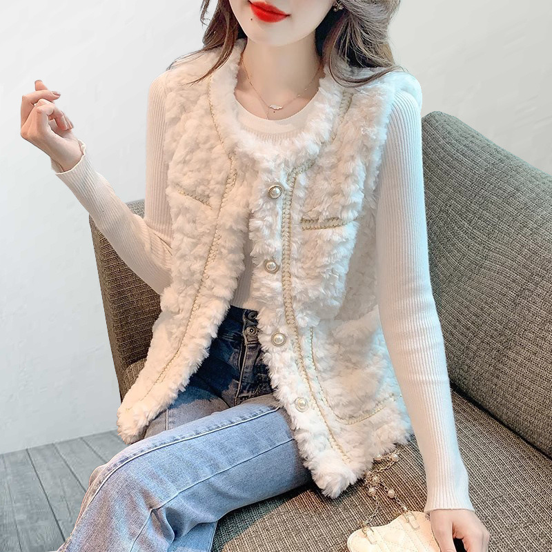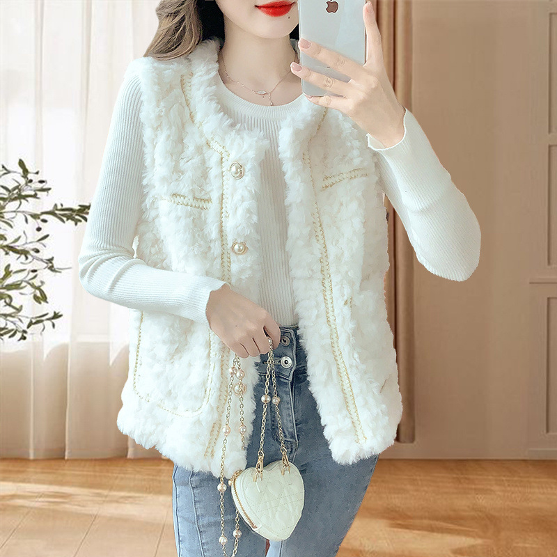 2025 새로운 스타일 작은 향기로운 조끼 재킷 여성 양고기 모피 면화 두꺼운 작은 양복 조끼 느슨한 재킷