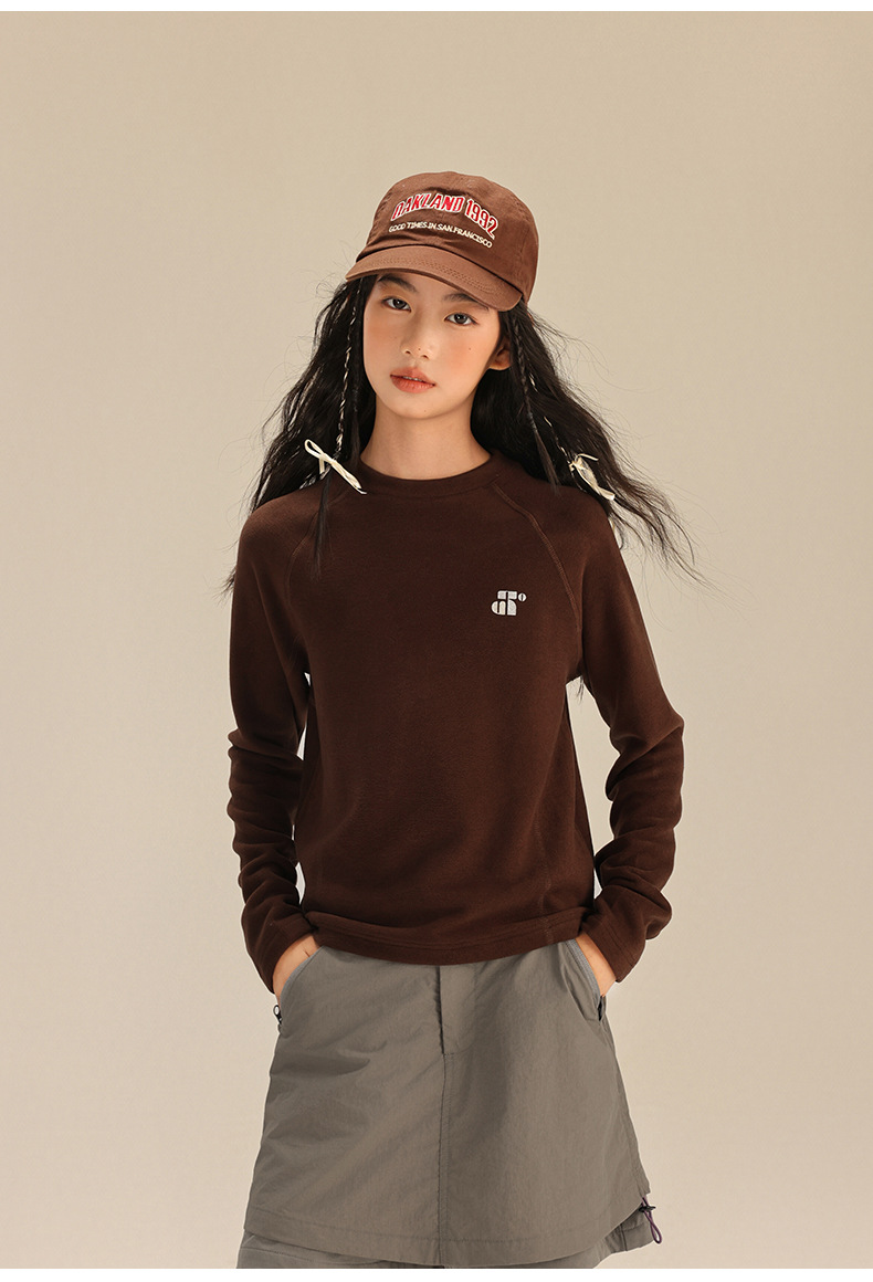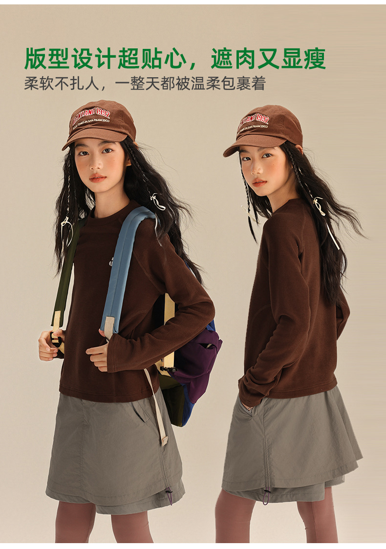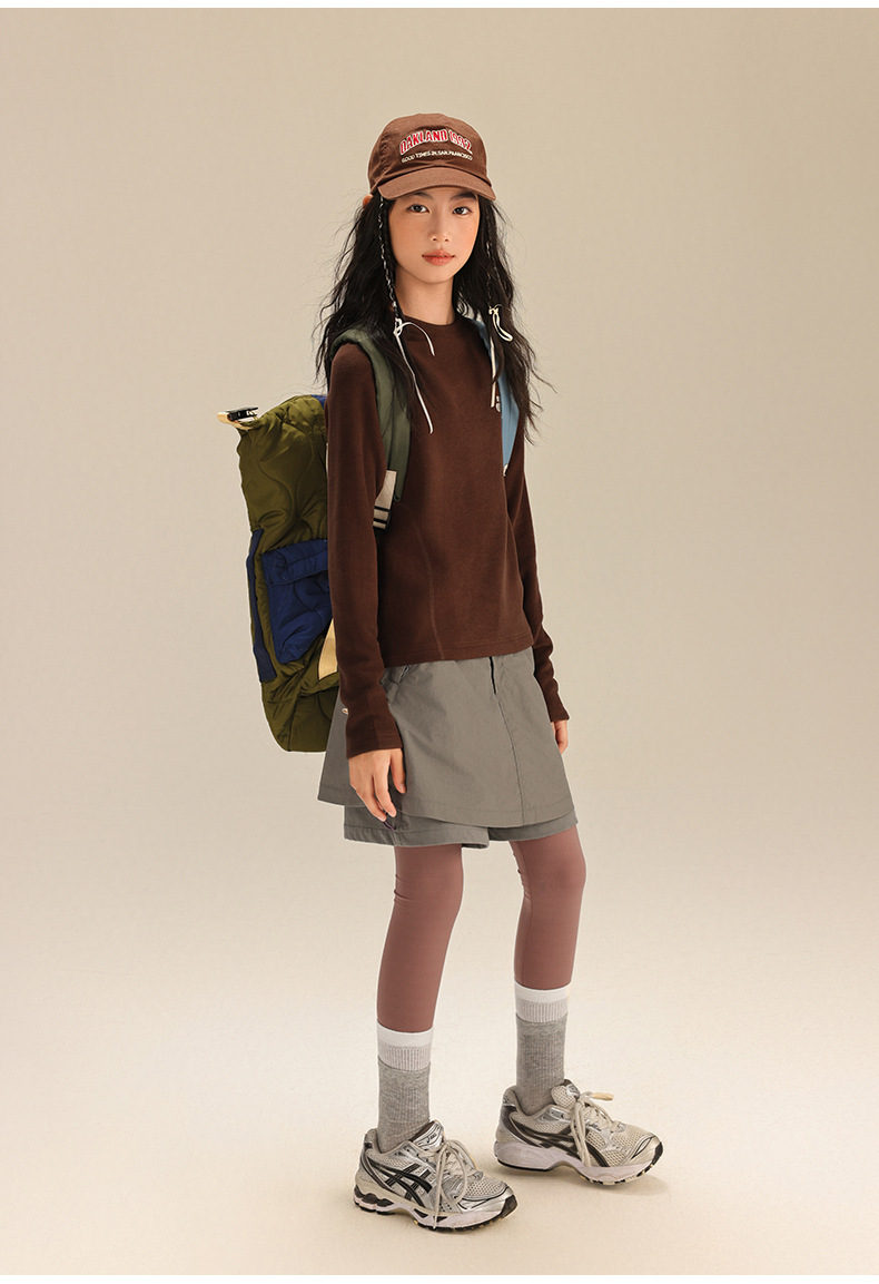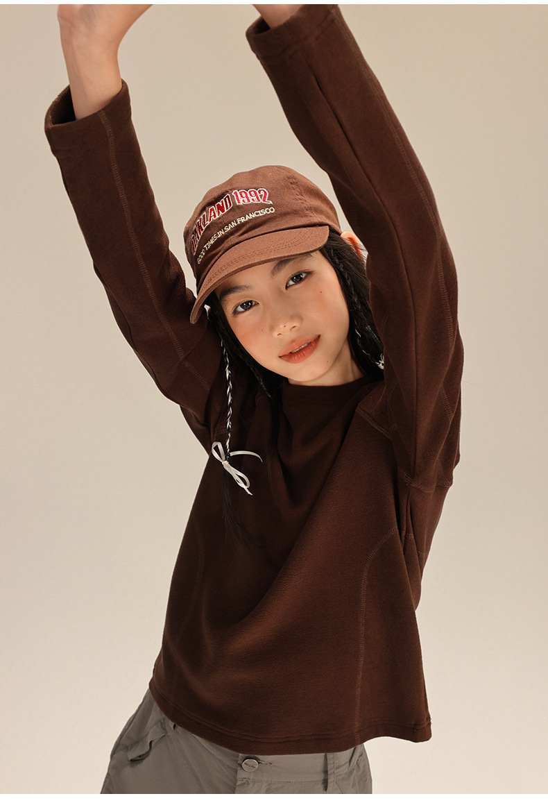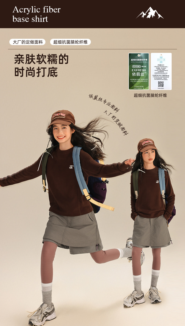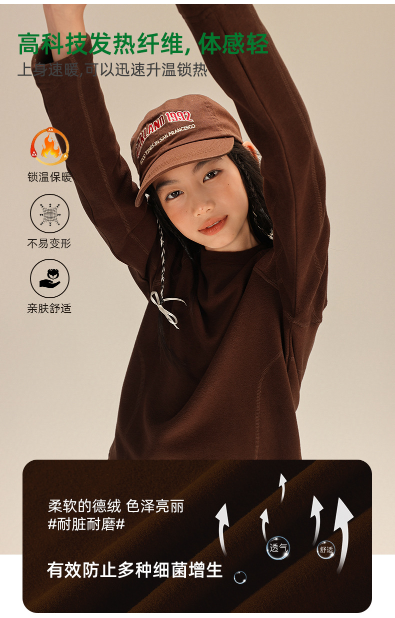 Amoy 소녀 긴팔 티셔츠 간단한 단색 열 저장 스포츠 따뜻한 가을과 겨울 어린이 레저 항균베이스 셔츠