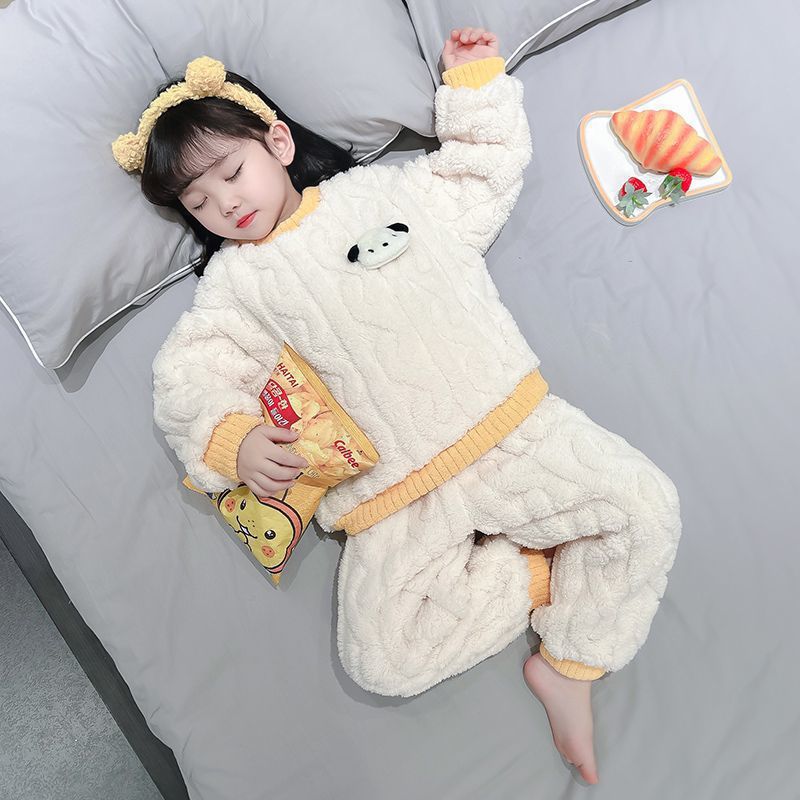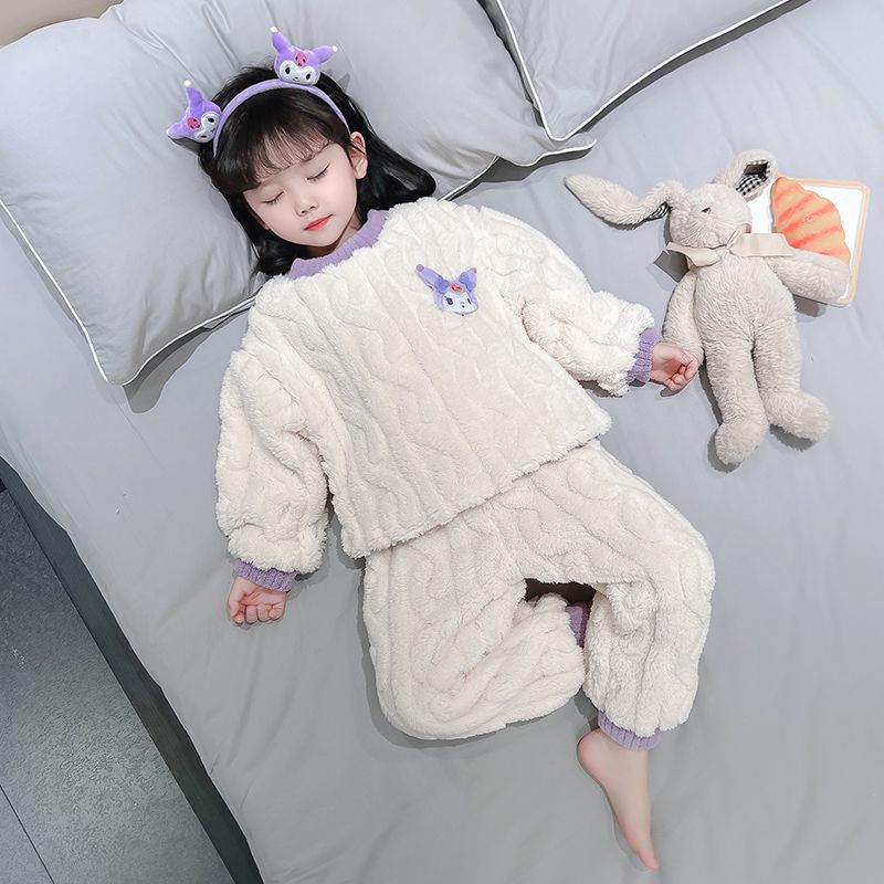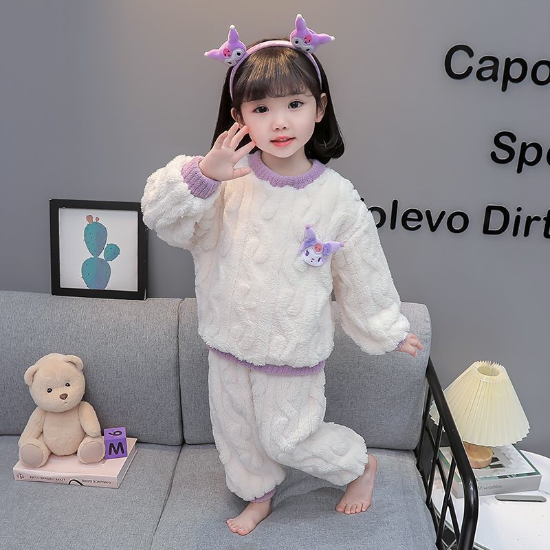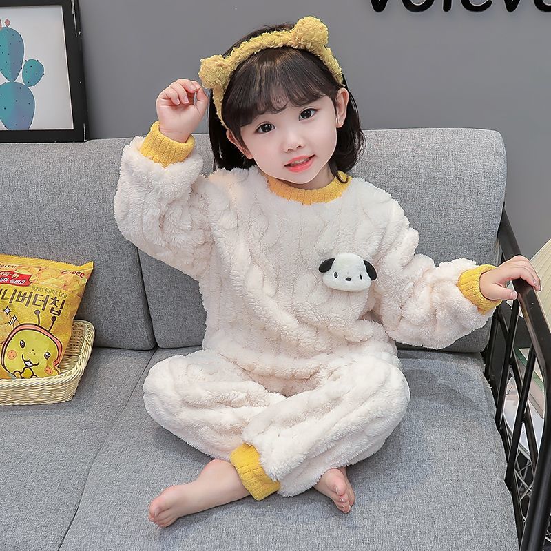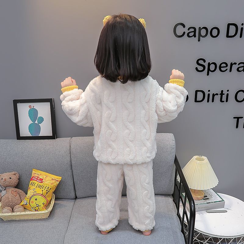 77357 소녀 잠옷 홈 옷 어린이 플란넬 산호 양털 세트 겨울 투피스 세트