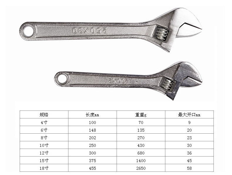 조정 가능한 렌치 오픈 엔드 모바일 느슨한 렌치 순수한 강철 단조 느슨한 손 4 인치 6 인치 8 인치 10 인치 12 인치 15 마을스토어 가기