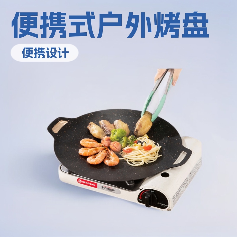 야외 캠핑 가정용 바베큐 플레이트 한국식 그릴 플레이트 라운드 휴대용 유니버설 계란 플레이트 철판 이중 귀 바베큐 플레이트스토어 가기