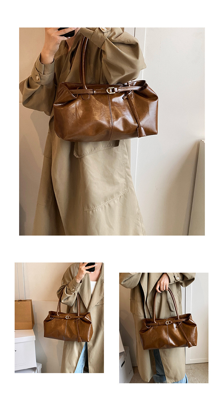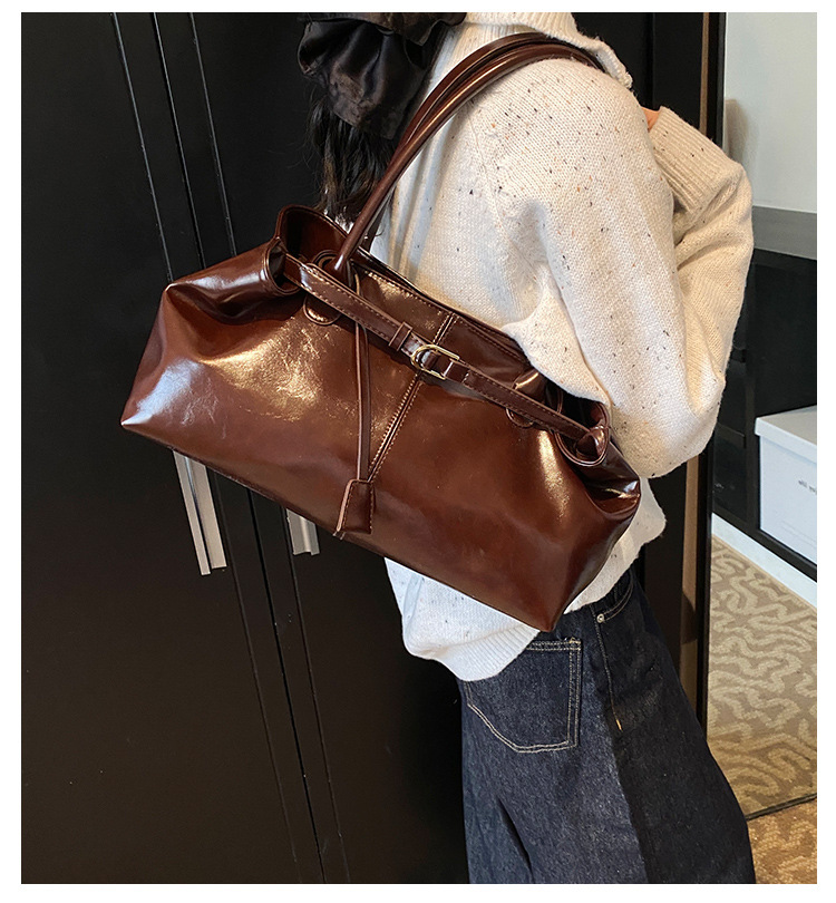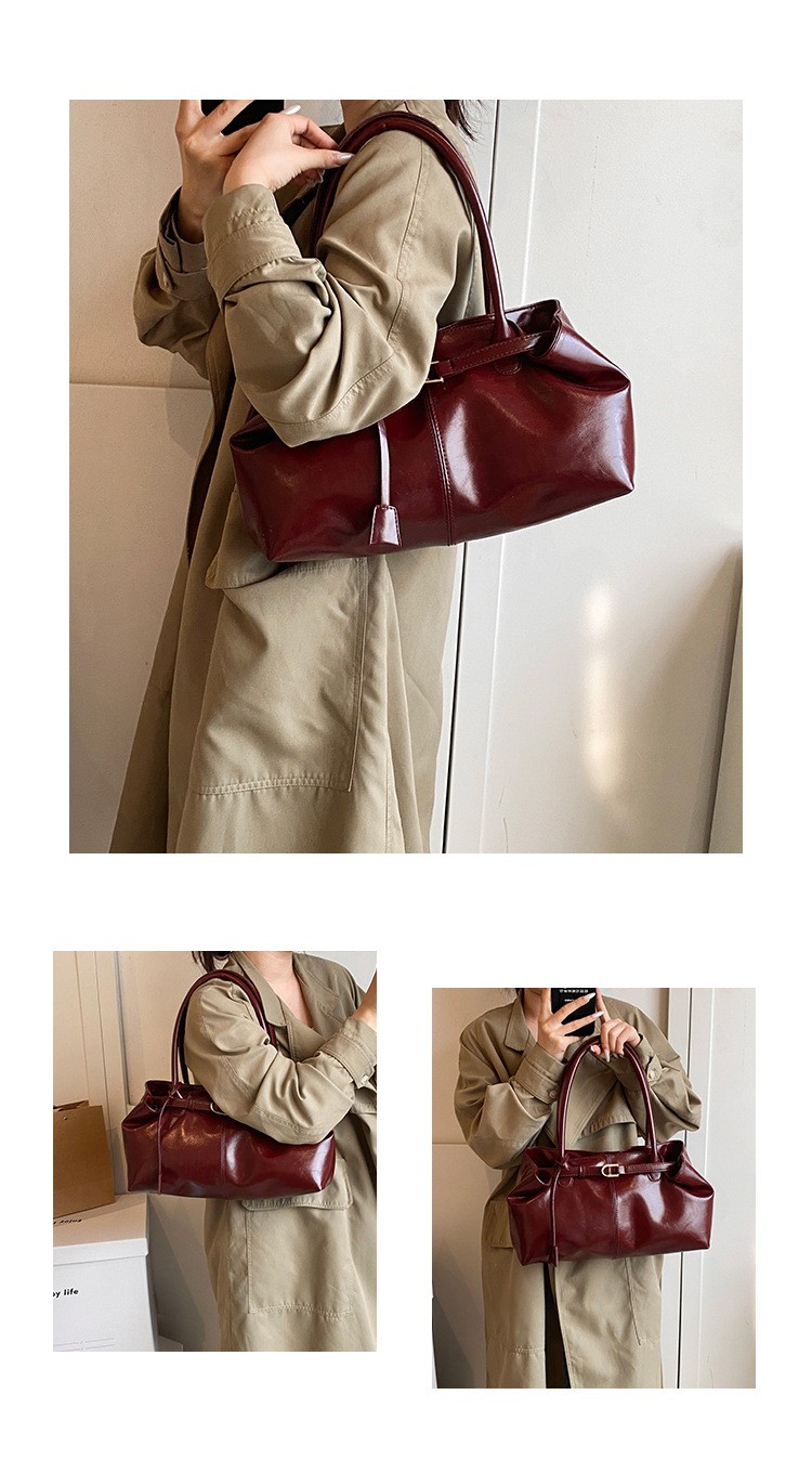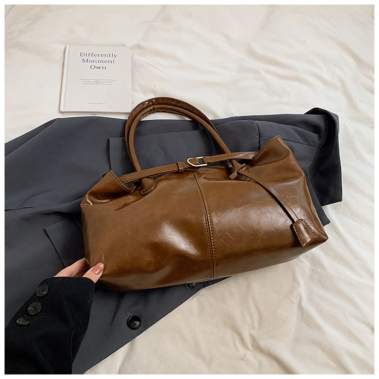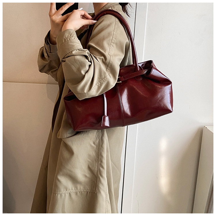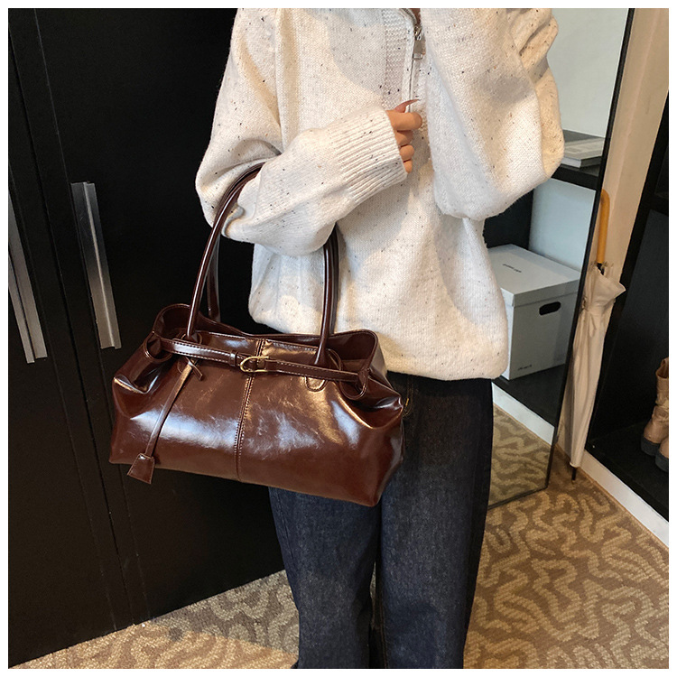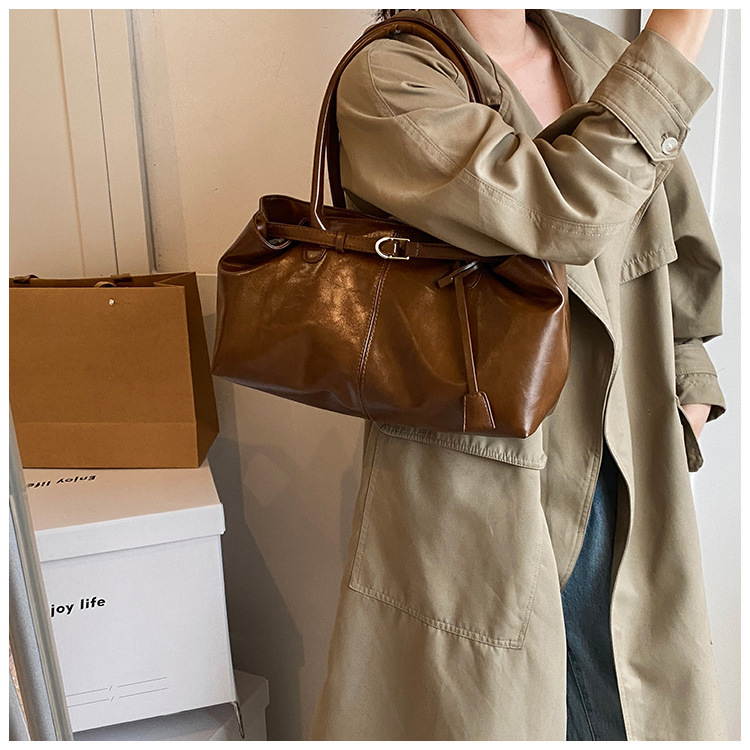 2024 새로운 보스턴 바게트 백 레트로 오토바이 스타일 헤드 레이어 오일 왁스 가죽 여성 가방 캐주얼 크로스 바디 숄더 백스토어 가기