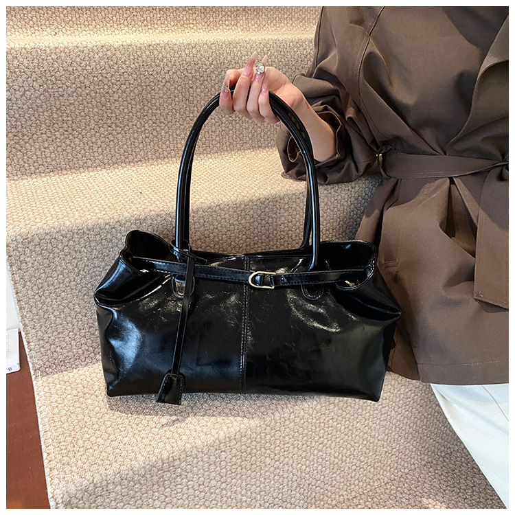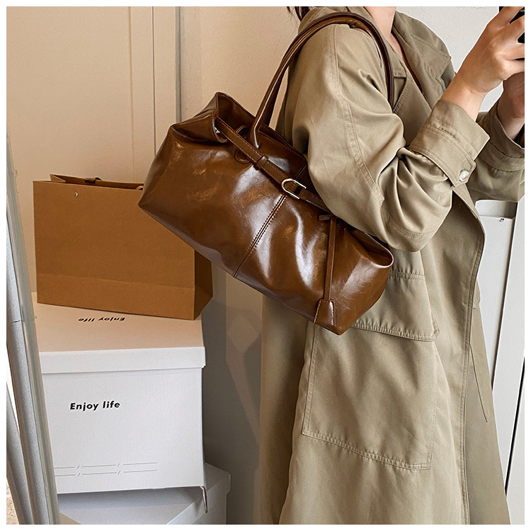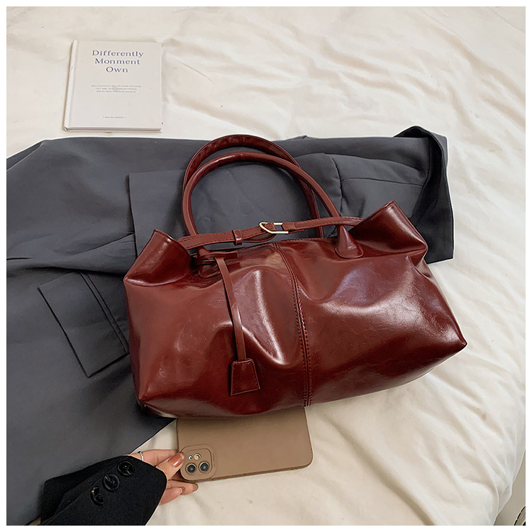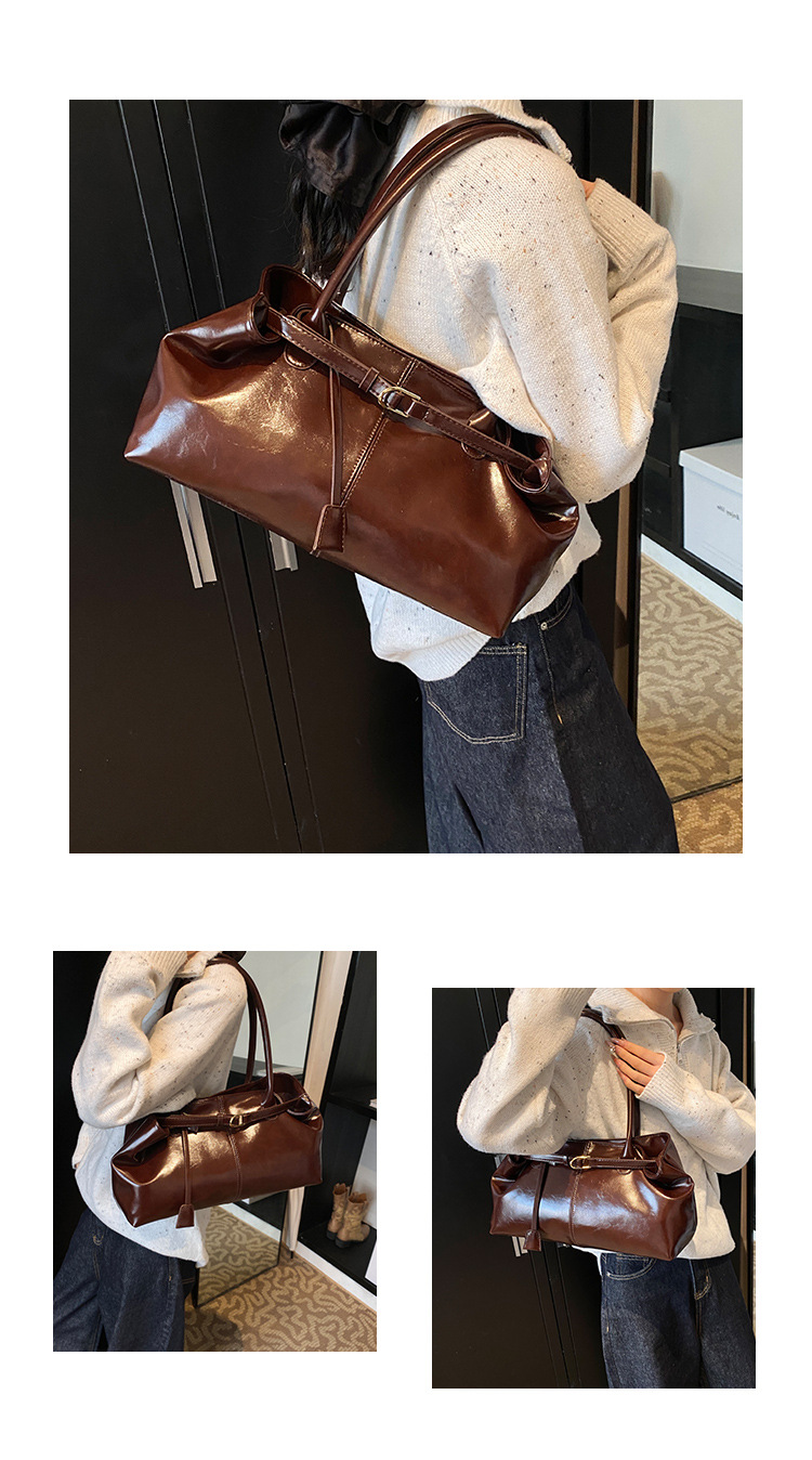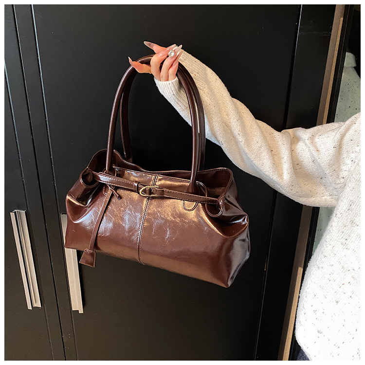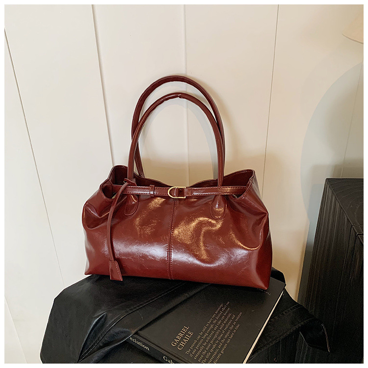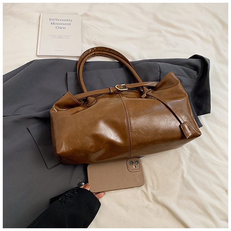 2024 새로운 보스턴 바게트 백 레트로 오토바이 스타일 헤드 레이어 오일 왁스 가죽 여성 가방 캐주얼 크로스 바디 숄더 백스토어 가기