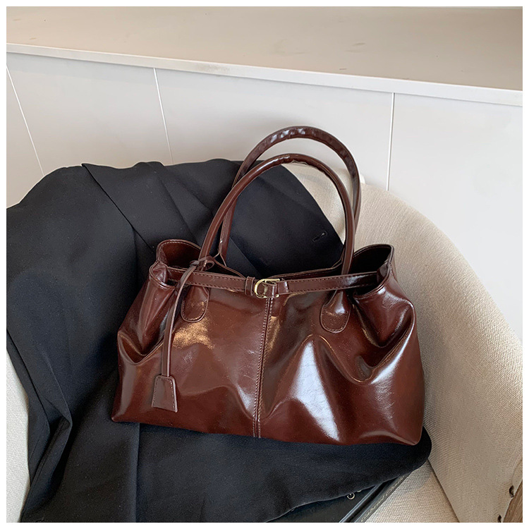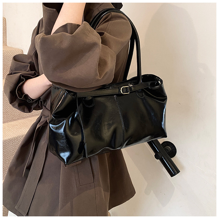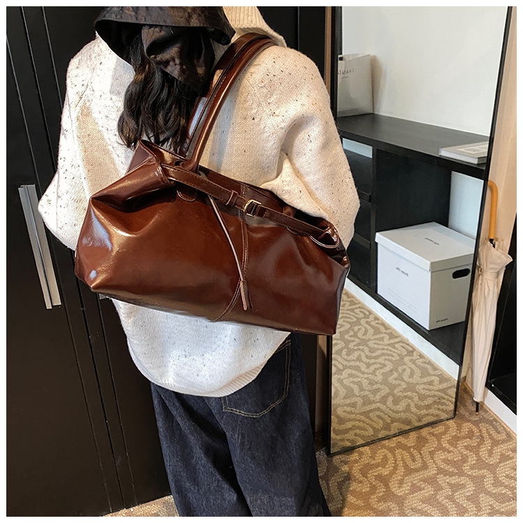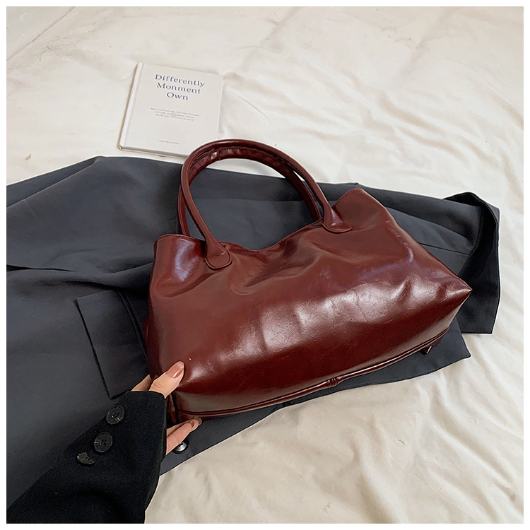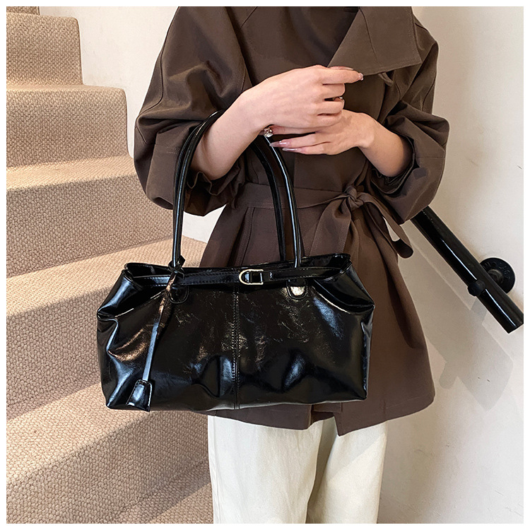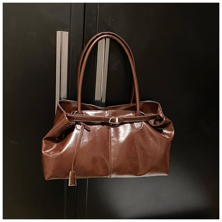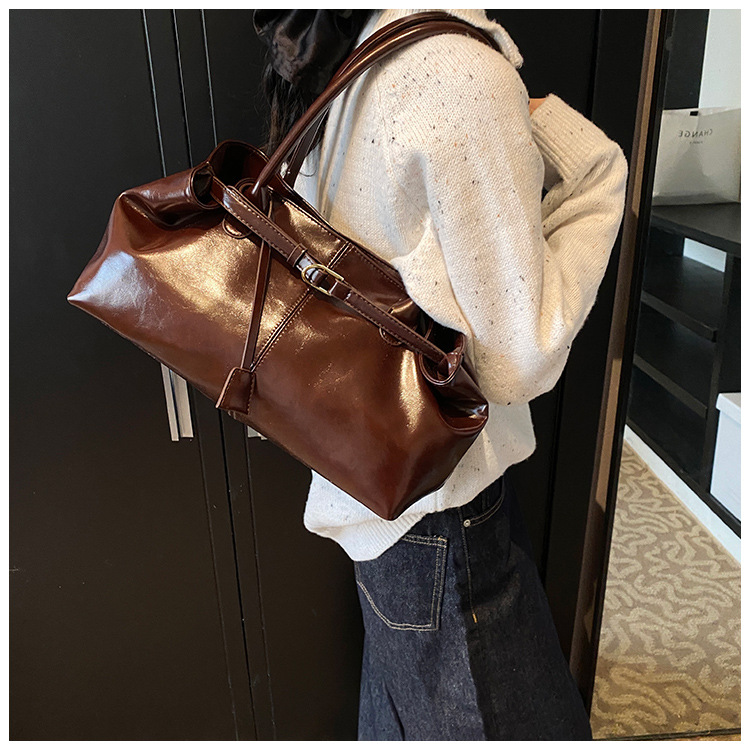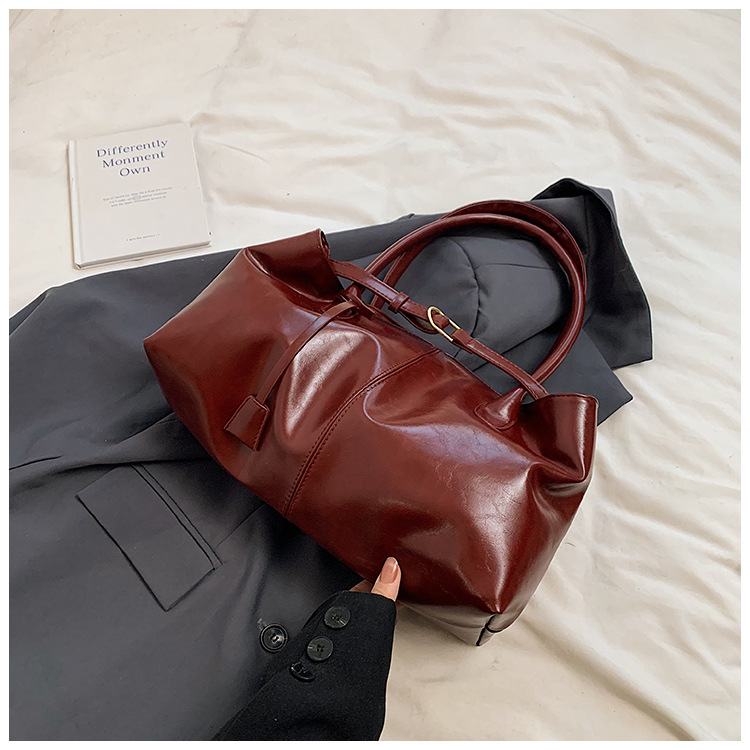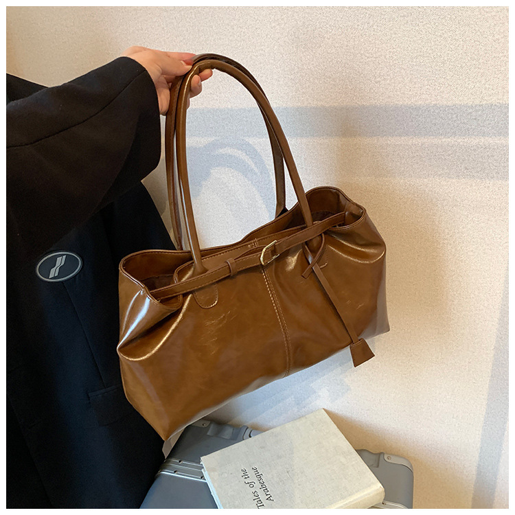 2024 새로운 보스턴 바게트 백 레트로 오토바이 스타일 헤드 레이어 오일 왁스 가죽 여성 가방 캐주얼 크로스 바디 숄더 백스토어 가기