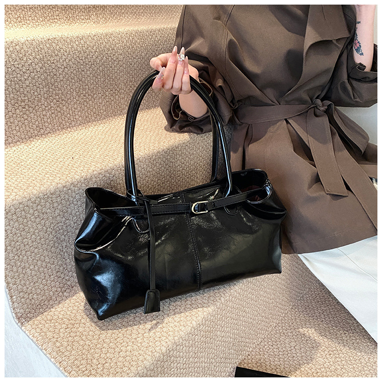2024 새로운 보스턴 바게트 백 레트로 오토바이 스타일 헤드 레이어 오일 왁스 가죽 여성 가방 캐주얼 크로스 바디 숄더 백