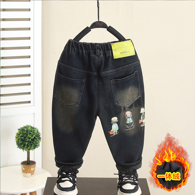 6878 어린이 벨벳 청바지 2025 새로운 스타일 소년의 두꺼운 가을, 겨울 의류 어린이 바지 아기 청바지스토어 가기