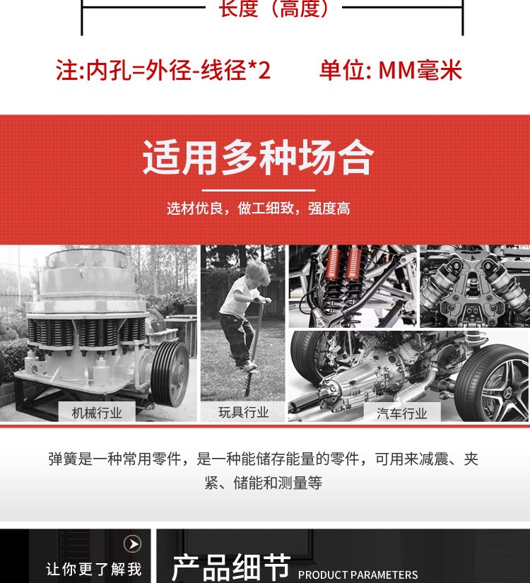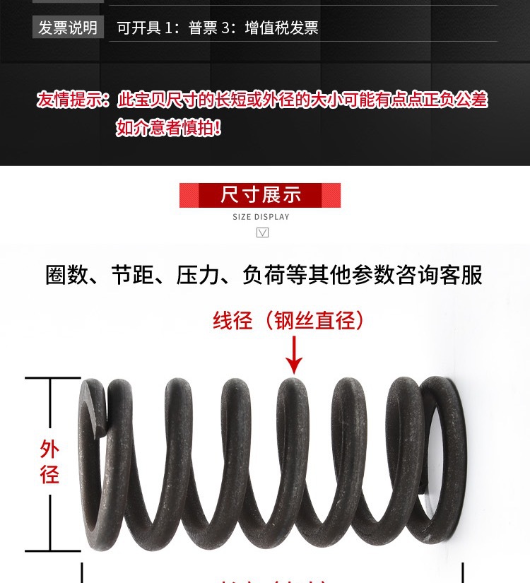 라인 10mm 블랙 대형 압축 스프링 충격 흡수 진동 스크린 단계 세탁기 진동 스프링 비 교정스토어 가기