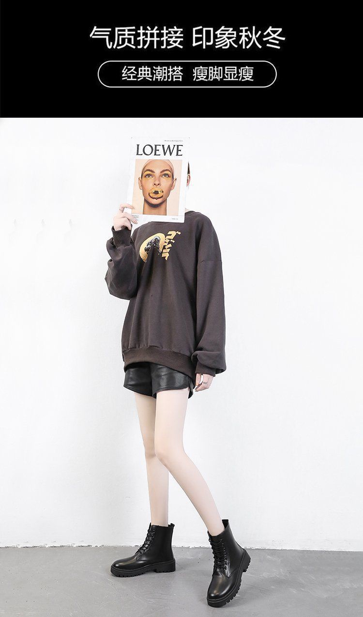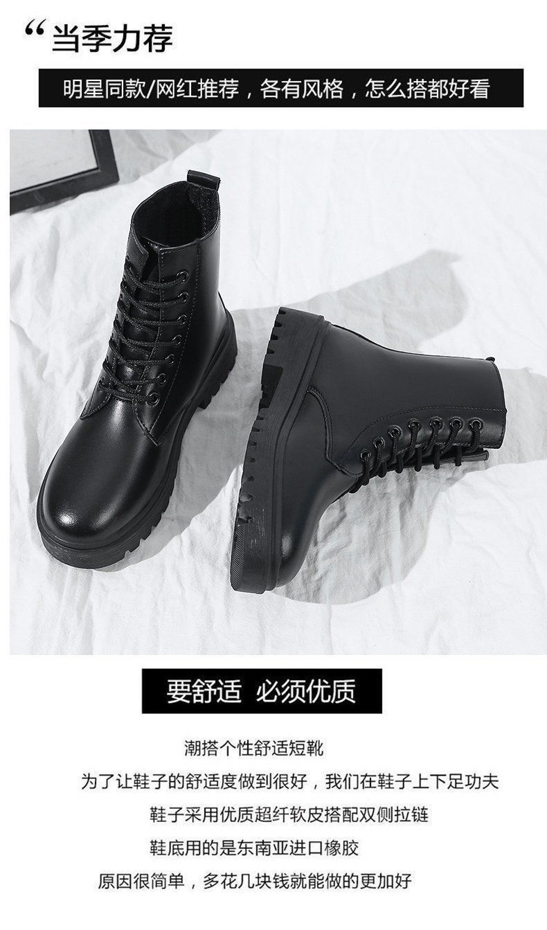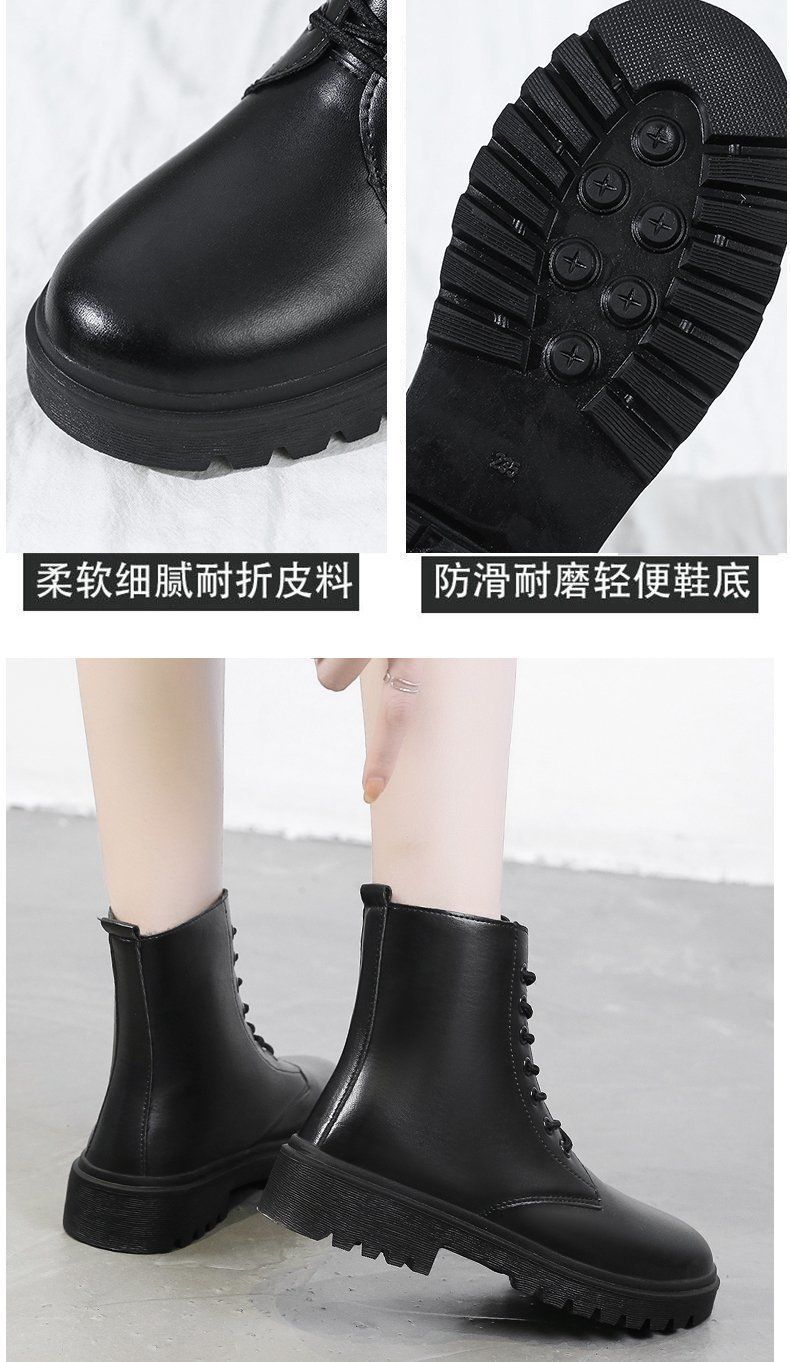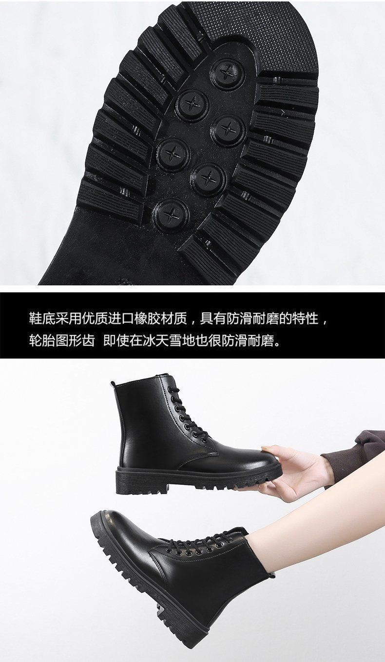 영국 스타일의 두꺼운 단색 기모 짧은 부츠 검은 발 마틴 부츠 여성 겨울 2024 봄과 가을 싱글 부츠스토어 가기