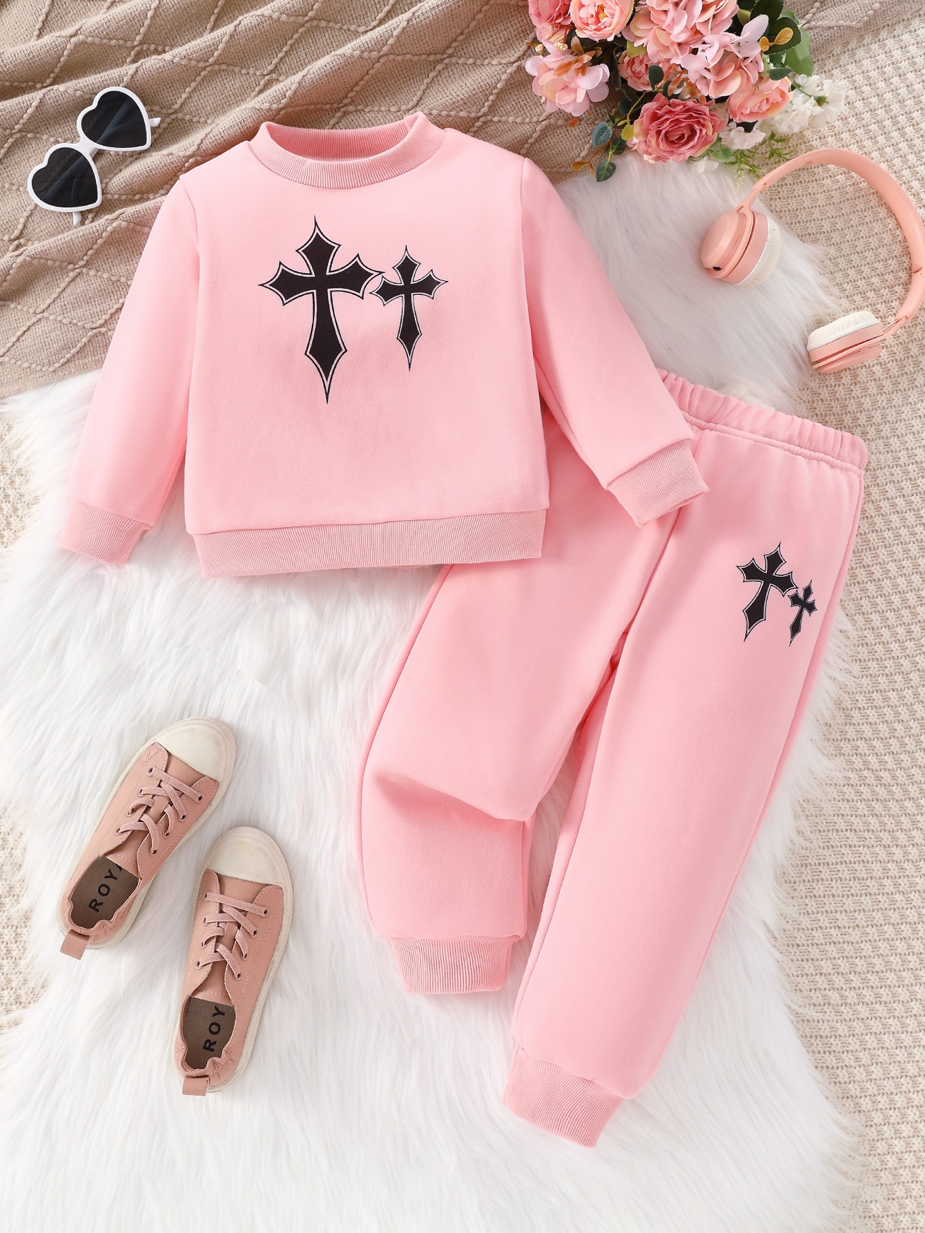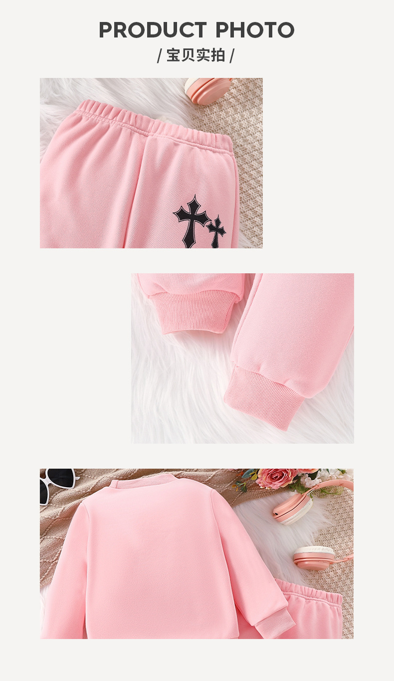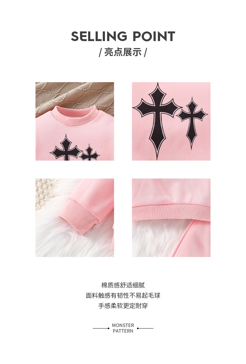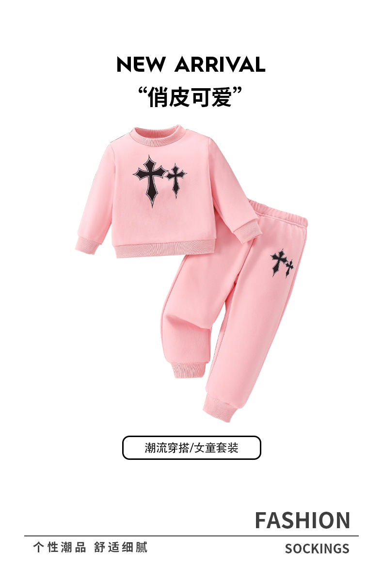 국경 간 여자 긴팔 세트 핑크 크루 넥 다리 스포츠 바지 댄스 가을/겨울 어린이 스웨터 투피스 세트스토어 가기