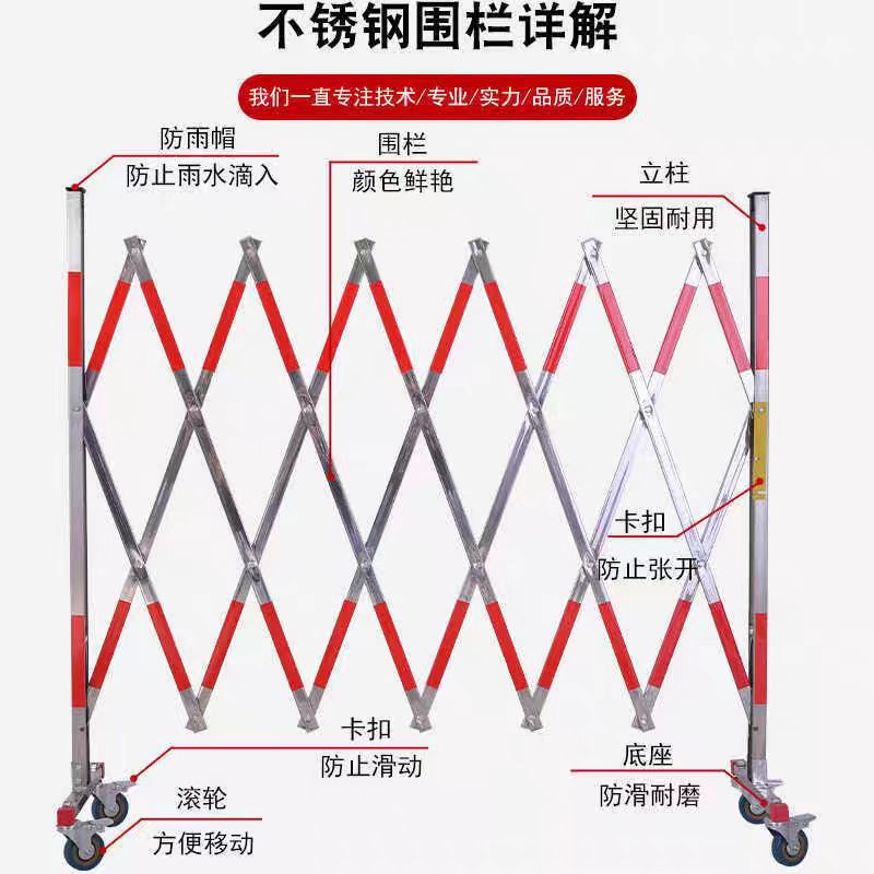 두꺼운 스테인레스 스틸 망원경 울타리 브레이크 이동식 학교 안전 경고 접이식 가드 레일 1.2스토어 가기