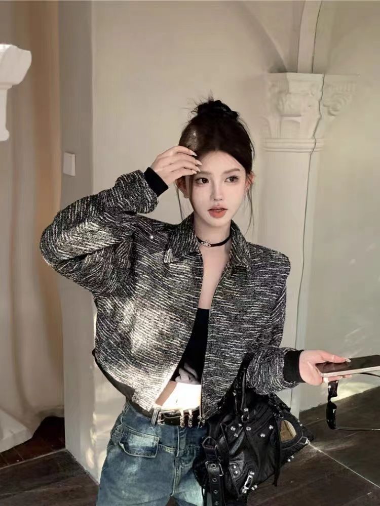 2024 새로운 스타일 샤넬 긴 소매 라코트 틈새 디자인 캐주얼 재킷 카디건 탑 트렌디 여성