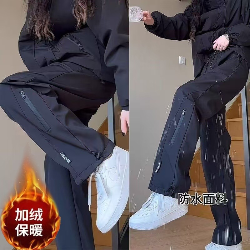 방수 충전 크록 바지 여자의 가을 및 겨울 방풍 캐주얼 스포츠 바지 기모 두꺼운 방한 직선 등산 바지스토어 가기