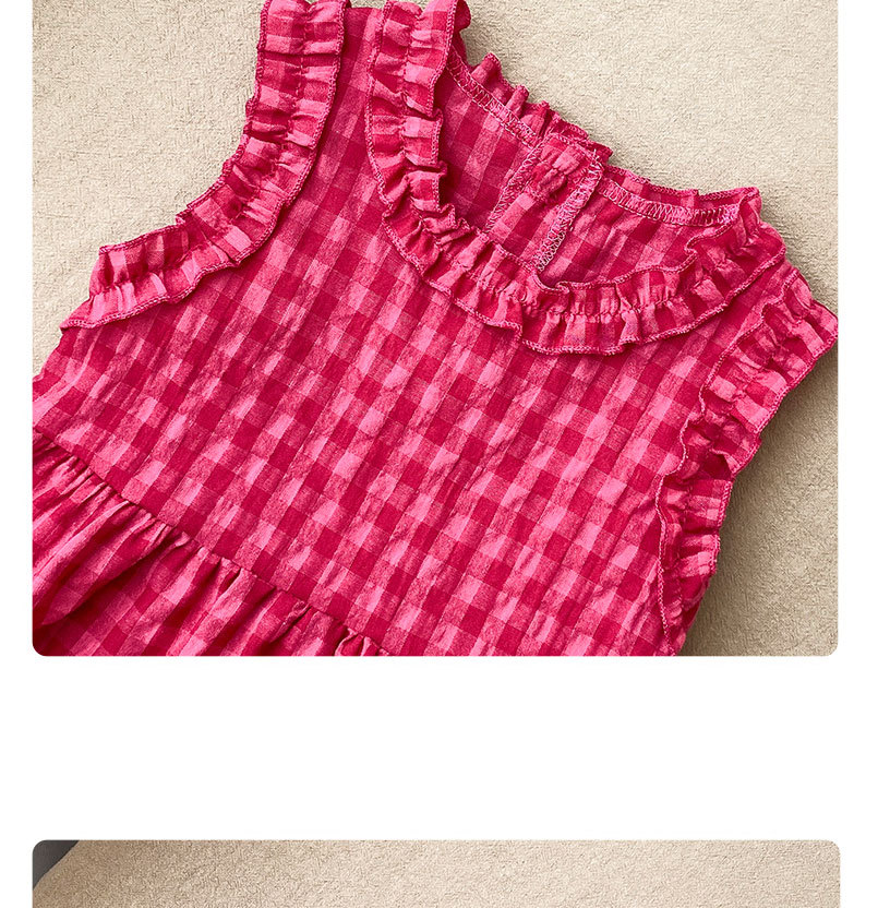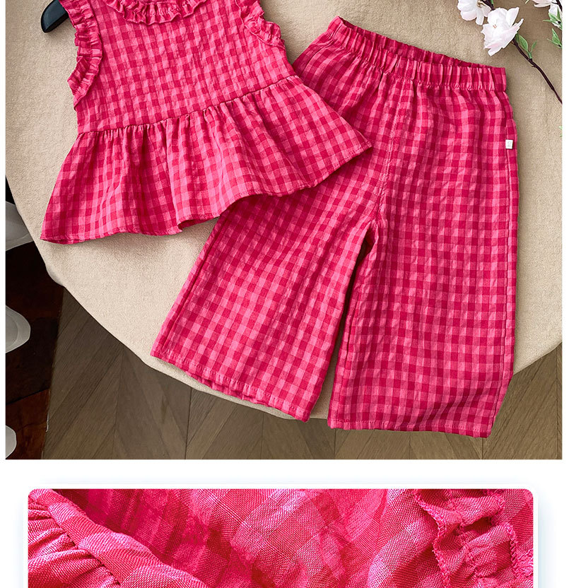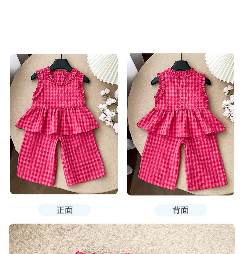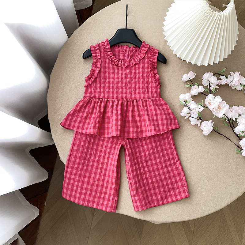 여름 한국 스타일 소녀 인터넷 축하 패션 서양 스타일 민소매 붉은 광장 격자 무늬 소녀 아웃웨어 캐주얼 유행 세트