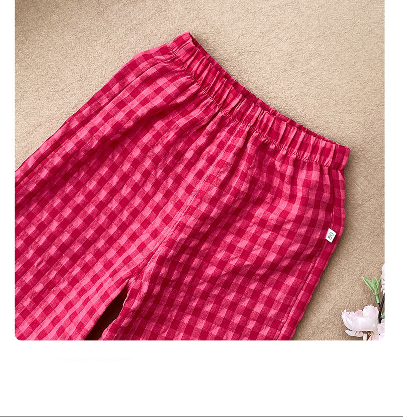 • 민소매 레드 체크 무늬 와이드 팬츠 슈트