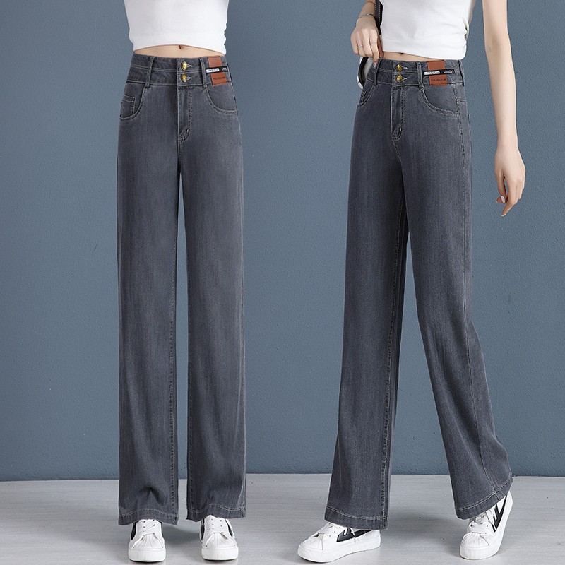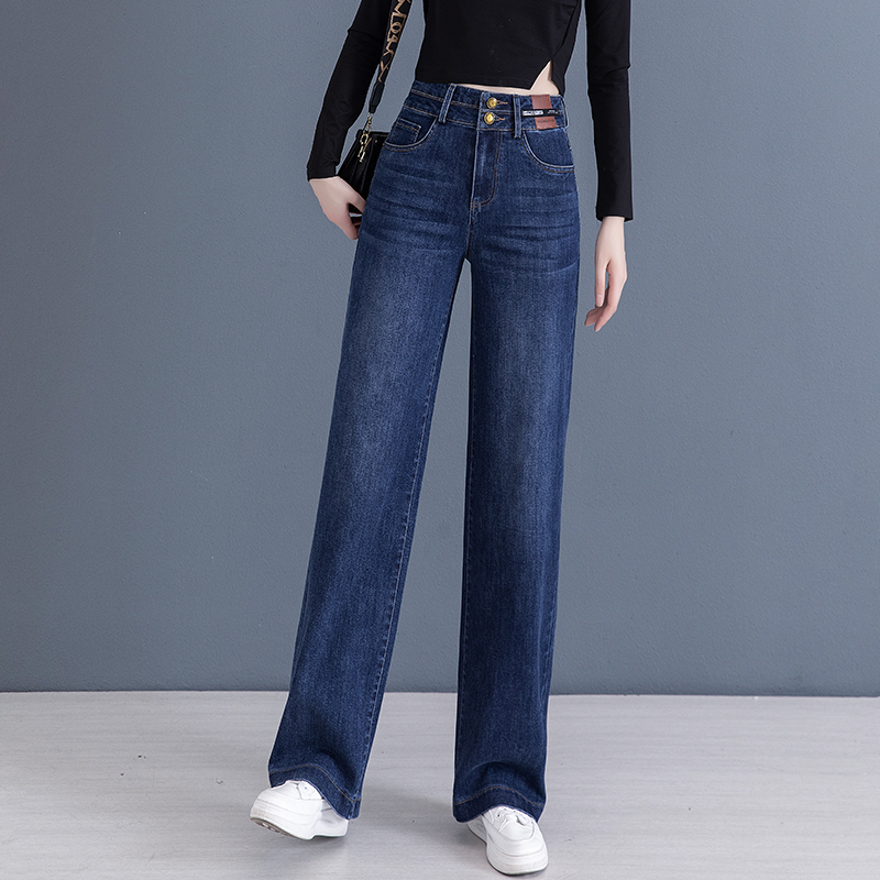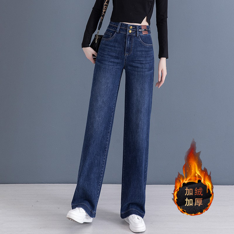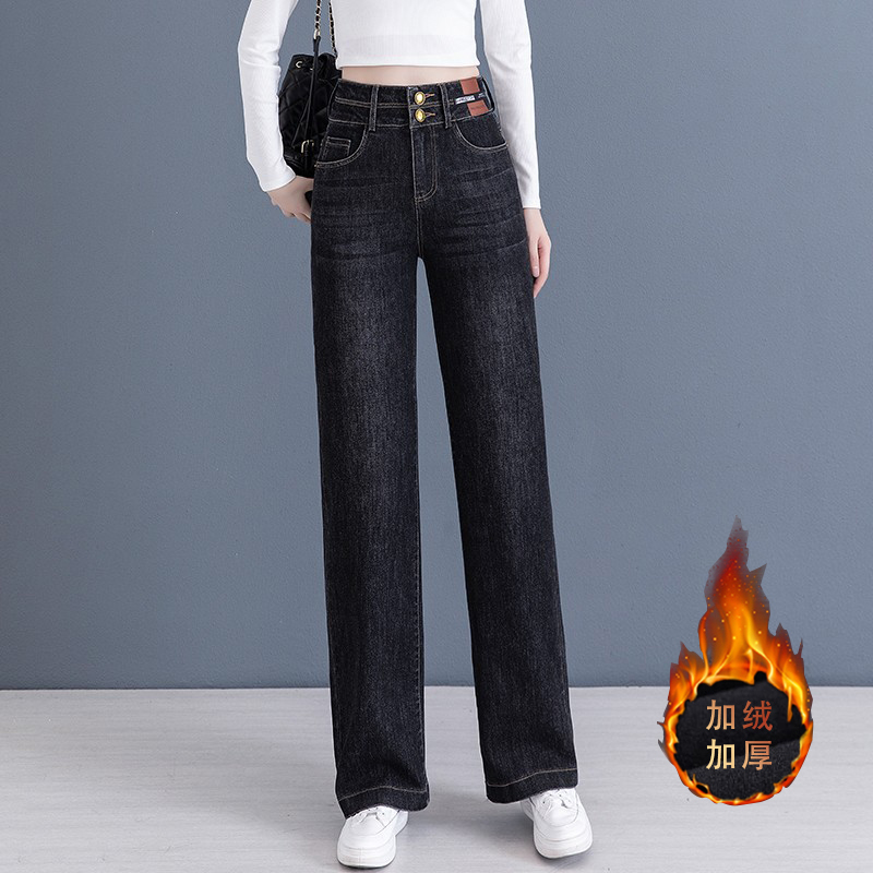 빈티지 넓은 다리 청바지 여성의 2024 봄 가을과 겨울 새로운 높은 허리 슬리밍 기모 틈새 느슨한 스트레이트 바지스토어 가기
