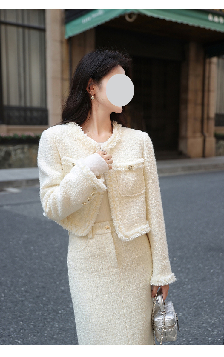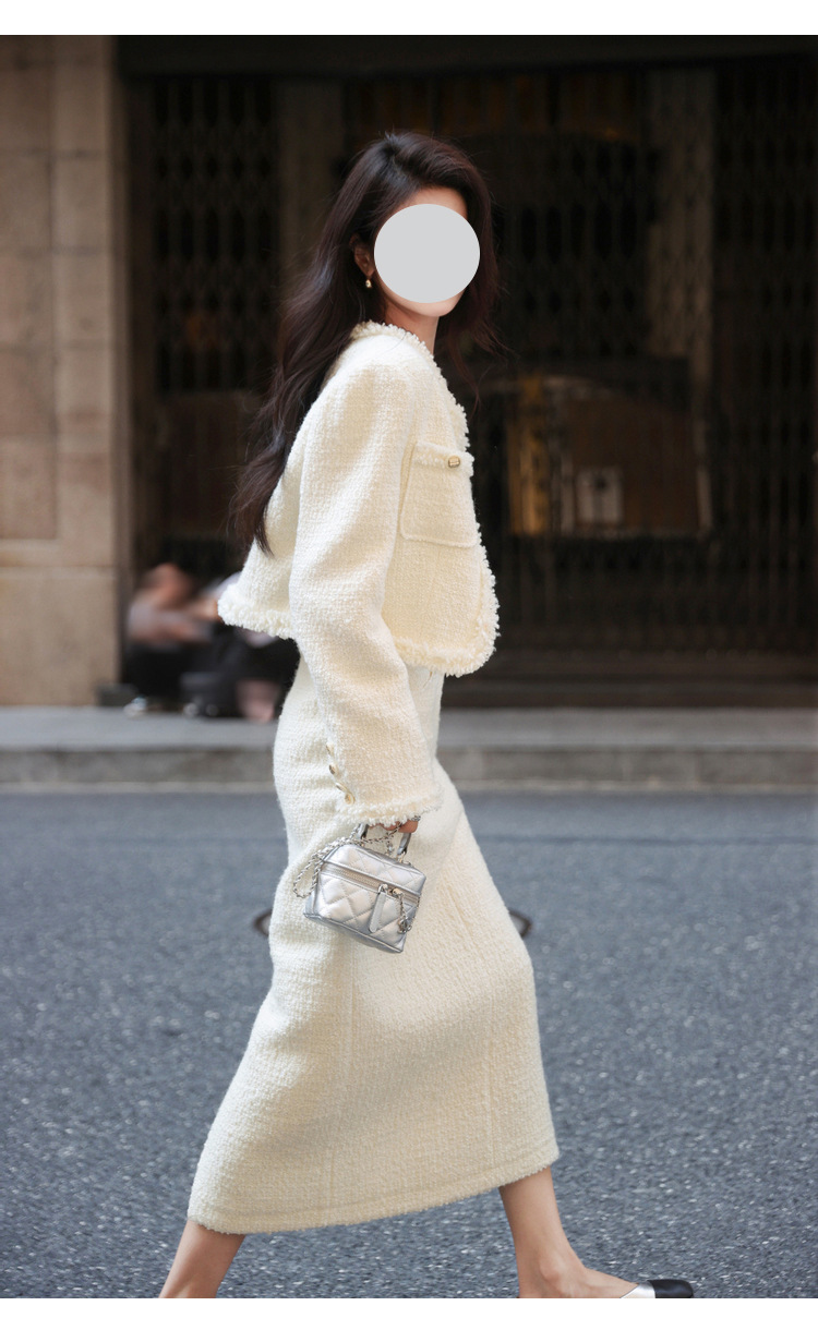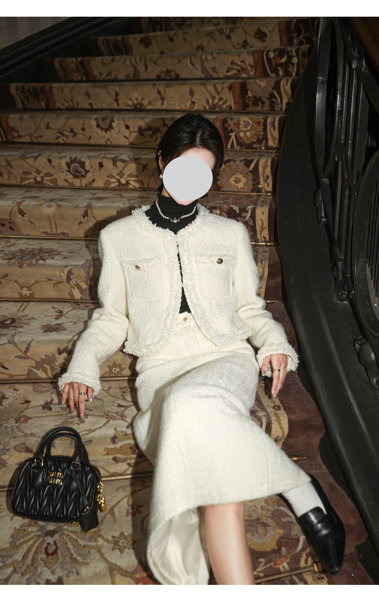 풍부한 딸 큰 아가씨 기질 흰색 작은 향기로운 스타일 세트 원피스 가을 원피스 디자인 느낌 코트 투피스 세트 여성스토어 가기