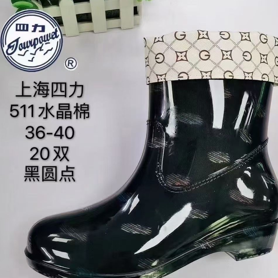 4 개의 전원 511 크리스탈 코튼 가죽 장화 여성용 하이 튜브 코튼 레인 부츠 고무 신발 유니버설 편안한 미끄럼 방지 방수 신발스토어 가기