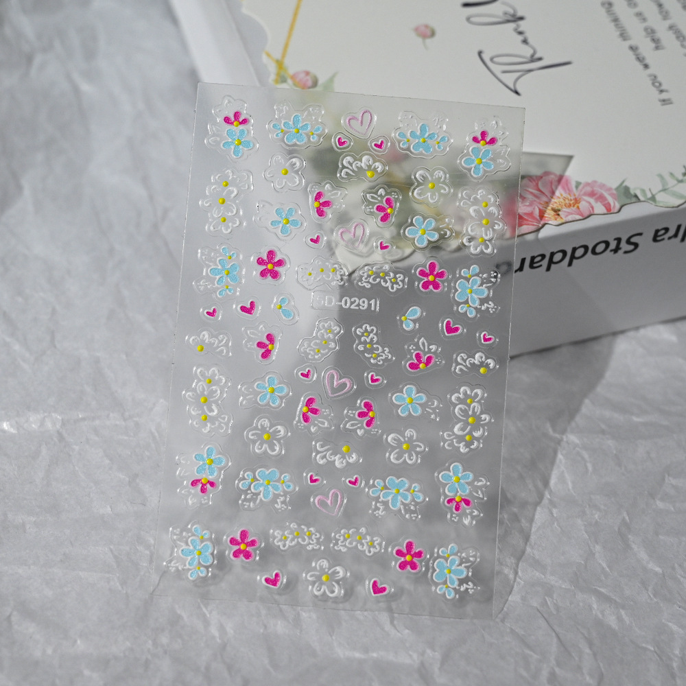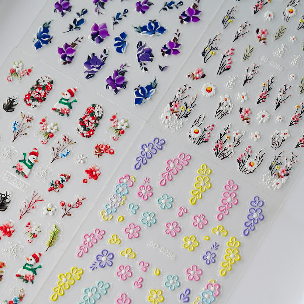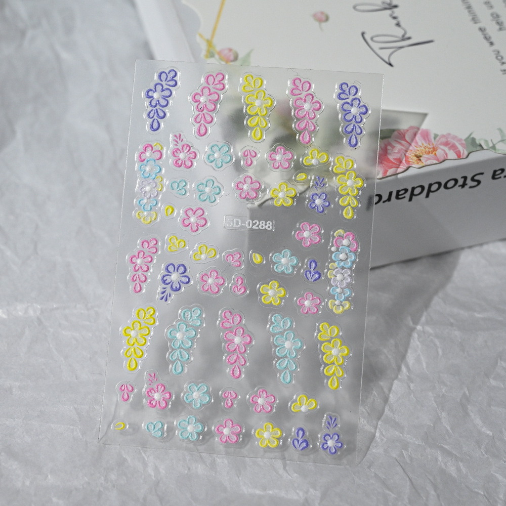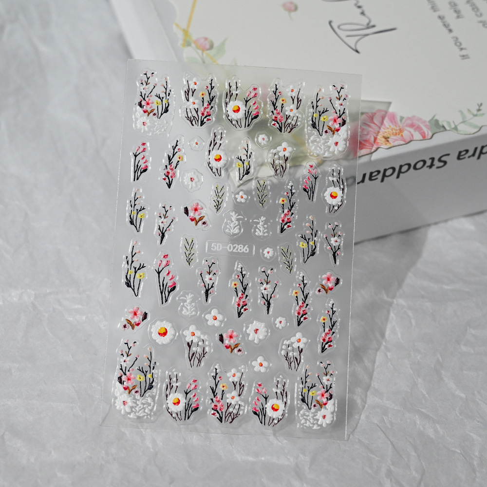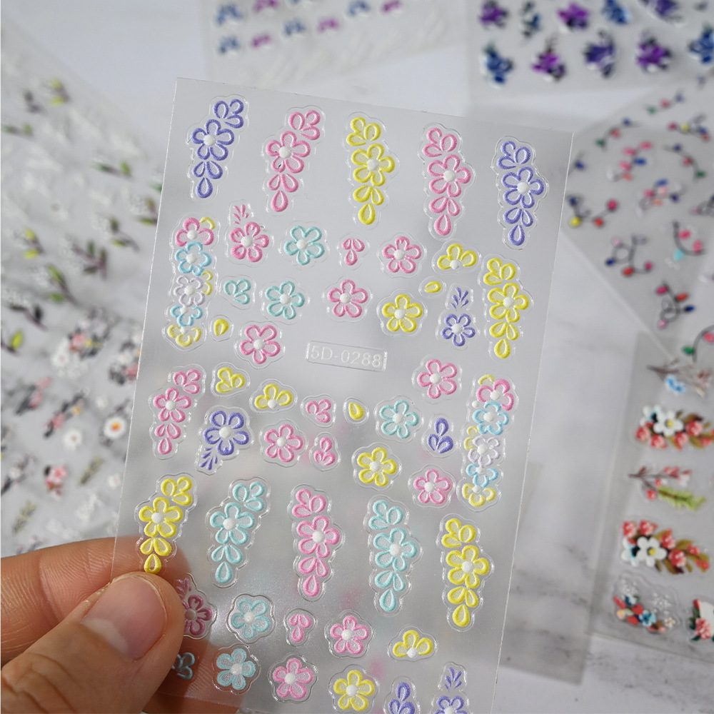 새로운 5D 구호 네일 아트 스티커 봄 작은 야생 꽃 3 차원 구호 네일 스티커 봄 네일 아트 스티커스토어 가기