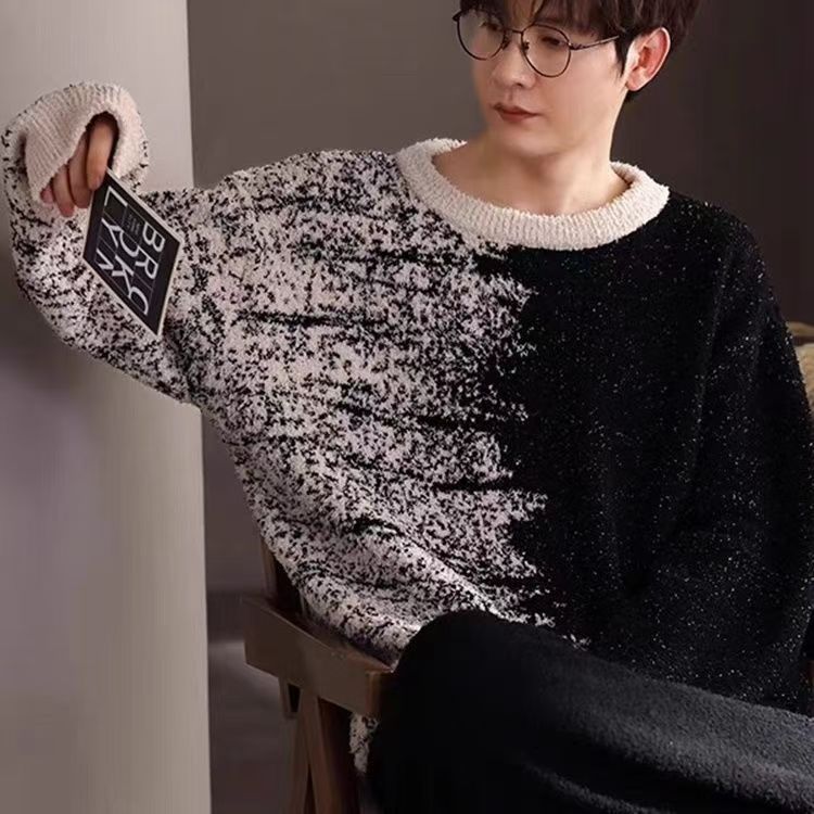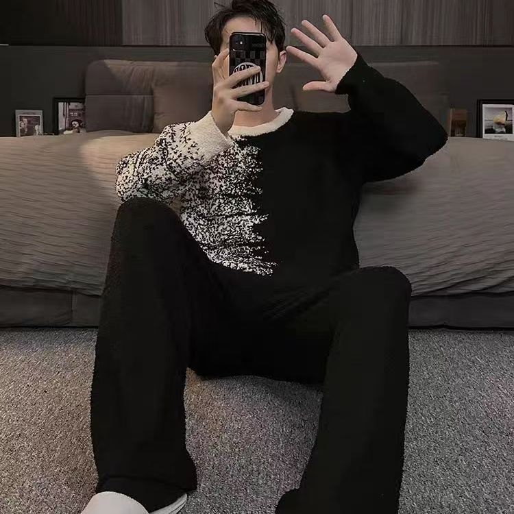 잉크젯 반쪽 벨벳 파자마 남자 가을 겨울 잠옷 두꺼운 따뜻한 부드러운 남성 청소년 홈 의류 세트 트렌디스토어 가기