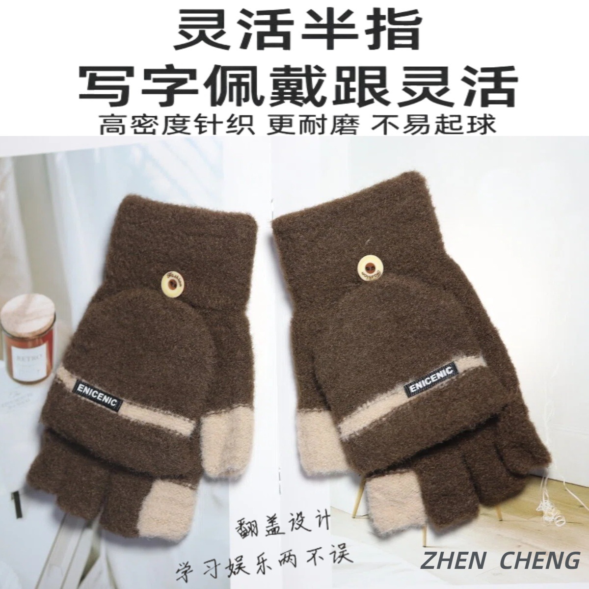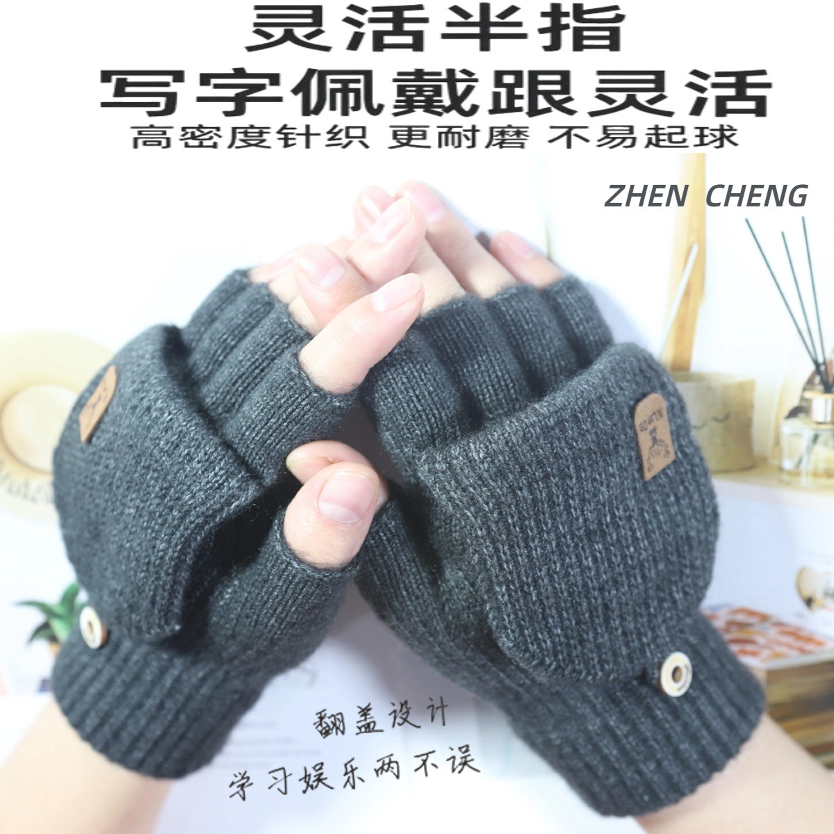 겨울 따뜻한 남자 장갑 두꺼운 플립 커버 이중 목적 양모 장갑 니트 중학생 승마 장갑스토어 가기