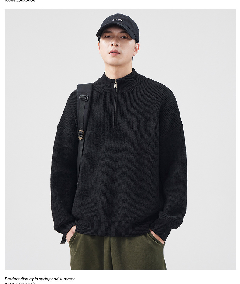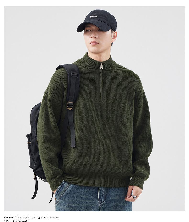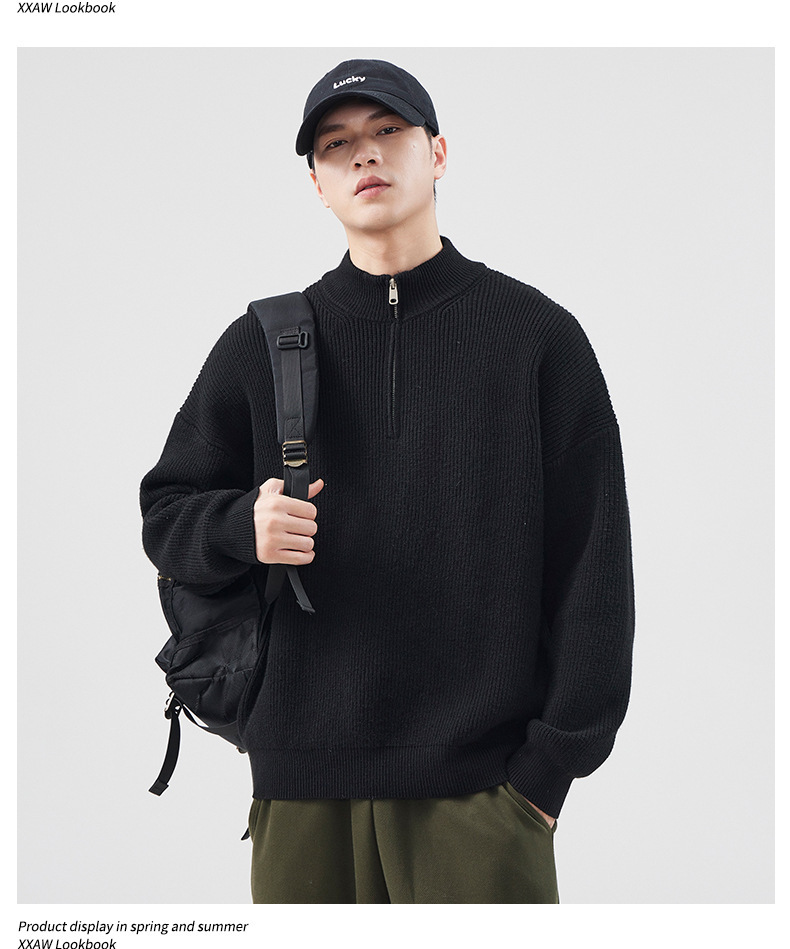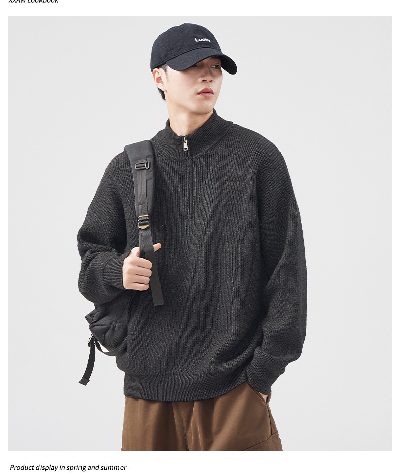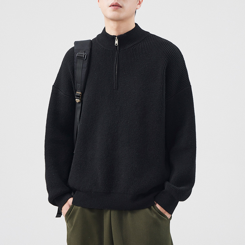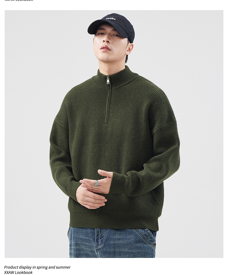 고급 반 지퍼 스웨터 남자의 가을과 겨울 느슨한 캐주얼 패셔너블 게으른 스타일 두꺼운 따뜻한 풀오버 스웨터