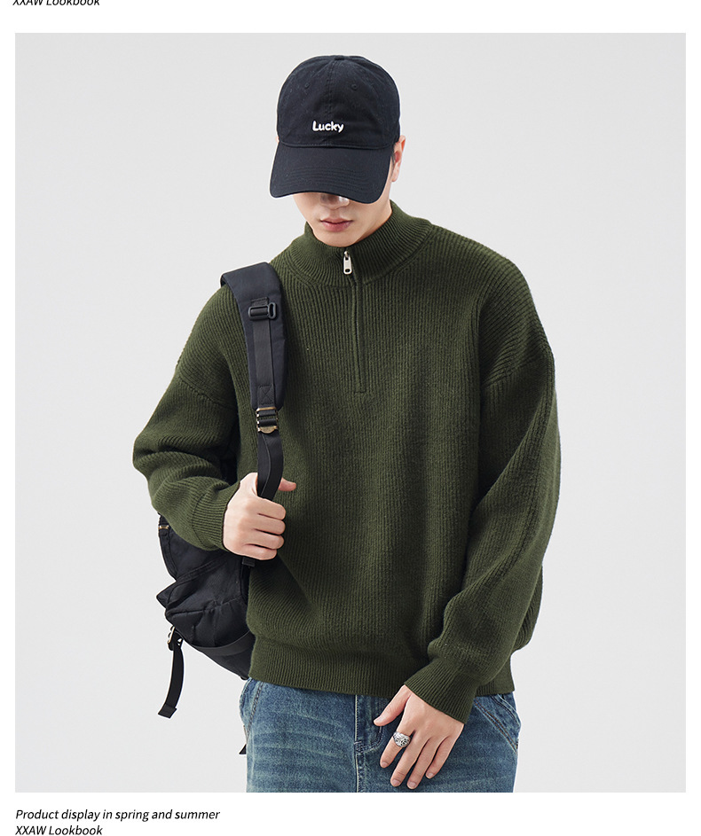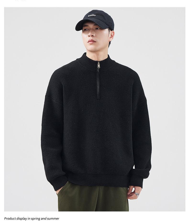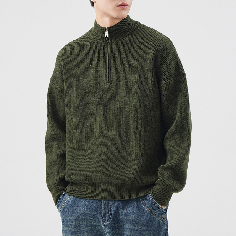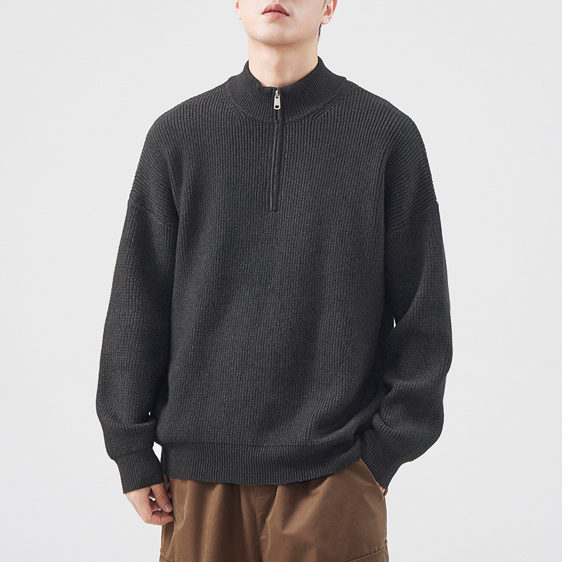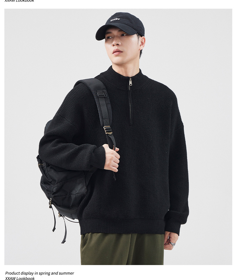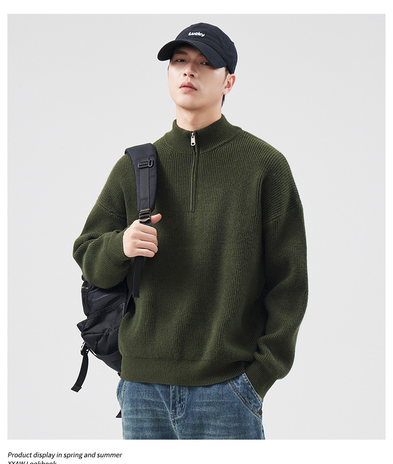 고급 반 지퍼 스웨터 남자의 가을과 겨울 느슨한 캐주얼 패셔너블 게으른 스타일 두꺼운 따뜻한 풀오버 스웨터