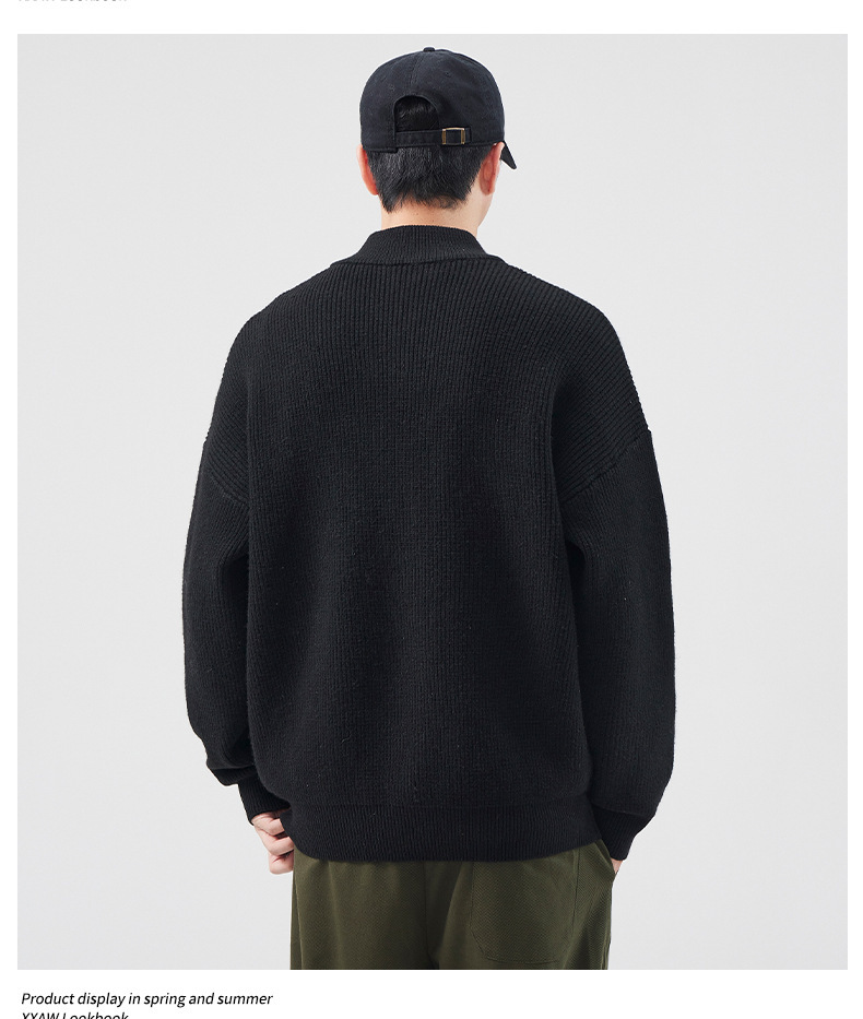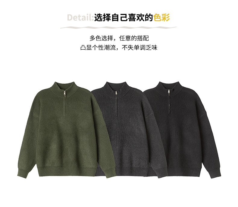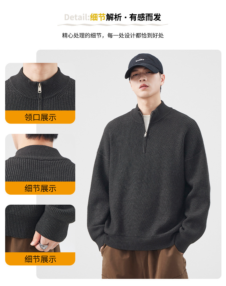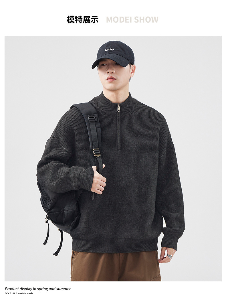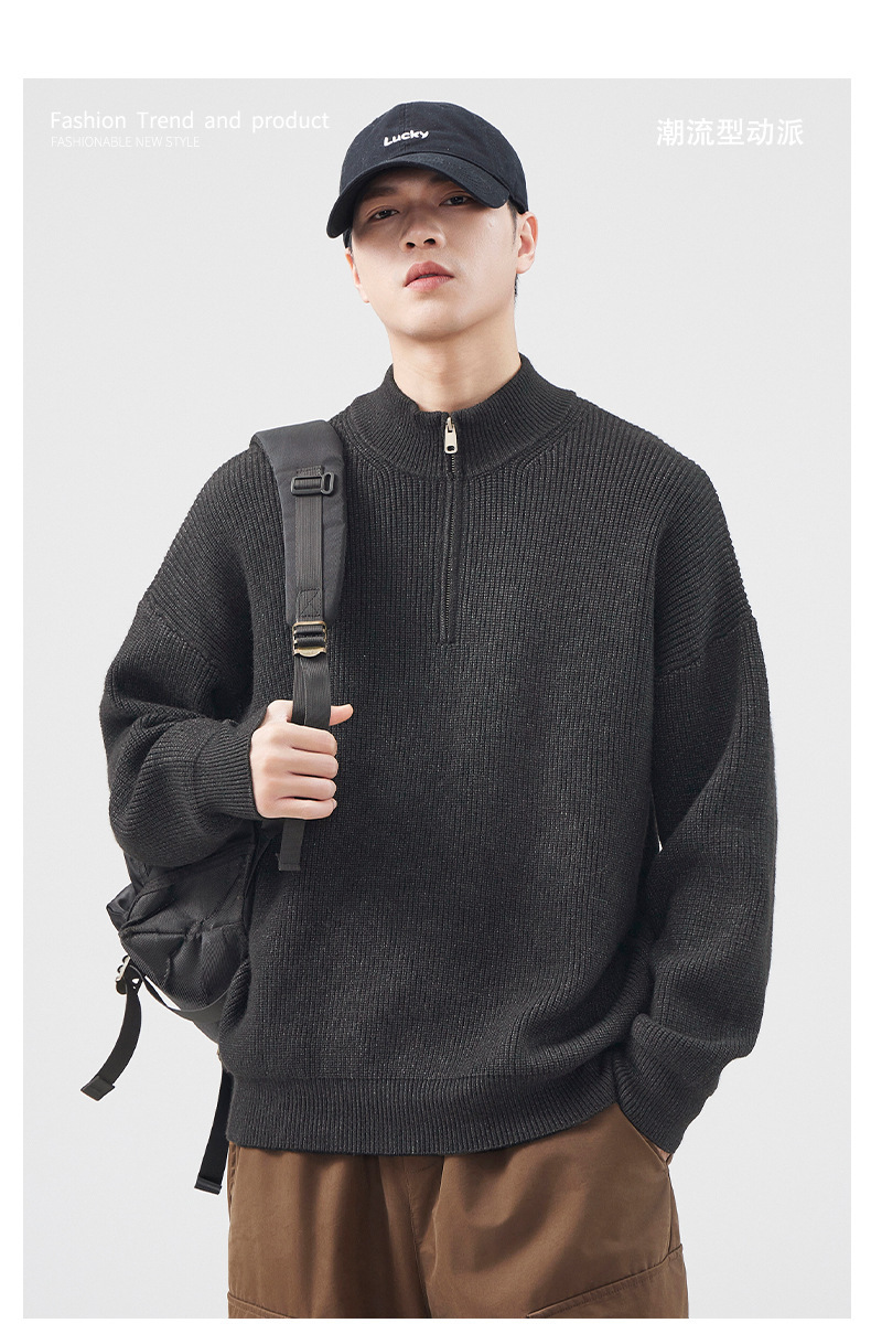 高级感半拉链毛衣男秋冬季宽松休闲潮流慵懒风加厚保暖套头针织衫