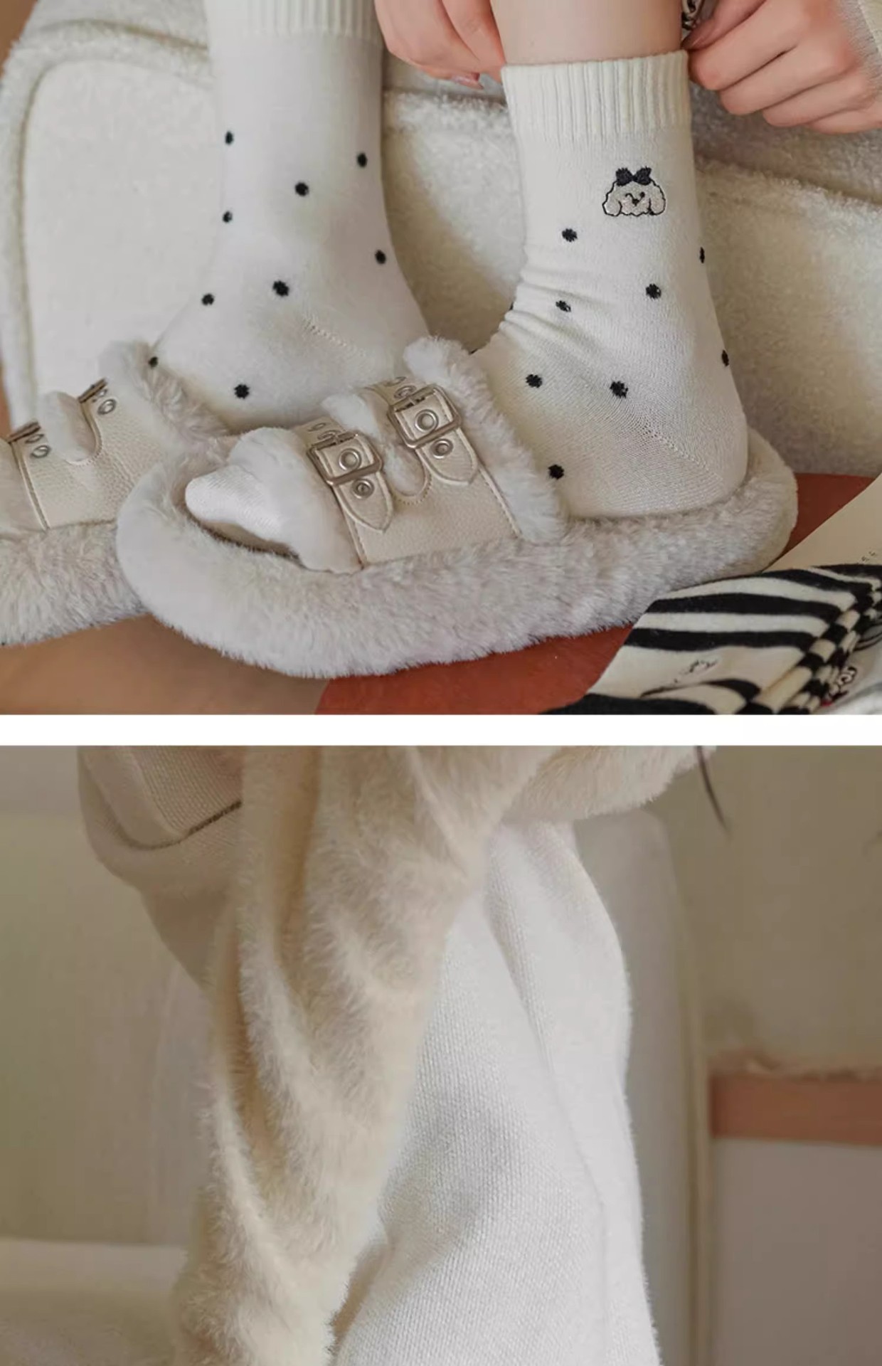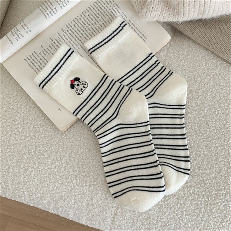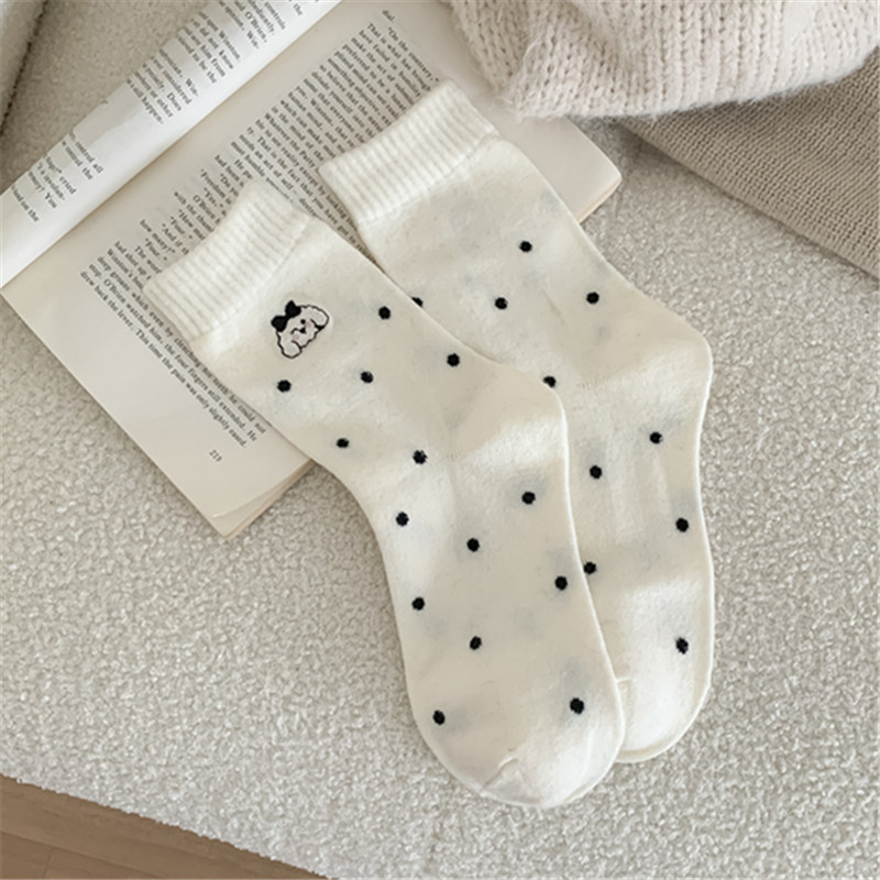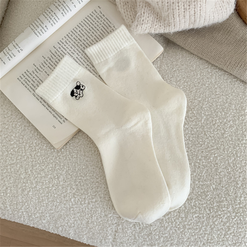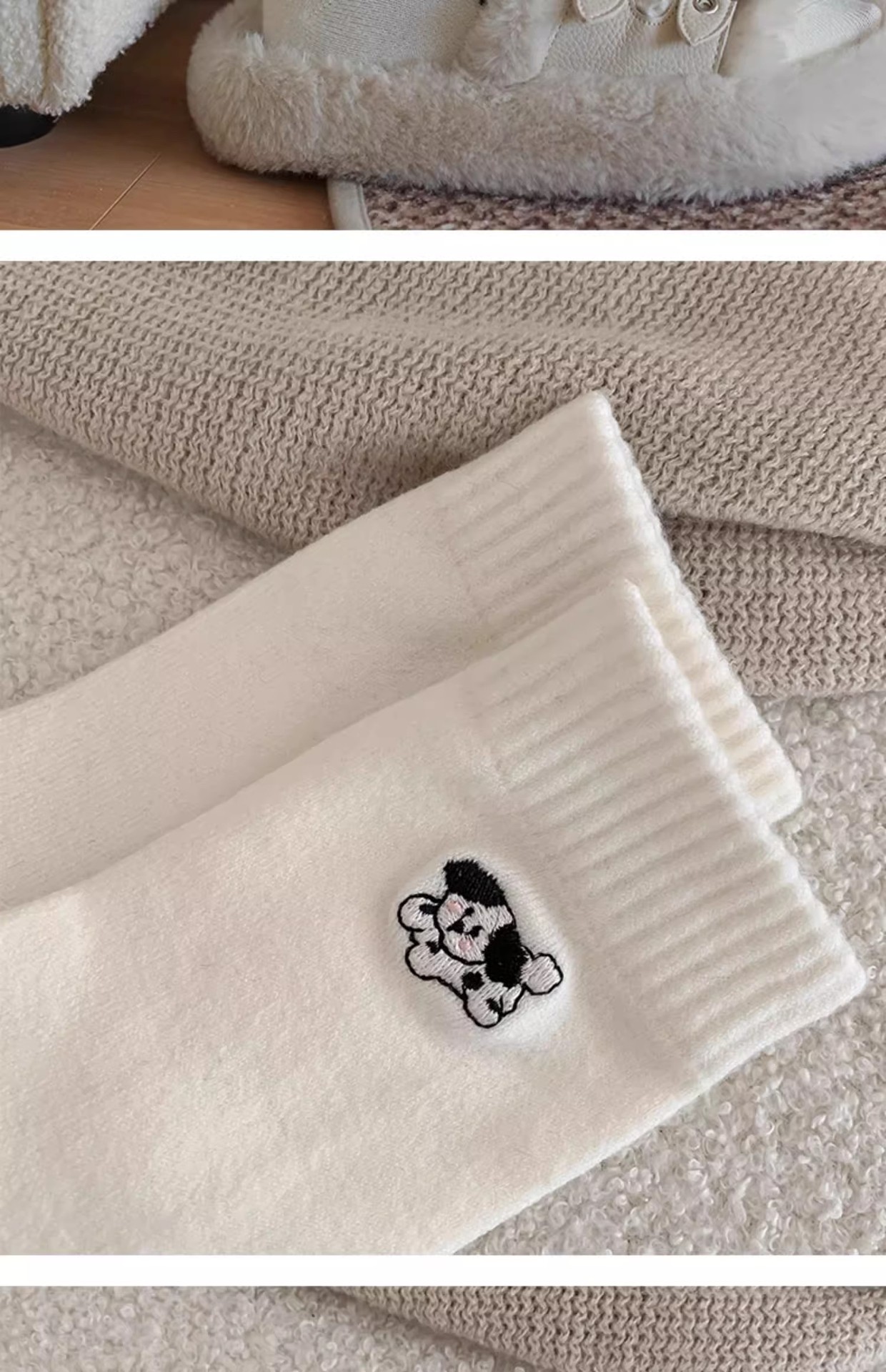 캐시미어 양말 여성의 겨울 여자 두꺼운 가을과 겨울 귀여운 흰색 재미있는 가을 긴 튜브 소녀 만화 강아지