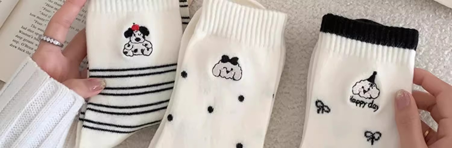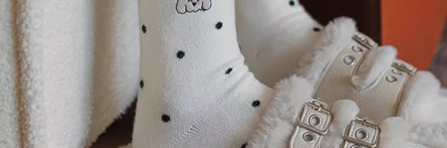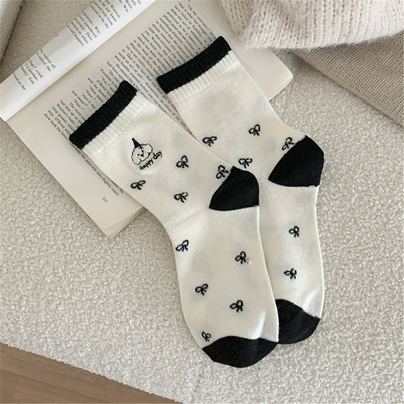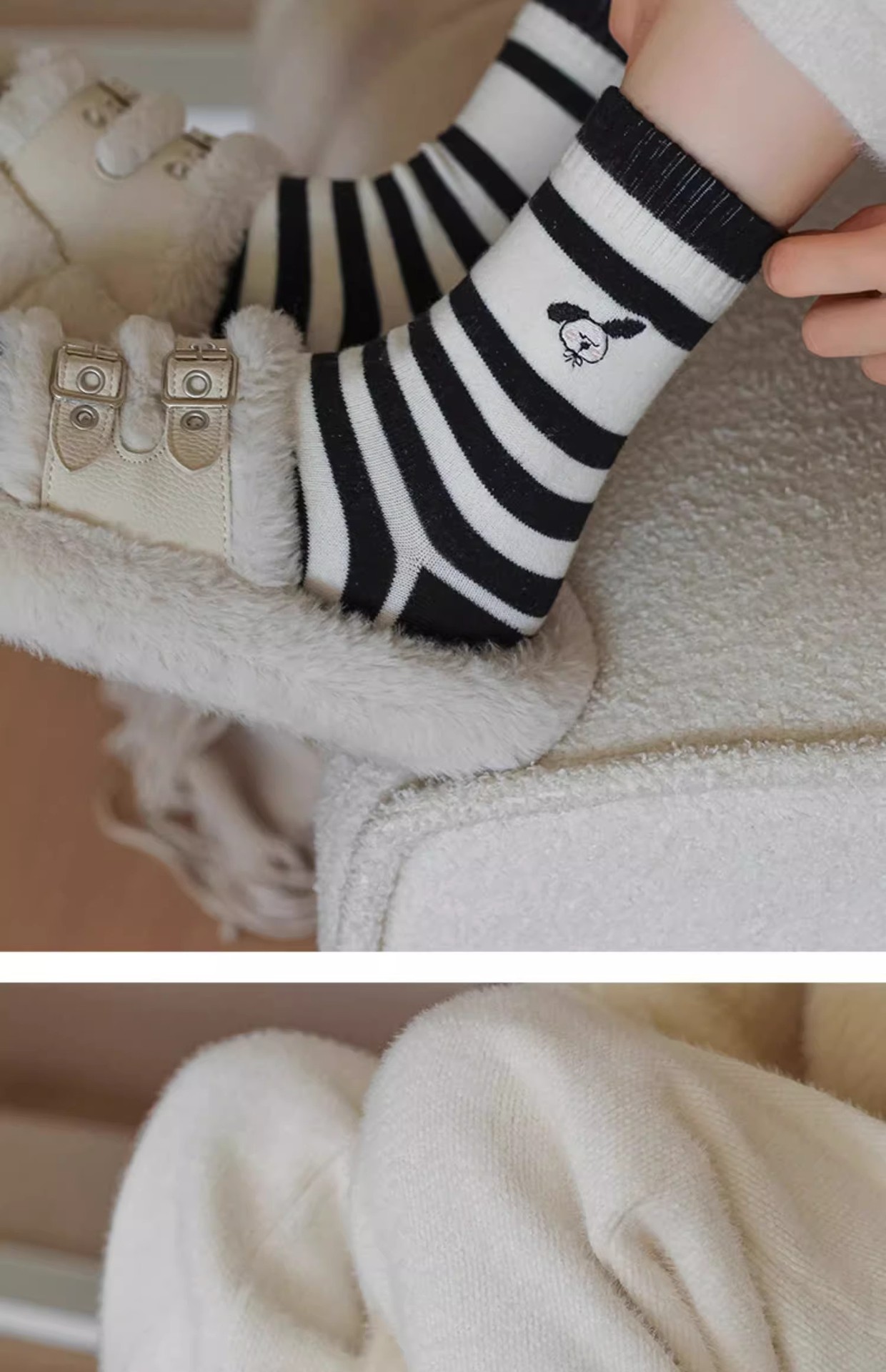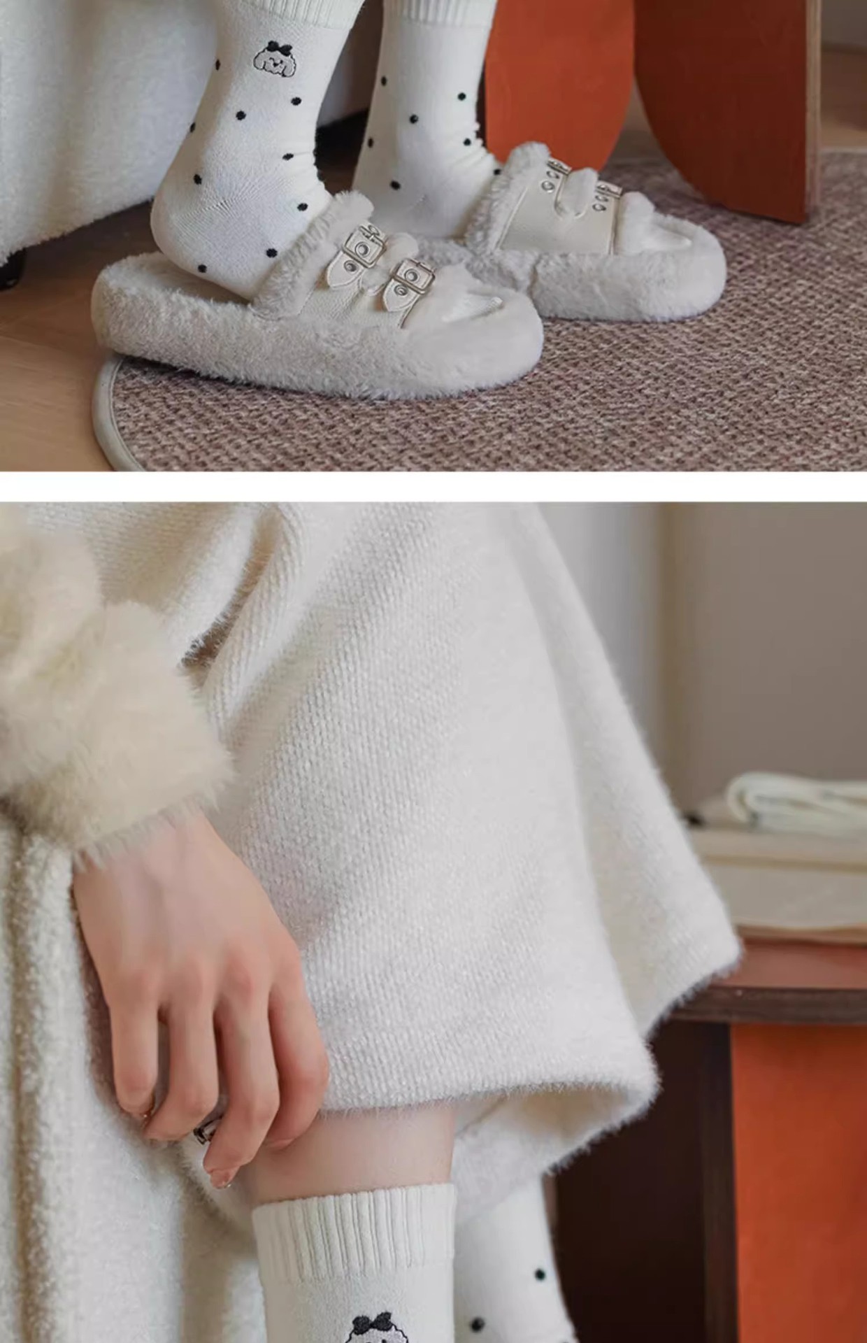 캐시미어 양말 여성의 겨울 여자 두꺼운 가을과 겨울 귀여운 흰색 재미있는 가을 긴 튜브 소녀 만화 강아지
