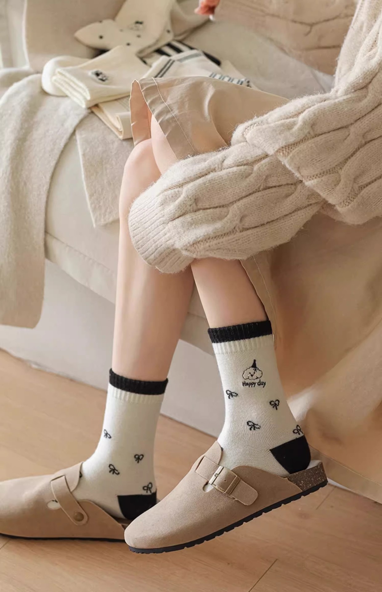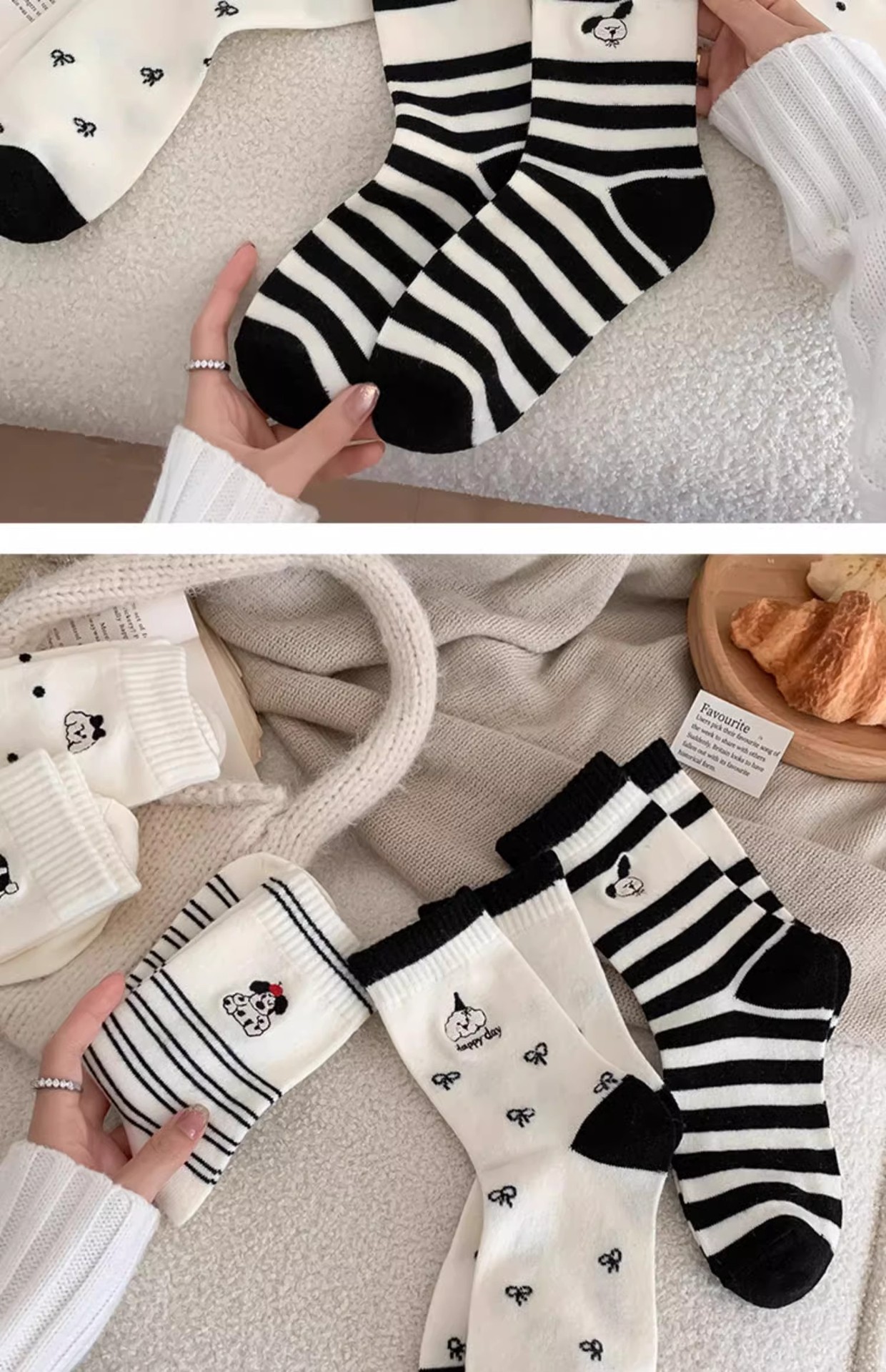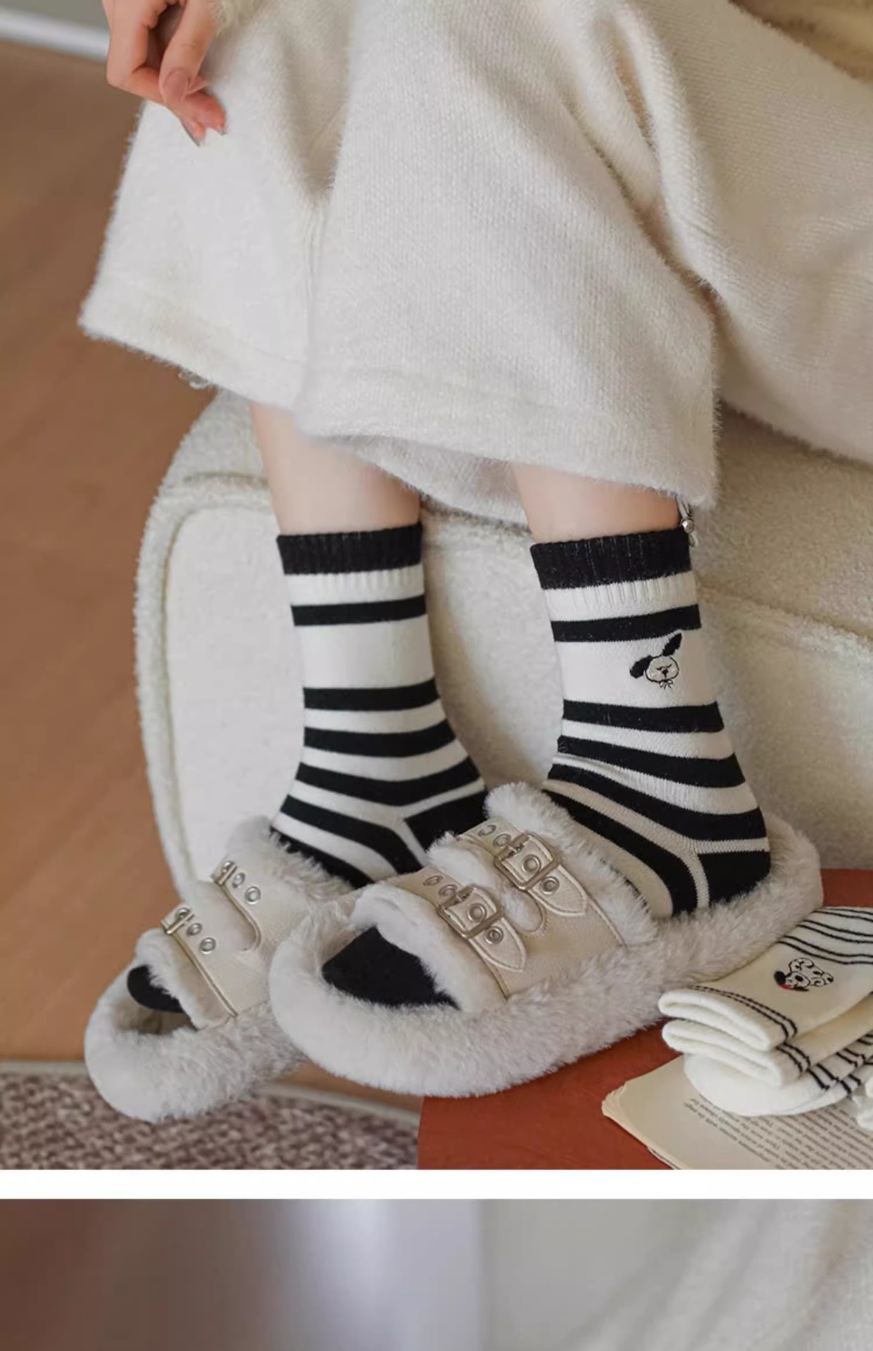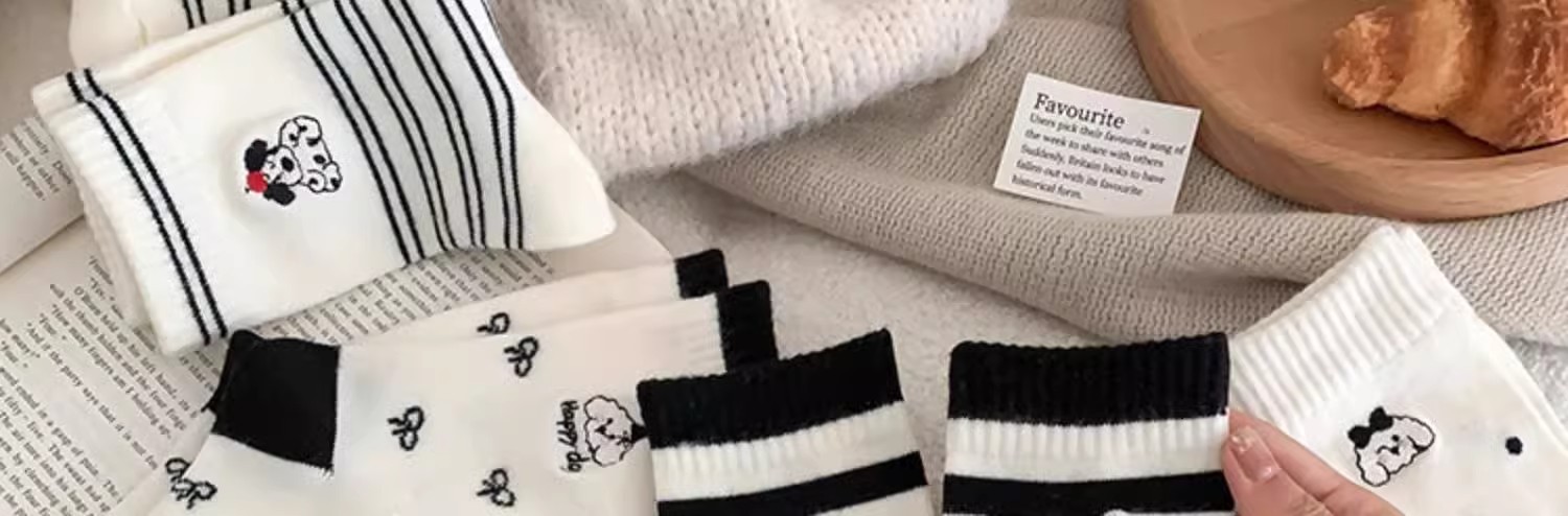 캐시미어 양말 여성의 겨울 여자 두꺼운 가을과 겨울 귀여운 흰색 재미있는 가을 긴 튜브 소녀 만화 강아지